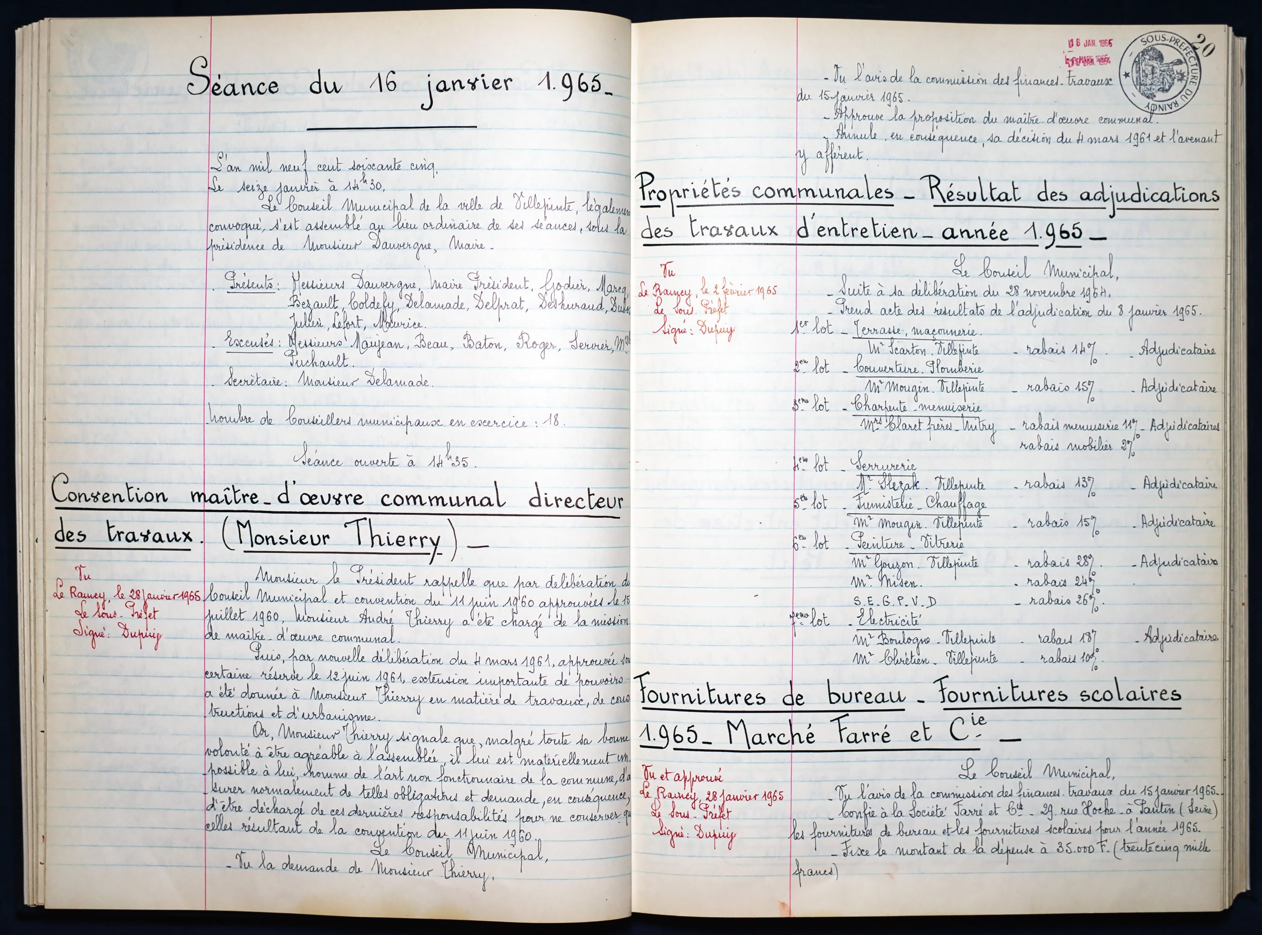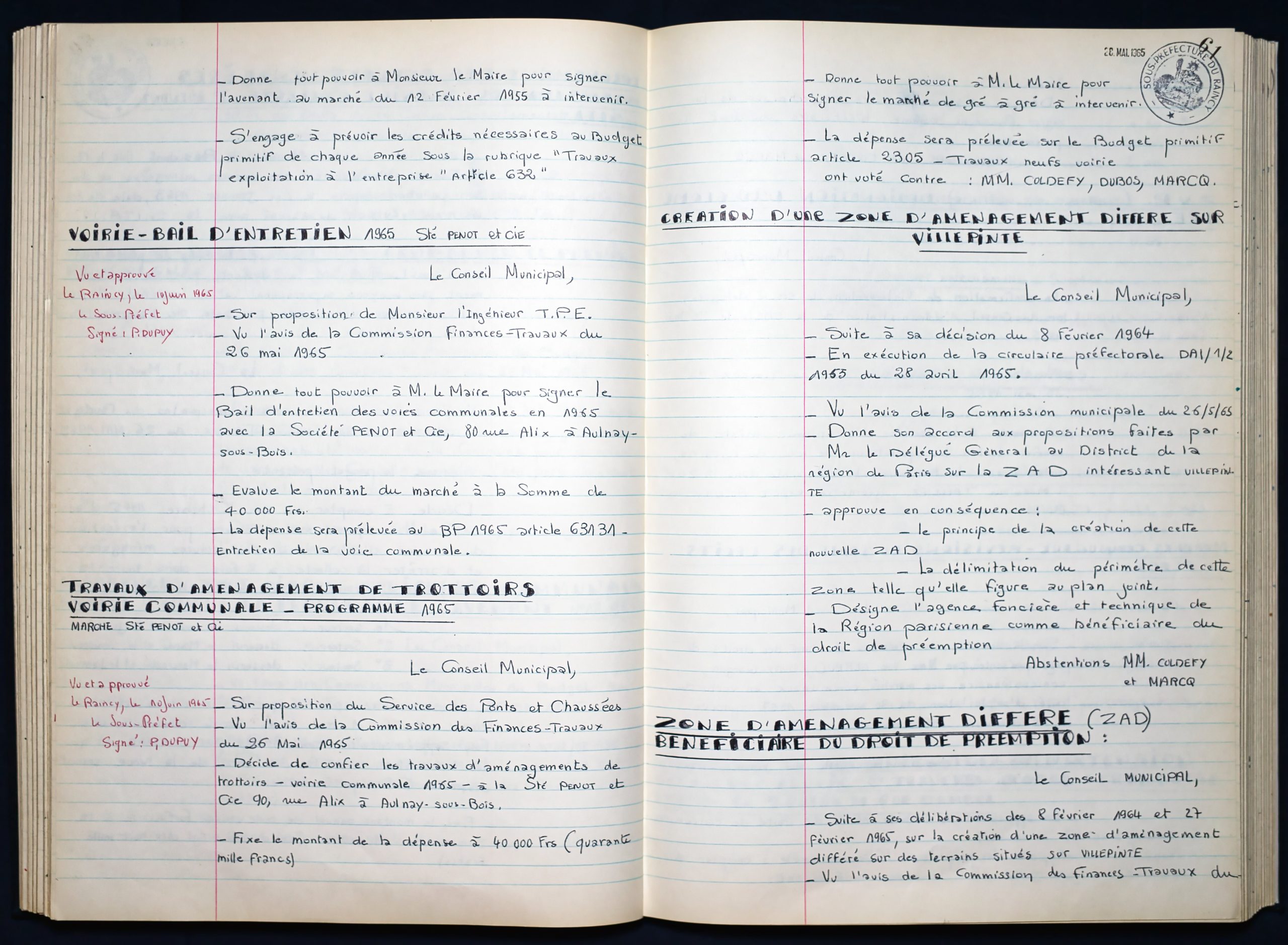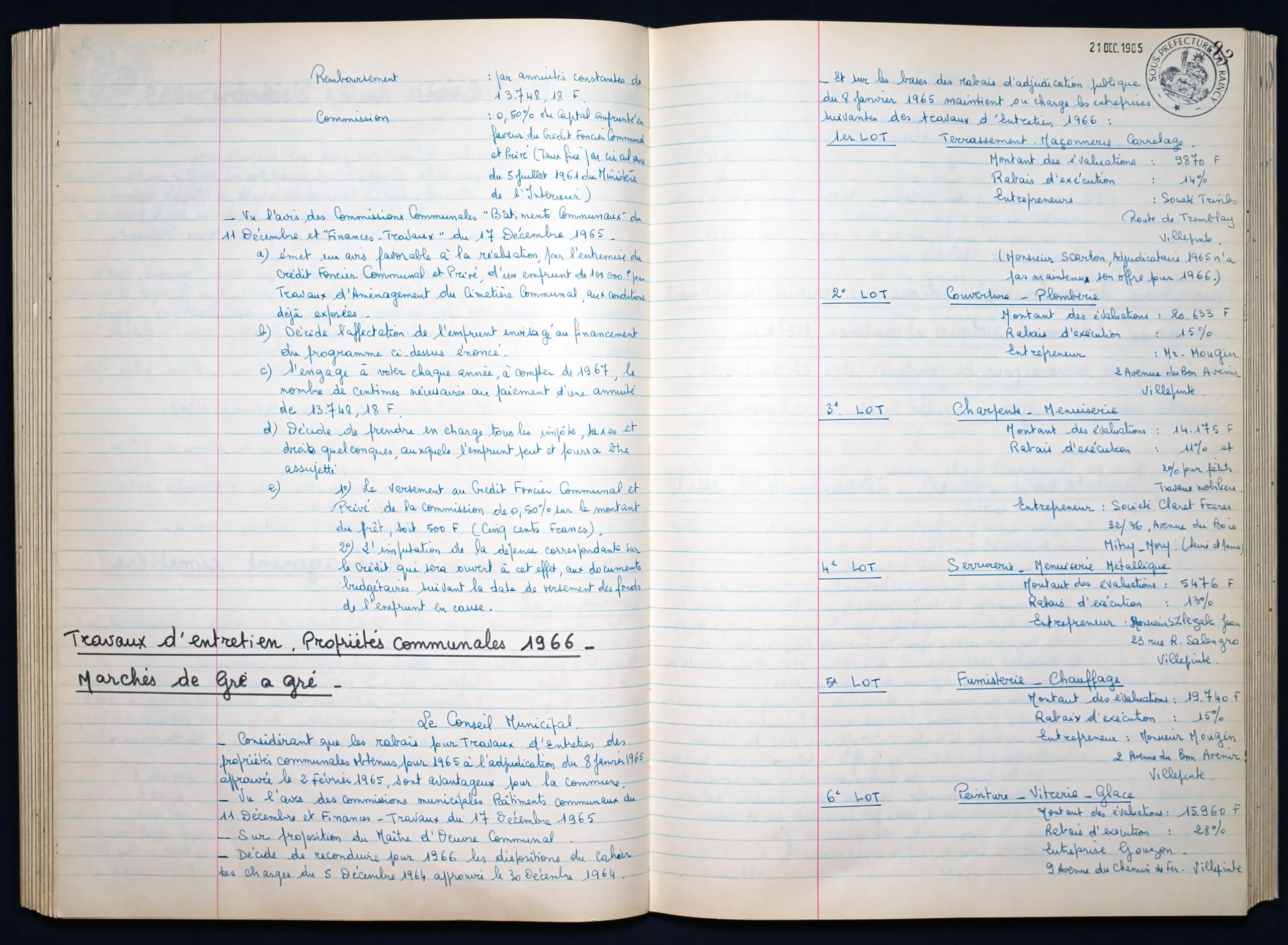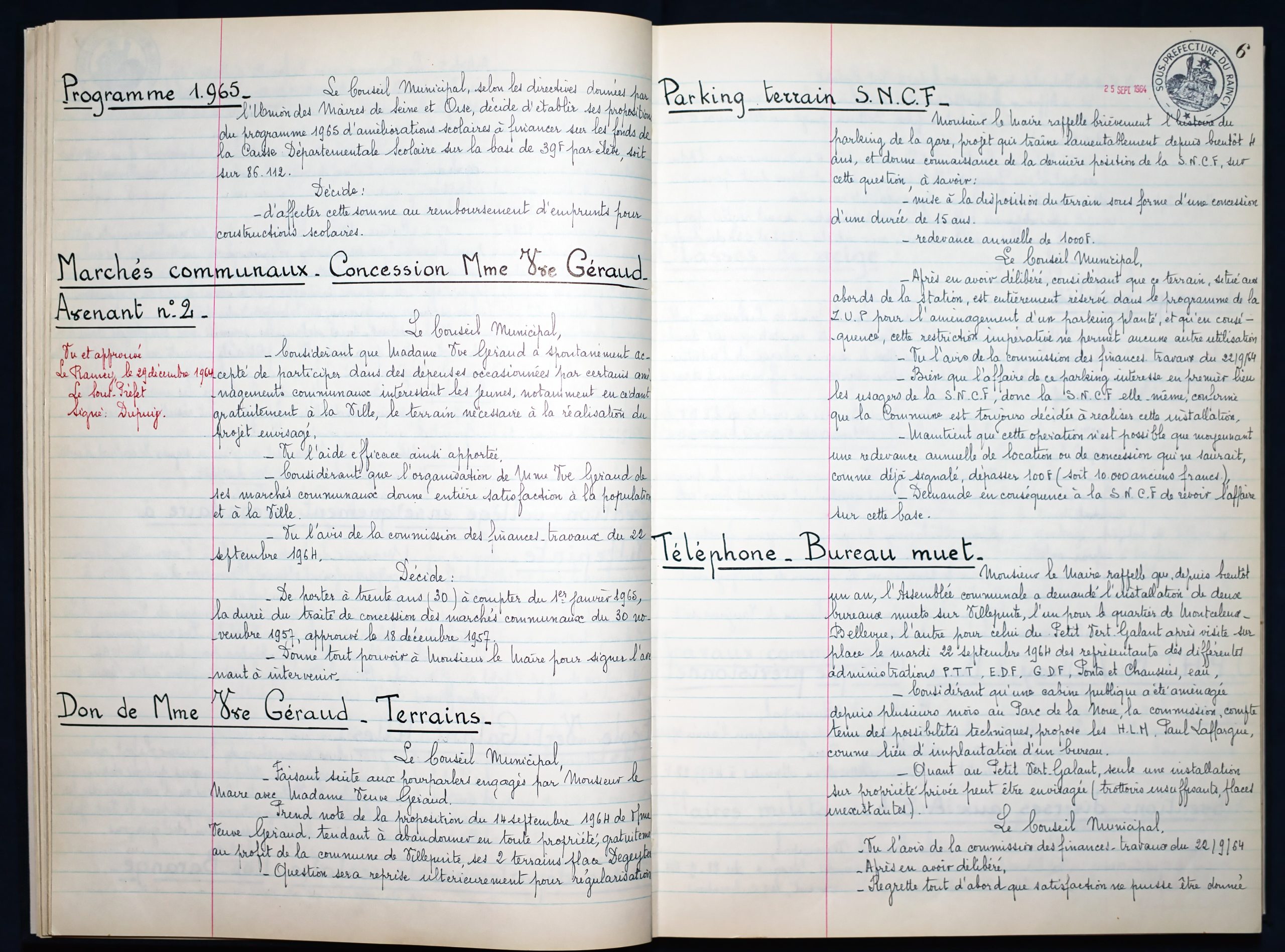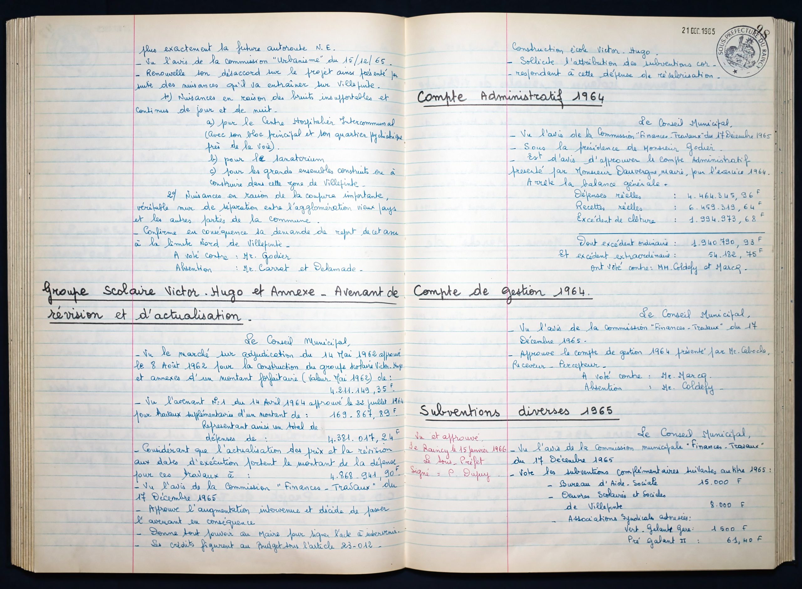 Délibérations du Conseil Municipal 1964 à 1967 1964 : folio n°3 à n°201965 : folio n°20 à n°1021966 : folio n°103 à n°1531967 : folio n°154 à n°203 1964 : folio n°3 à n°201965 : folio n°20 à n°1021966 : folio n°103 à n°1531967 : folio n°154 à n°203