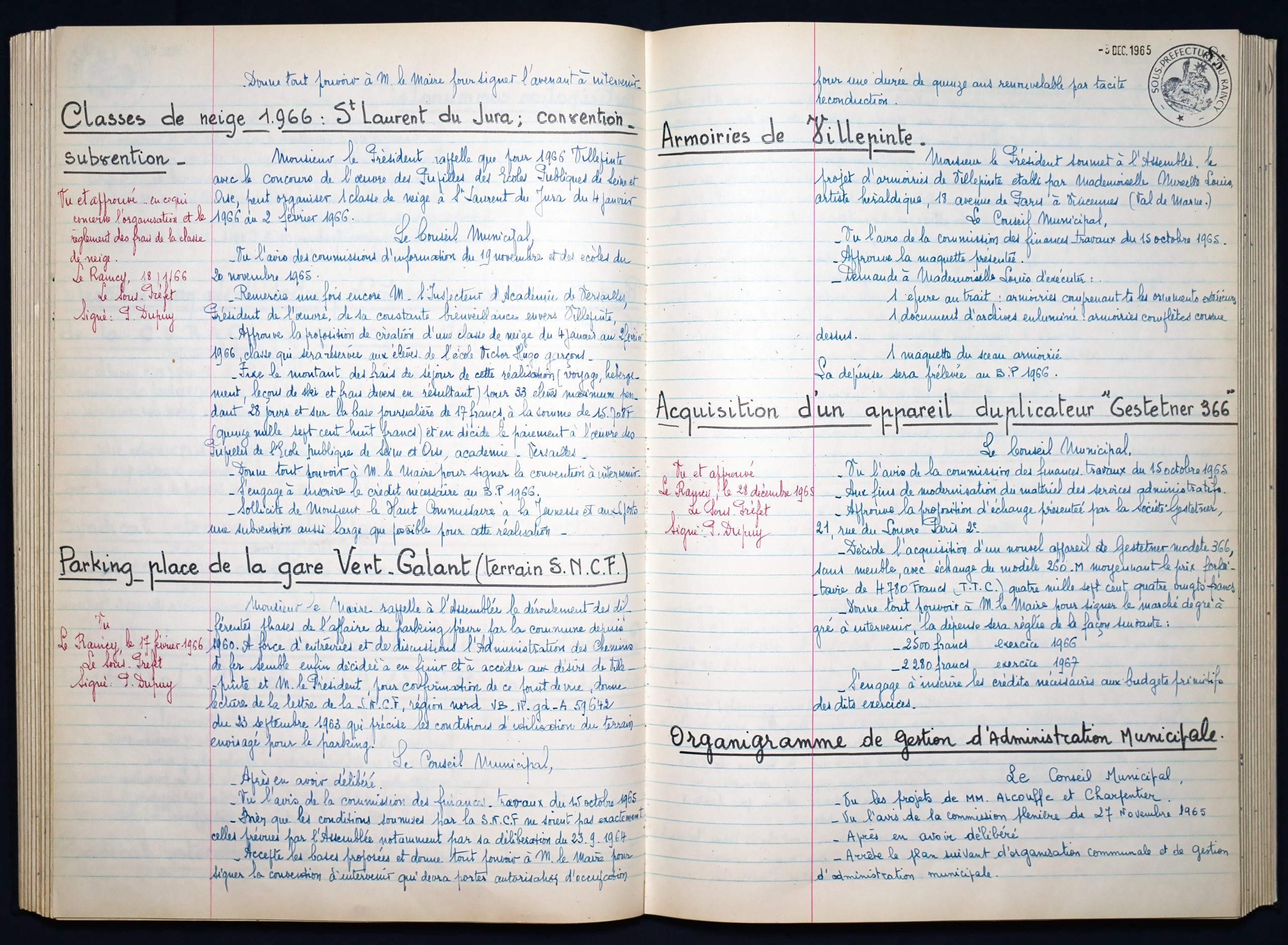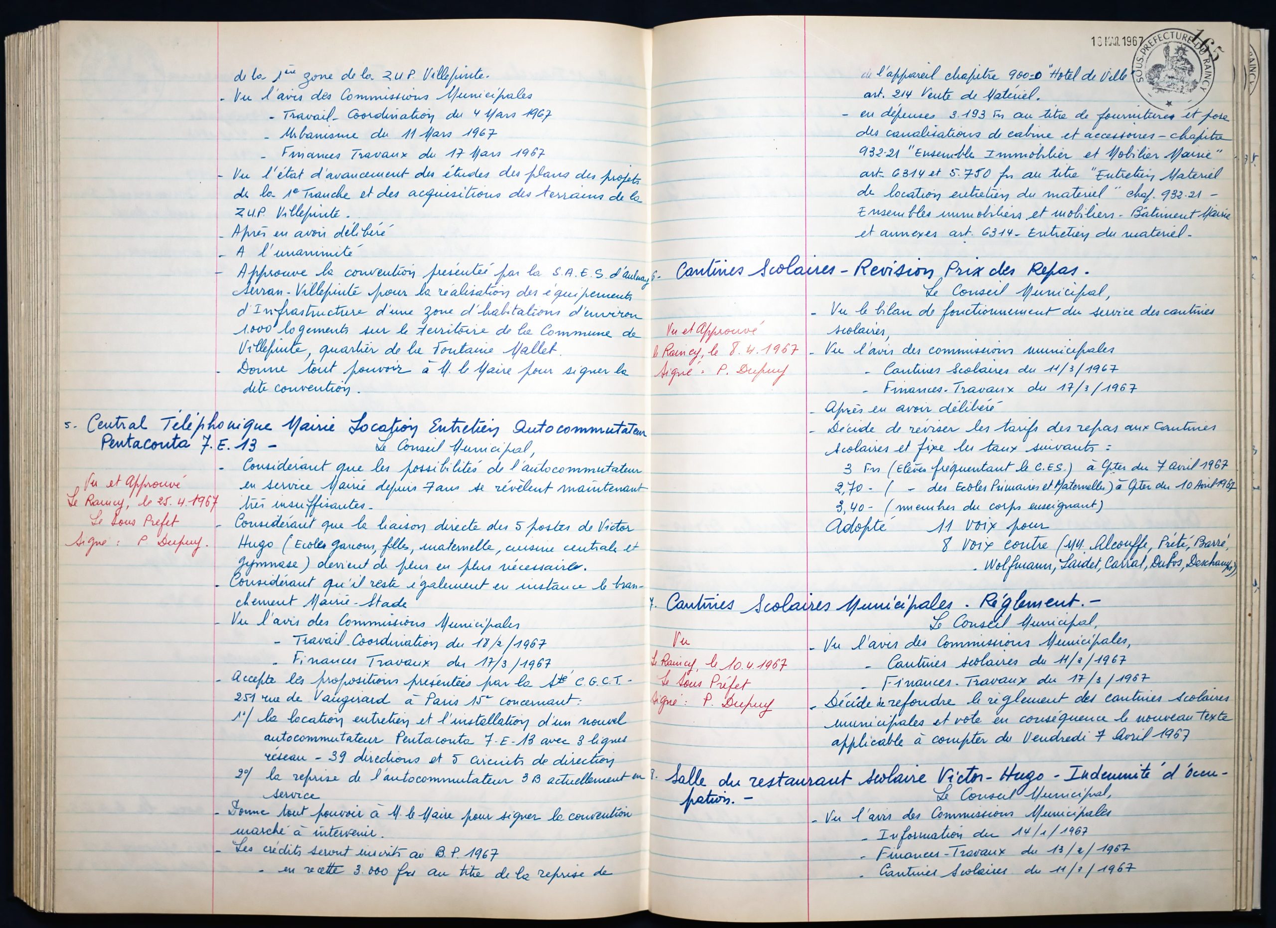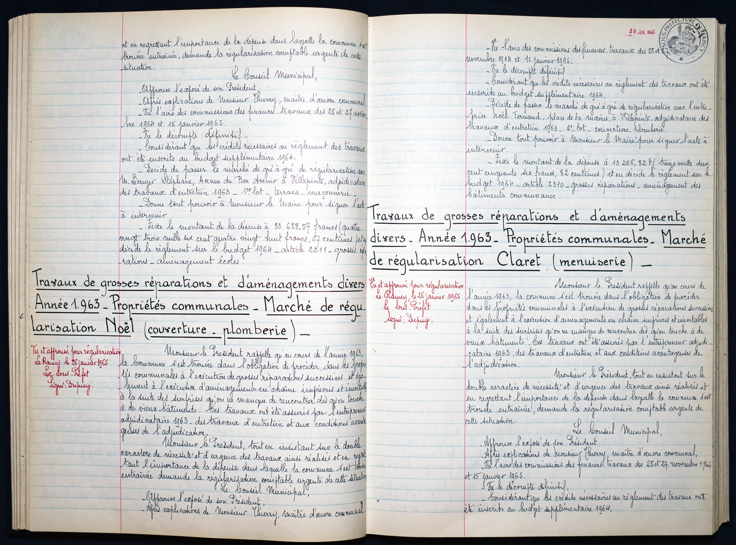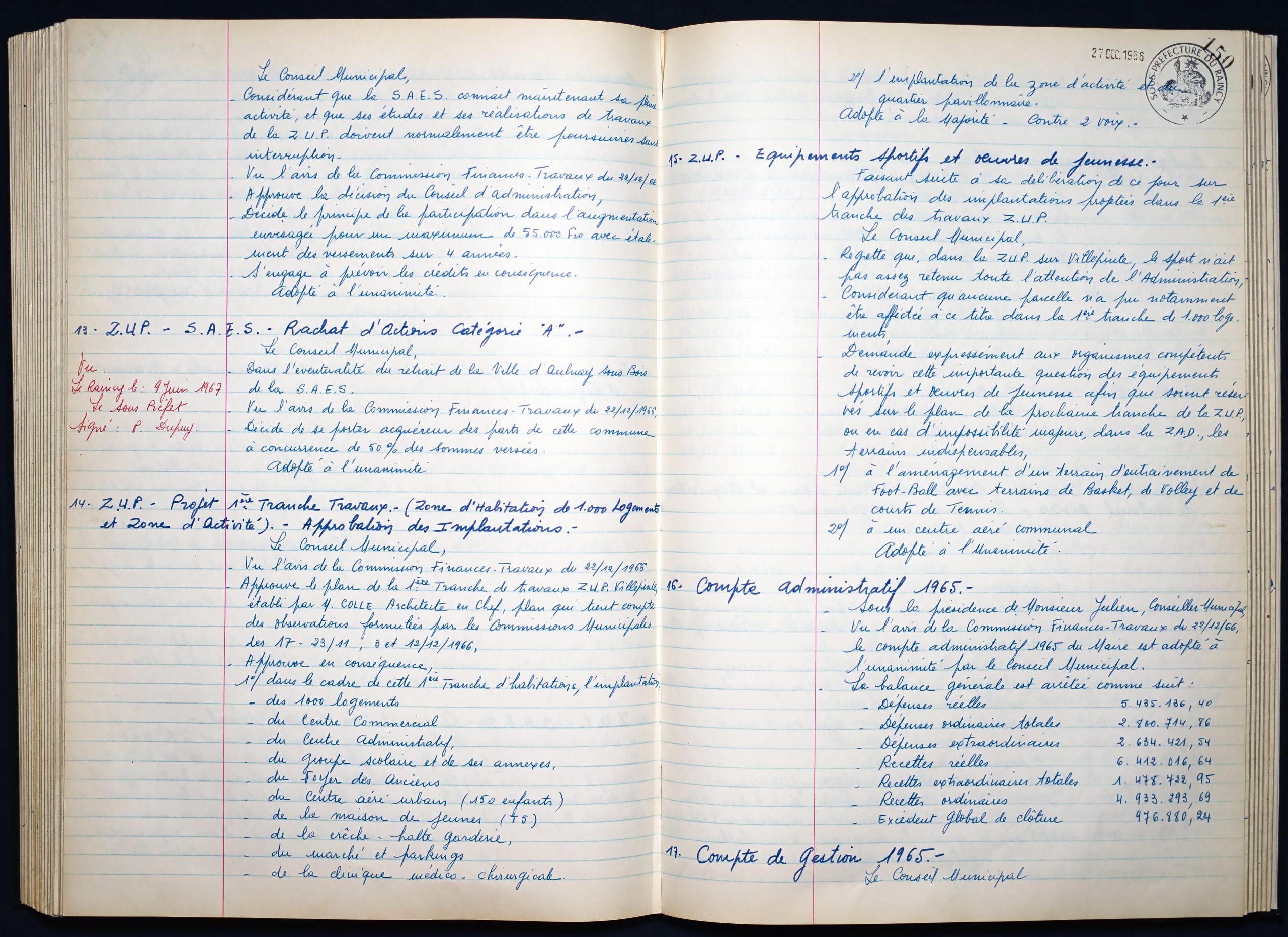 Délibérations du Conseil Municipal 1964 à 1967 1964 : folio n°3 à n°201965 : folio n°20 à n°1021966 : folio n°103 à n°1531967 : folio n°154 à n°203 1964 : folio n°3 à n°201965 : folio n°20 à n°1021966 : folio n°103 à n°1531967 : folio n°154 à n°203