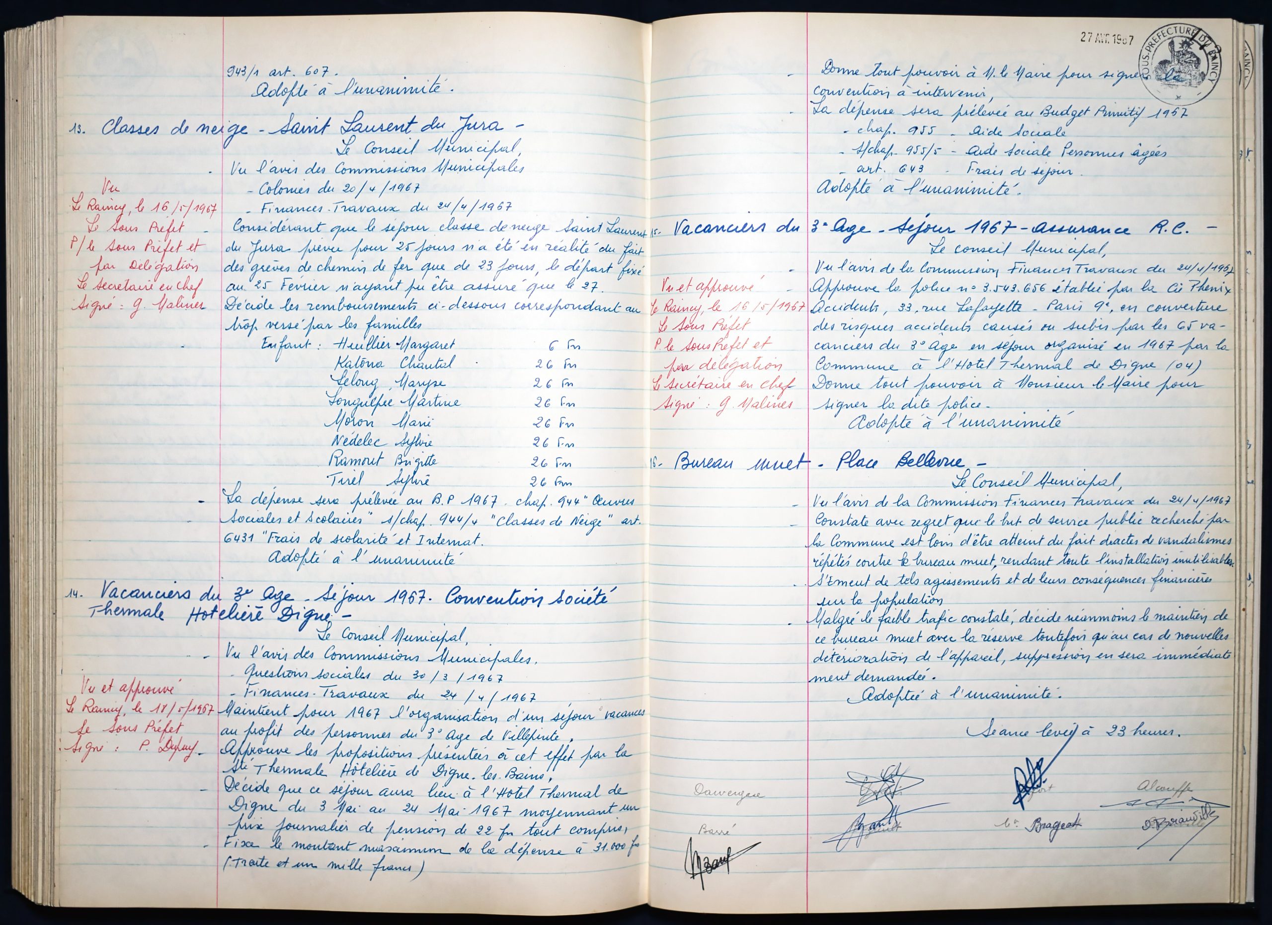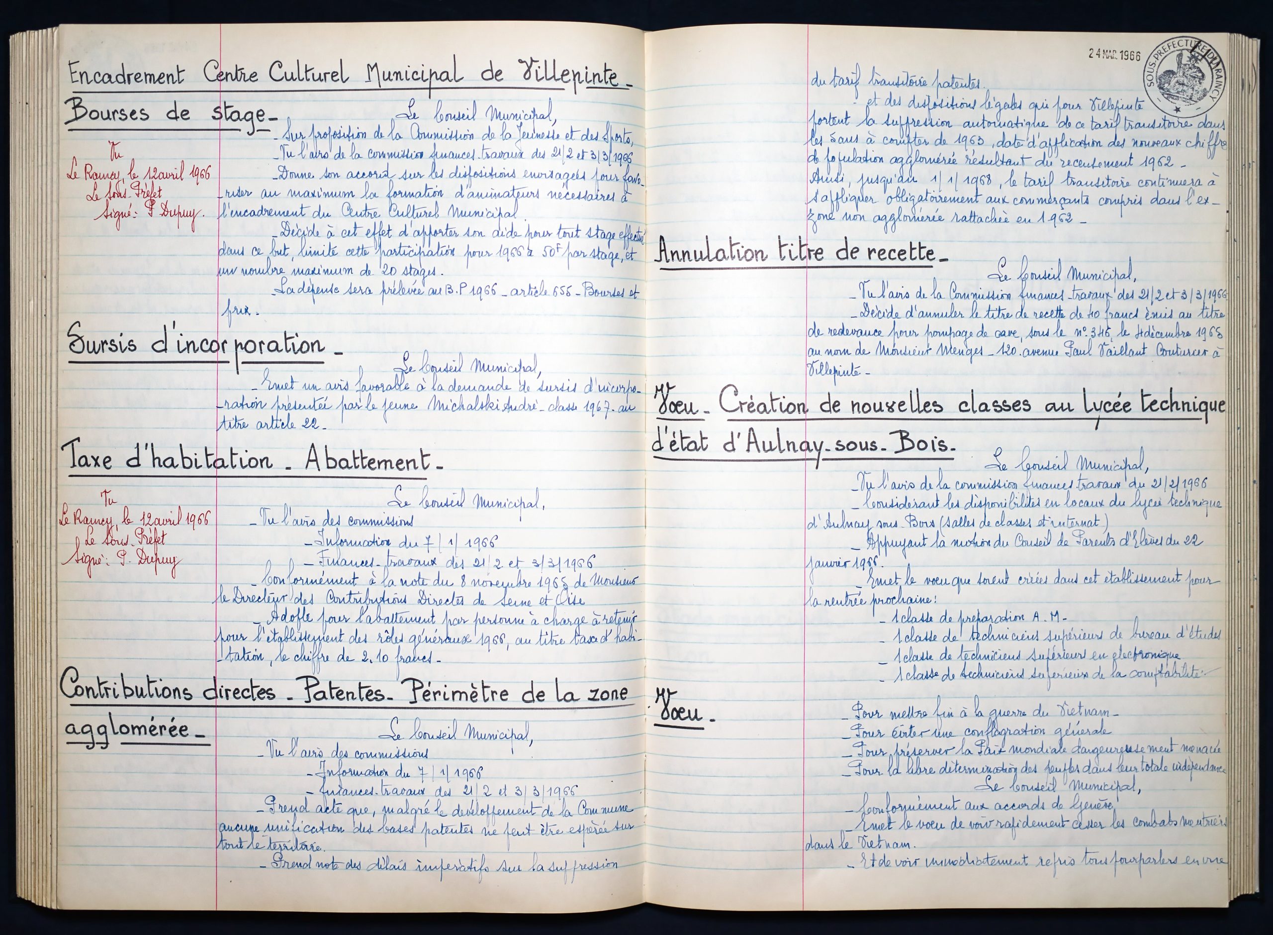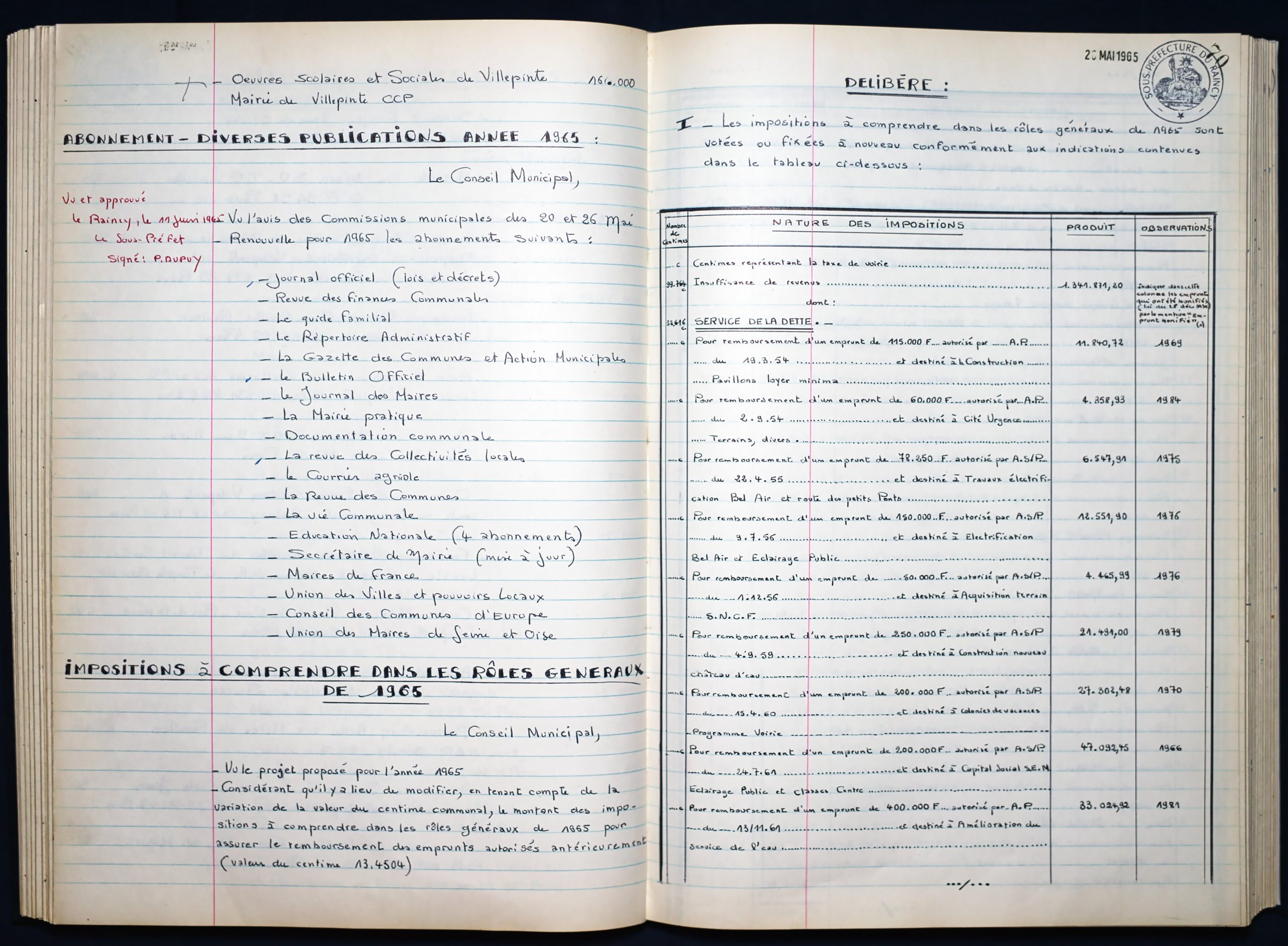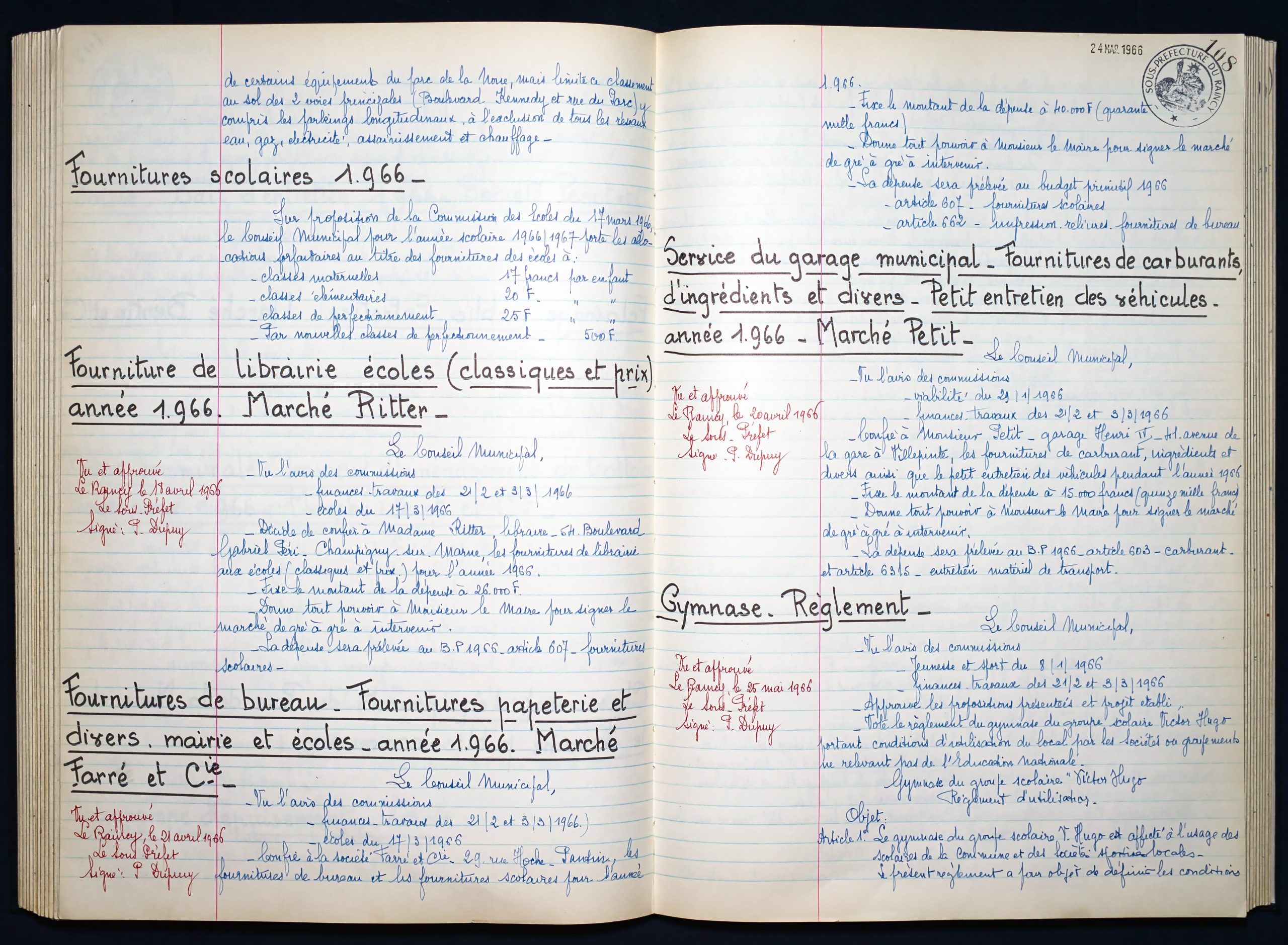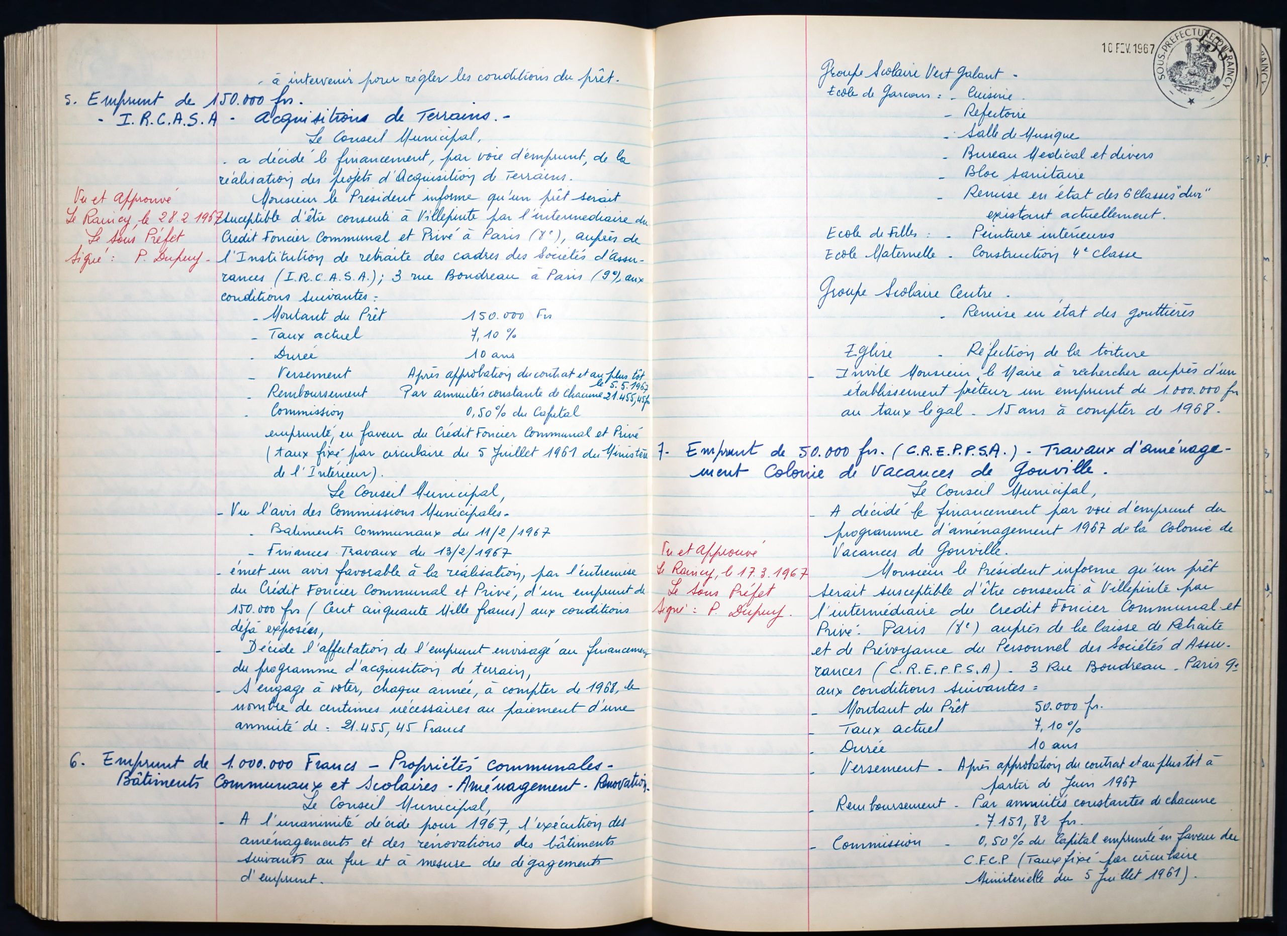 Délibérations du Conseil Municipal 1964 à 1967 1964 : folio n°3 à n°201965 : folio n°20 à n°1021966 : folio n°103 à n°1531967 : folio n°154 à n°203 1964 : folio n°3 à n°201965 : folio n°20 à n°1021966 : folio n°103 à n°1531967 : folio n°154 à n°203