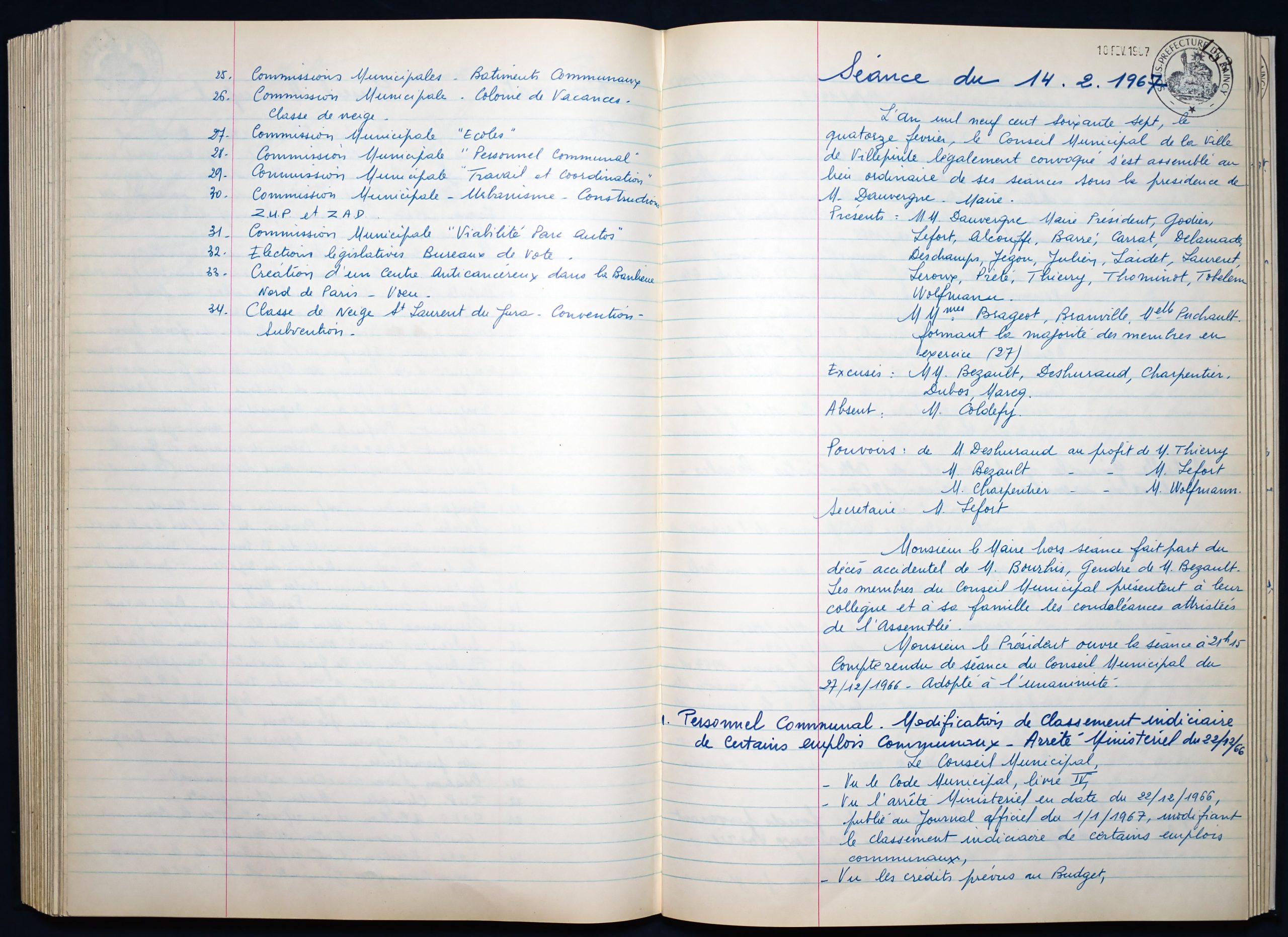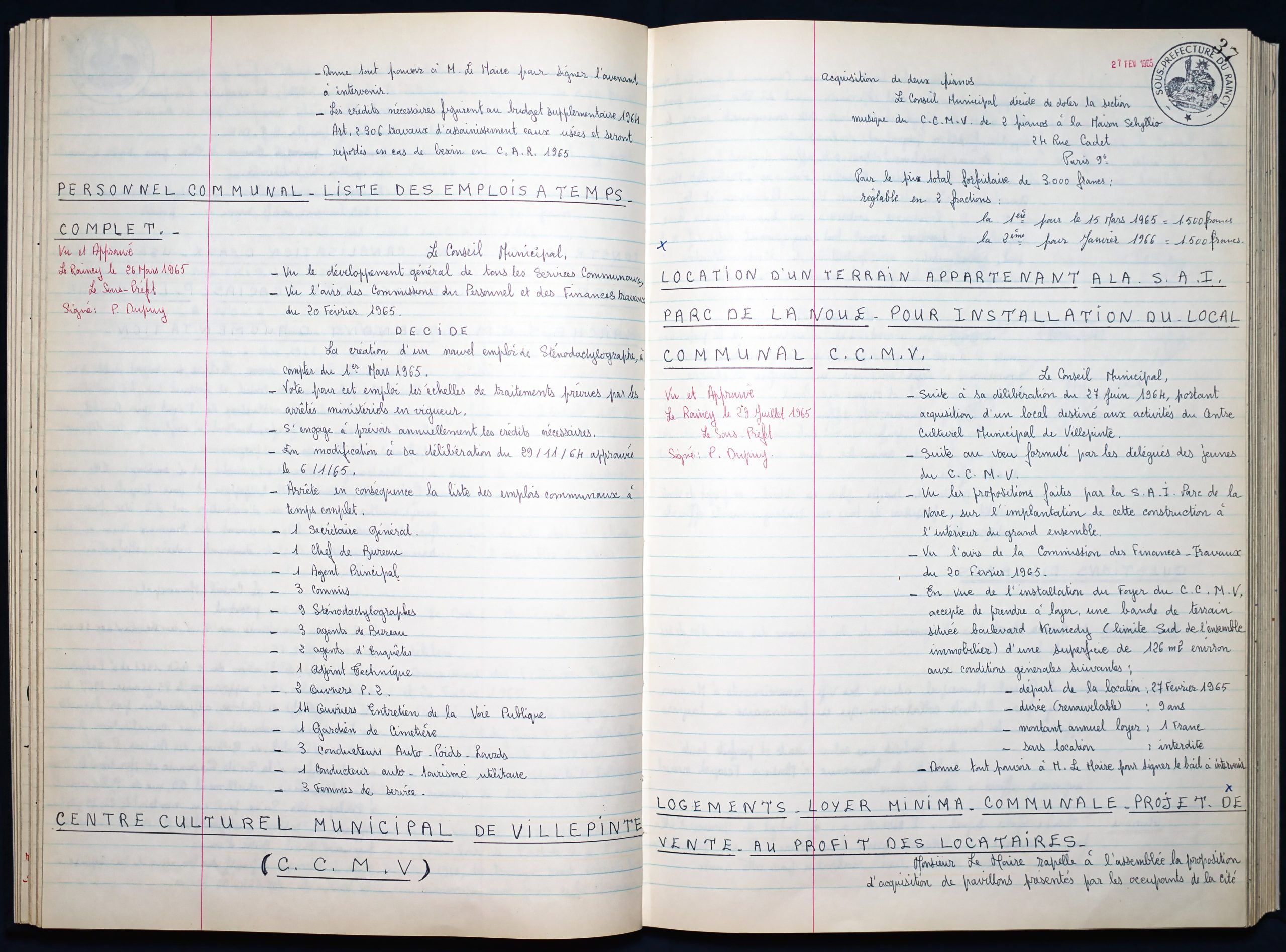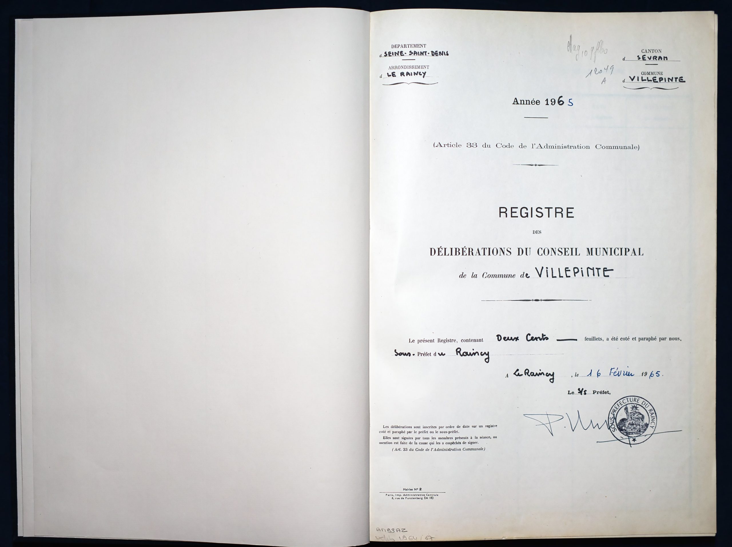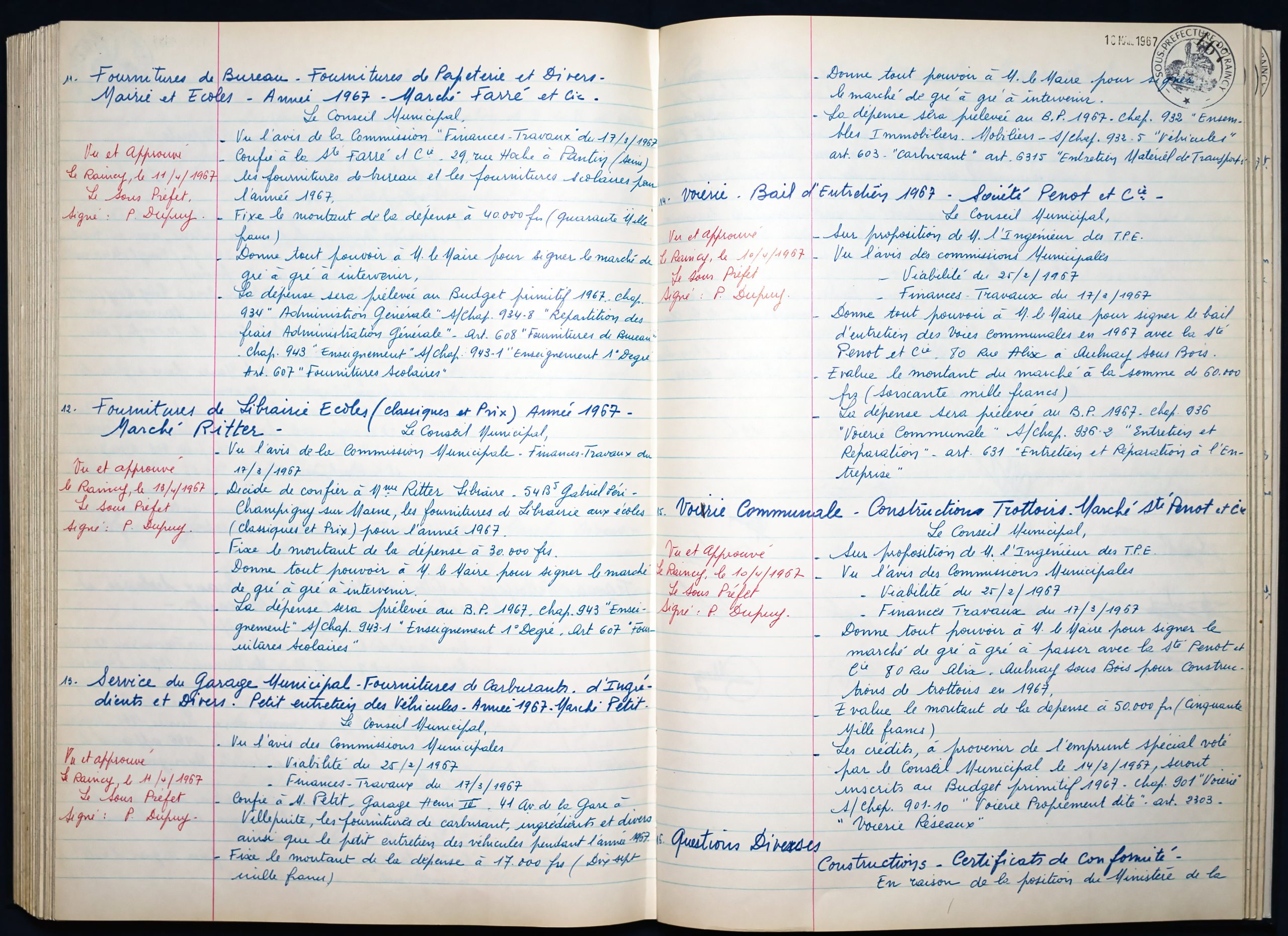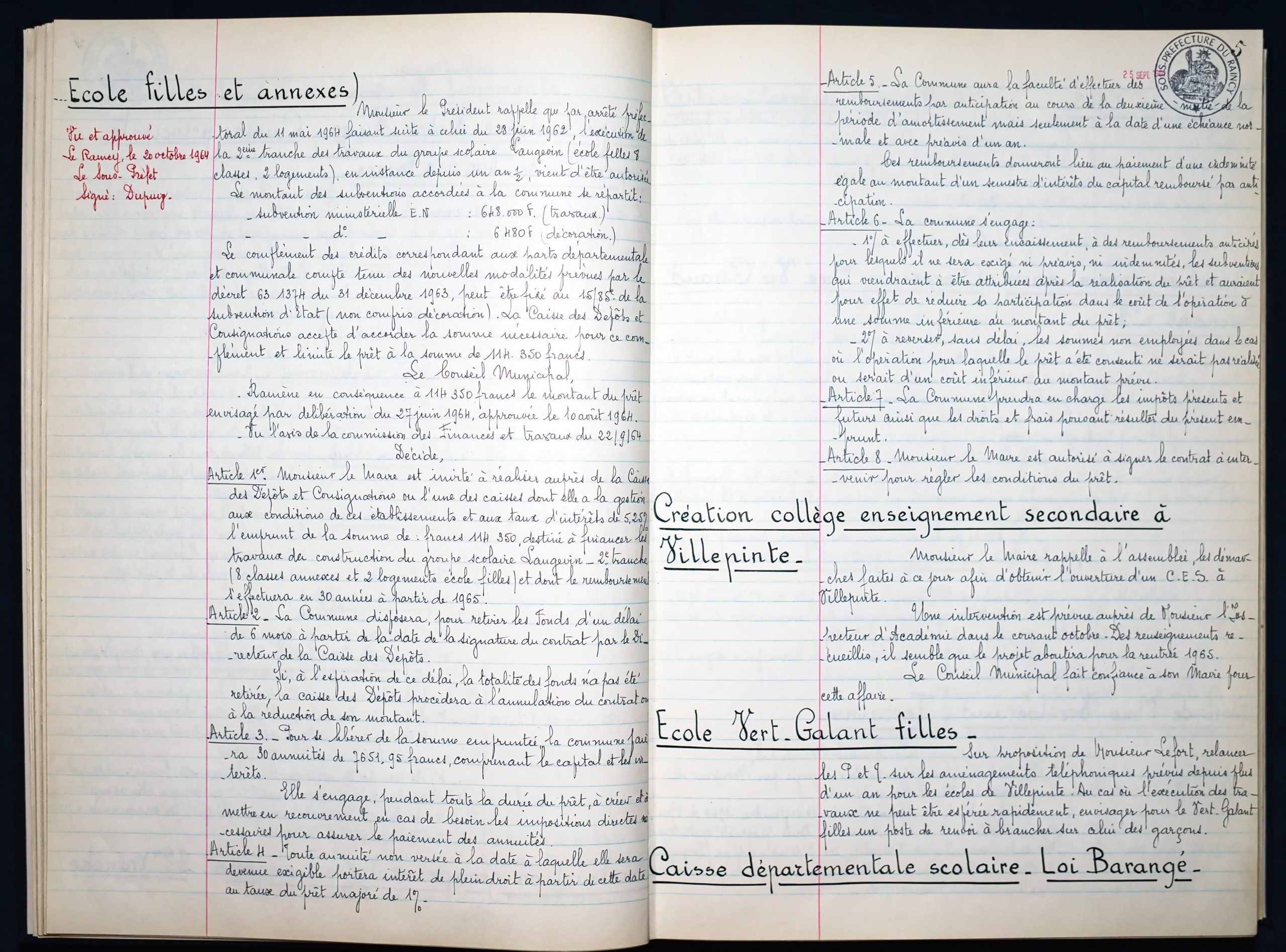 Délibérations du Conseil Municipal 1964 à 1967 1964 : folio n°3 à n°201965 : folio n°20 à n°1021966 : folio n°103 à n°1531967 : folio n°154 à n°203 1964 : folio n°3 à n°201965 : folio n°20 à n°1021966 : folio n°103 à n°1531967 : folio n°154 à n°203