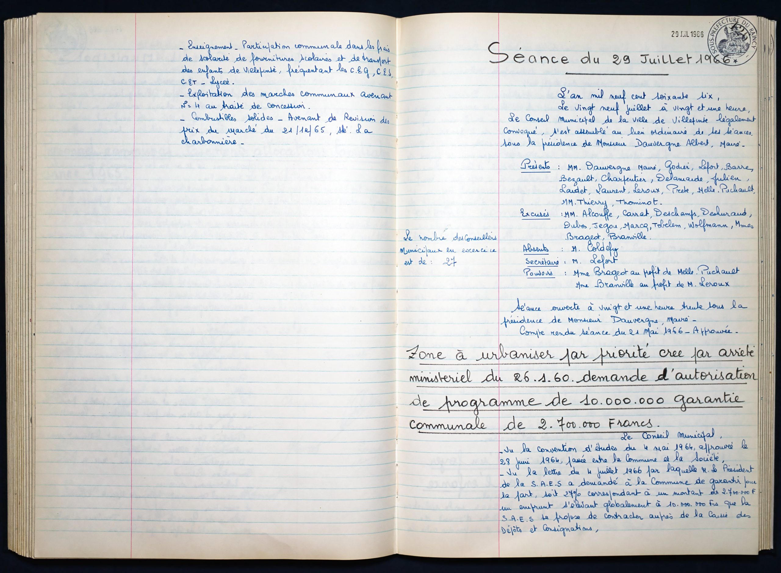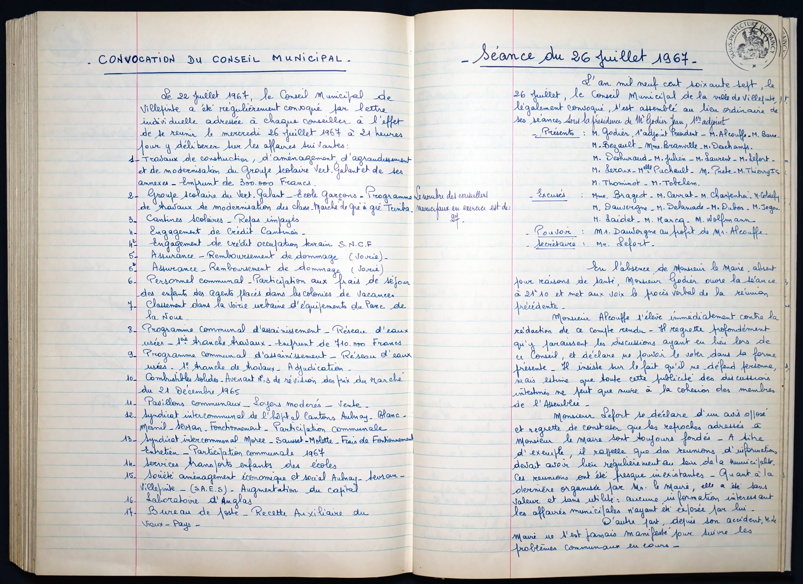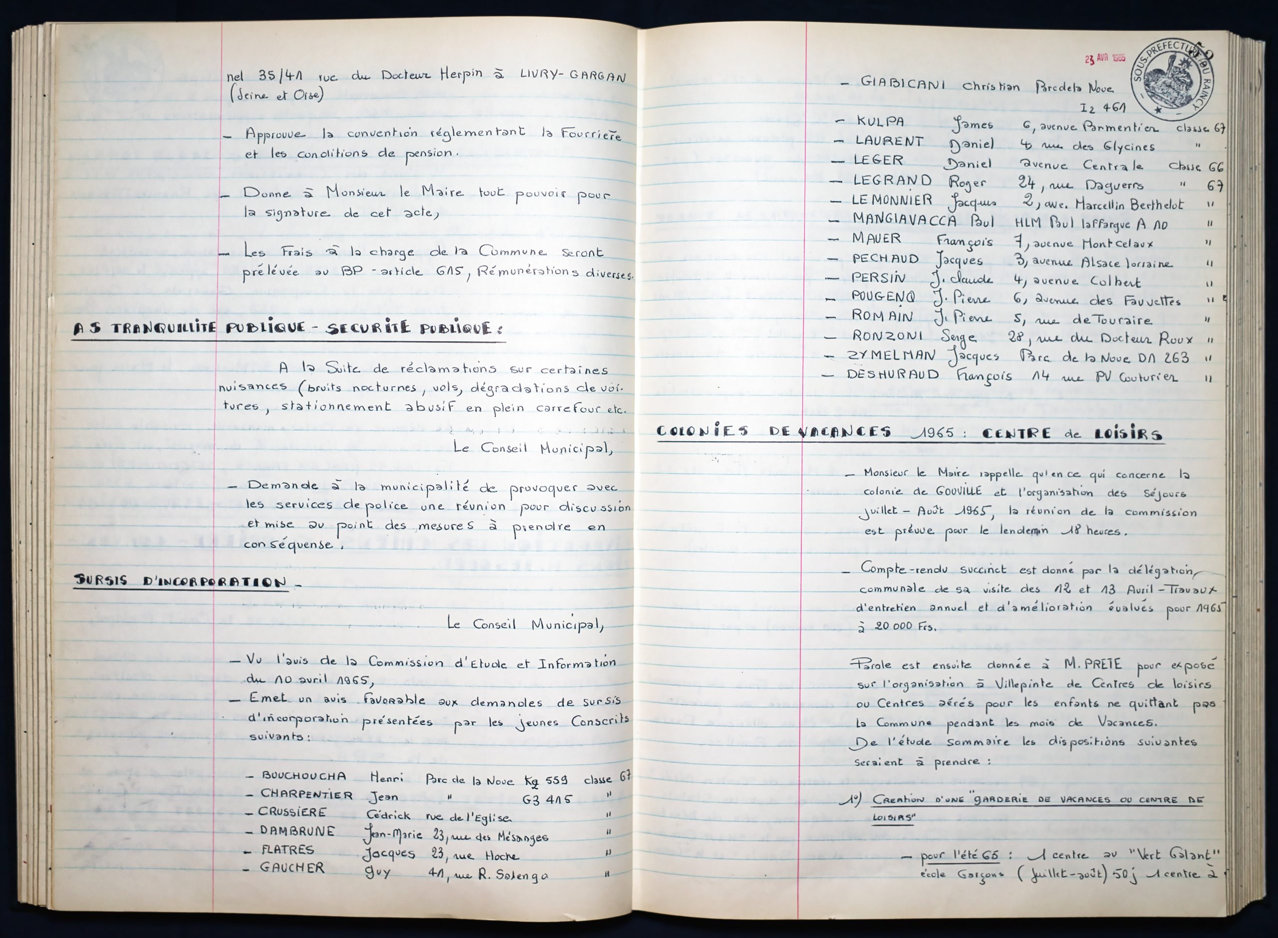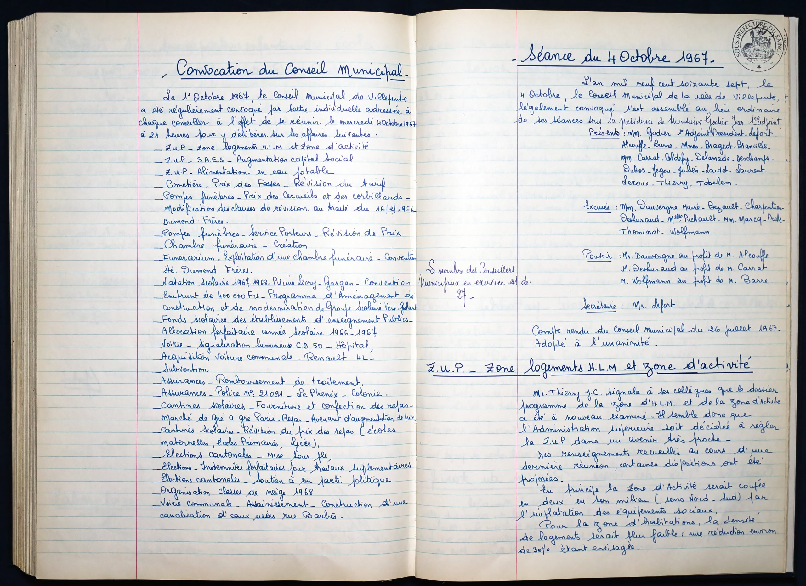 Délibérations du Conseil Municipal 1964 à 1967 1964 : folio n°3 à n°201965 : folio n°20 à n°1021966 : folio n°103 à n°1531967 : folio n°154 à n°203 1964 : folio n°3 à n°201965 : folio n°20 à n°1021966 : folio n°103 à n°1531967 : folio n°154 à n°203