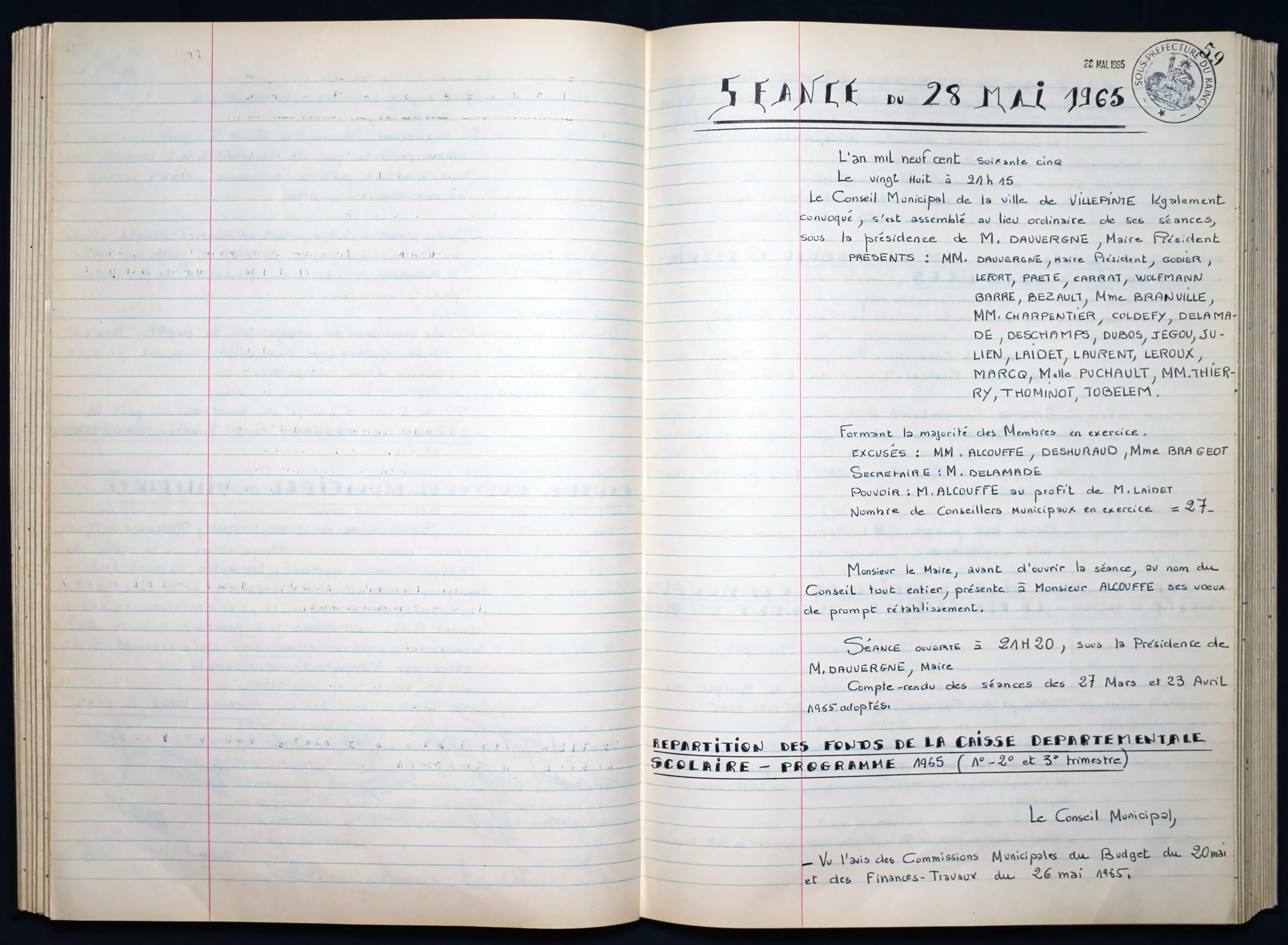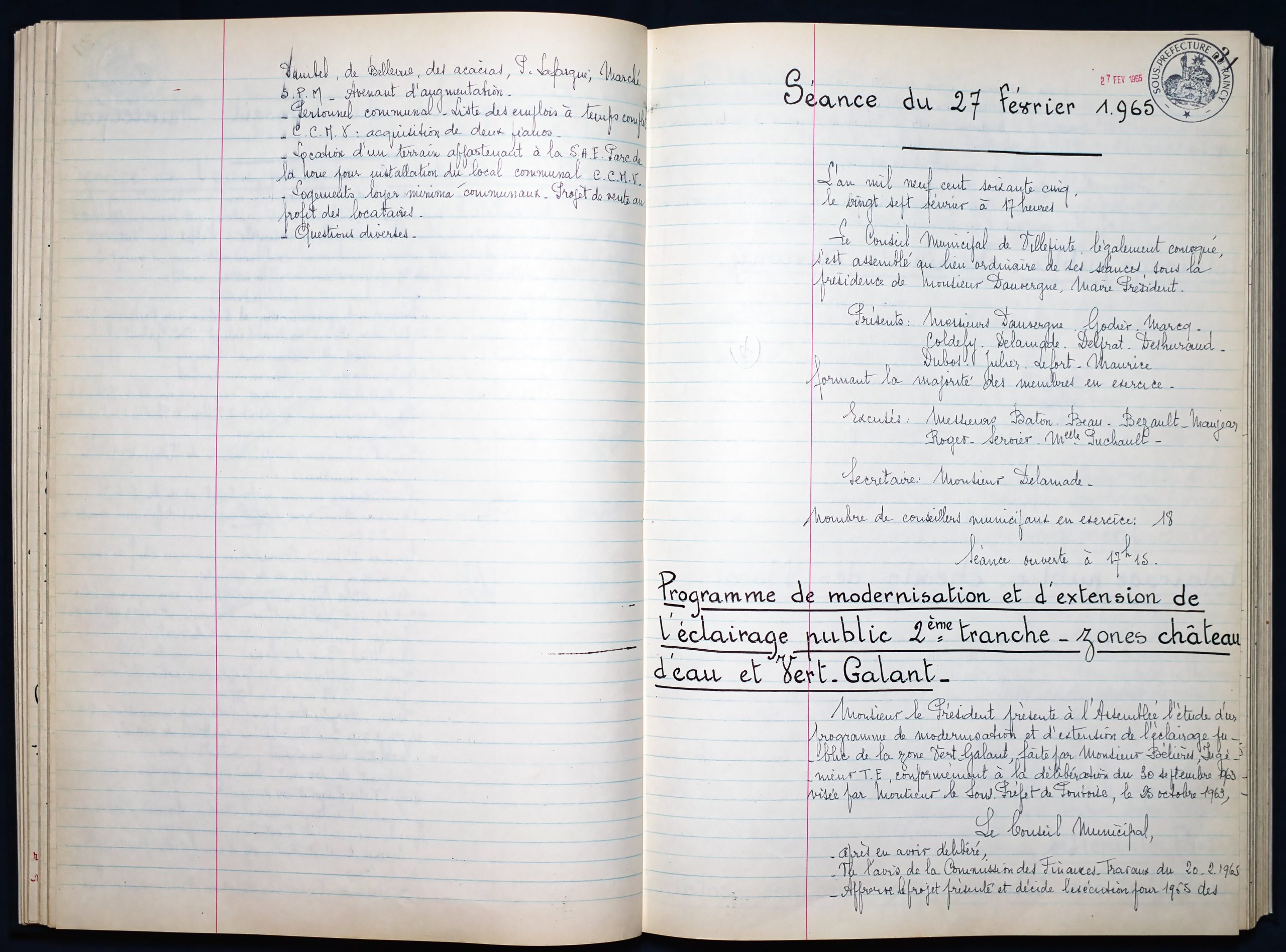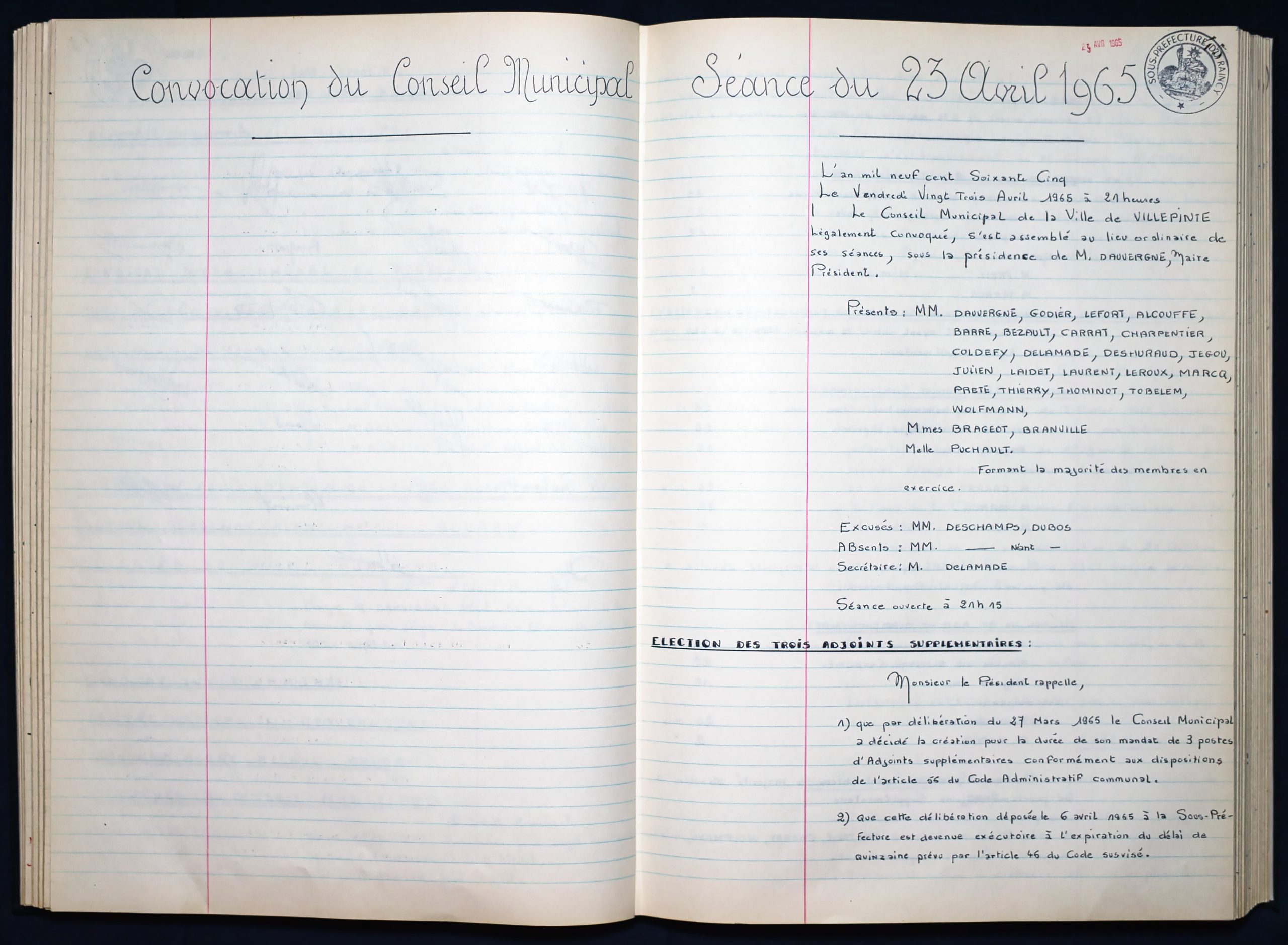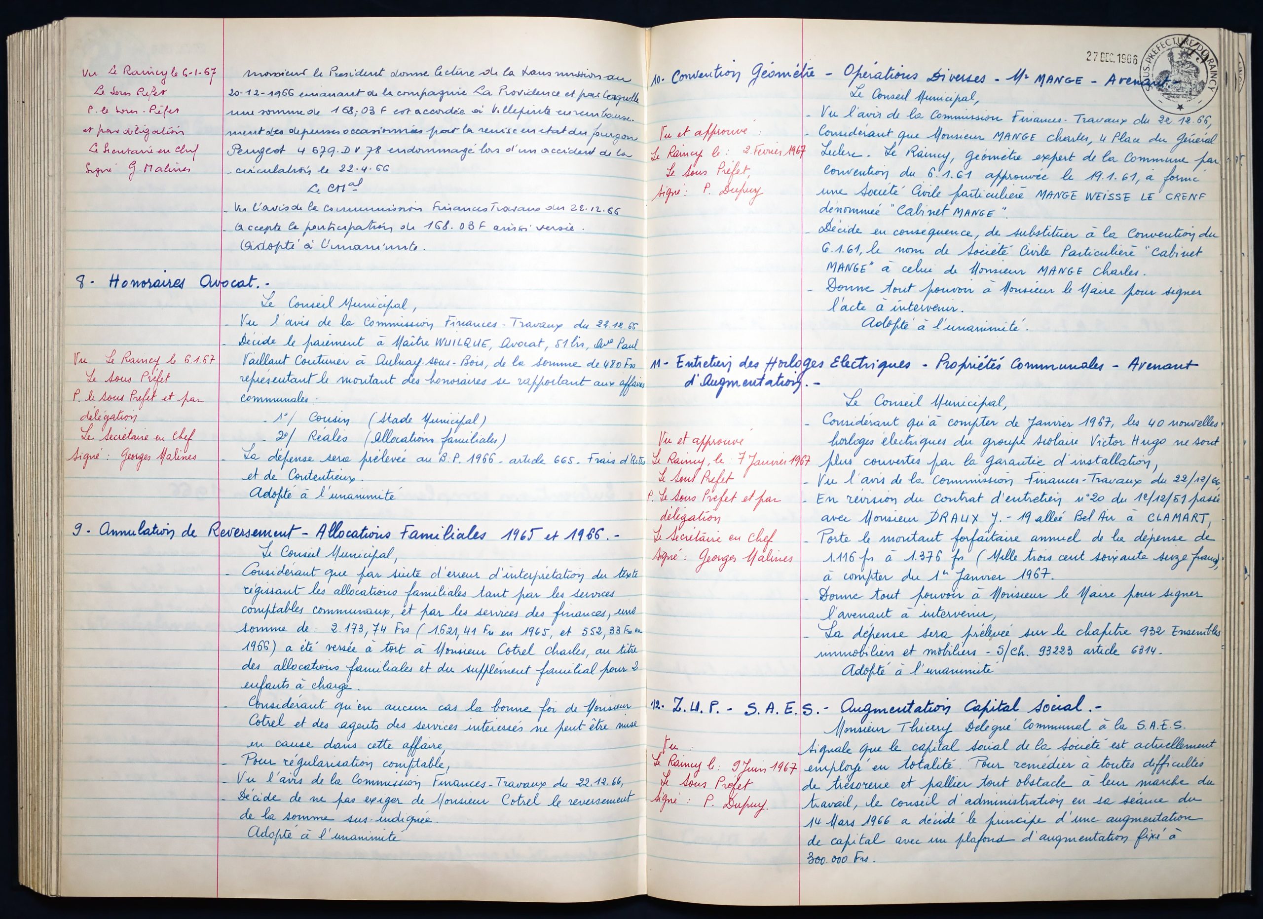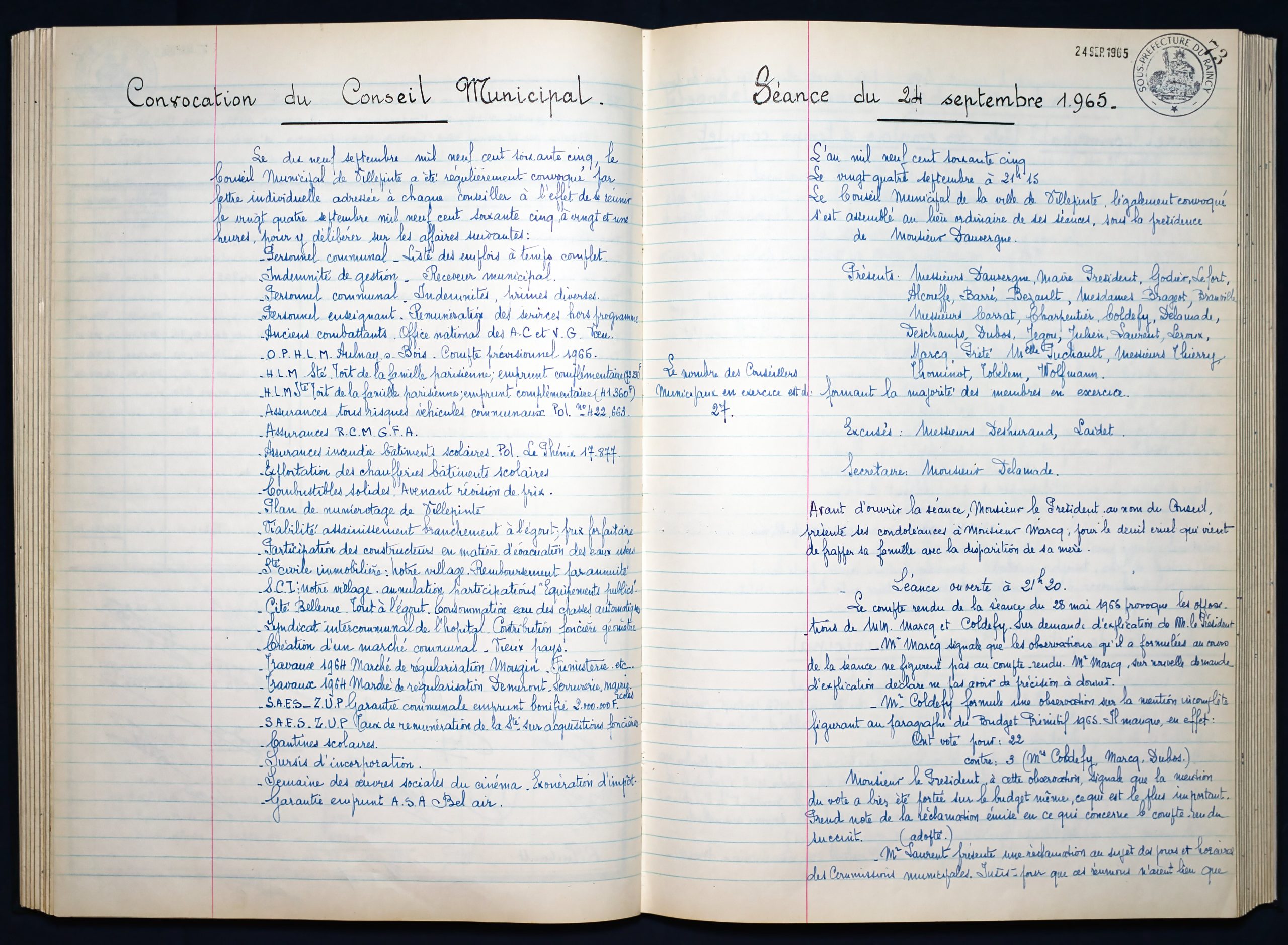 Délibérations du Conseil Municipal 1964 à 1967 1964 : folio n°3 à n°201965 : folio n°20 à n°1021966 : folio n°103 à n°1531967 : folio n°154 à n°203 1964 : folio n°3 à n°201965 : folio n°20 à n°1021966 : folio n°103 à n°1531967 : folio n°154 à n°203