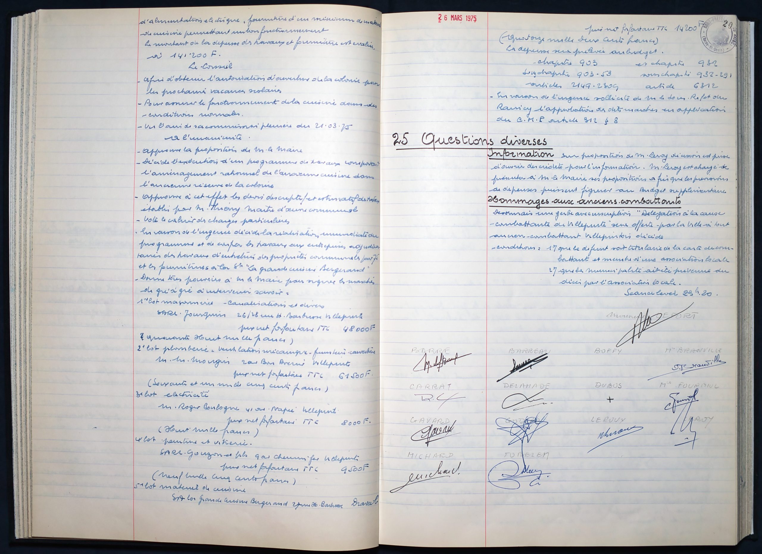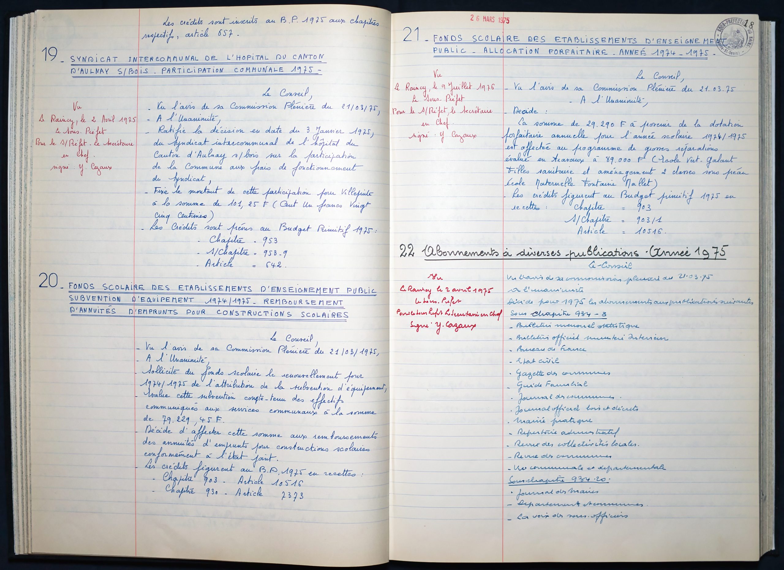 26 mars 1975 : folio n°6 à n°22