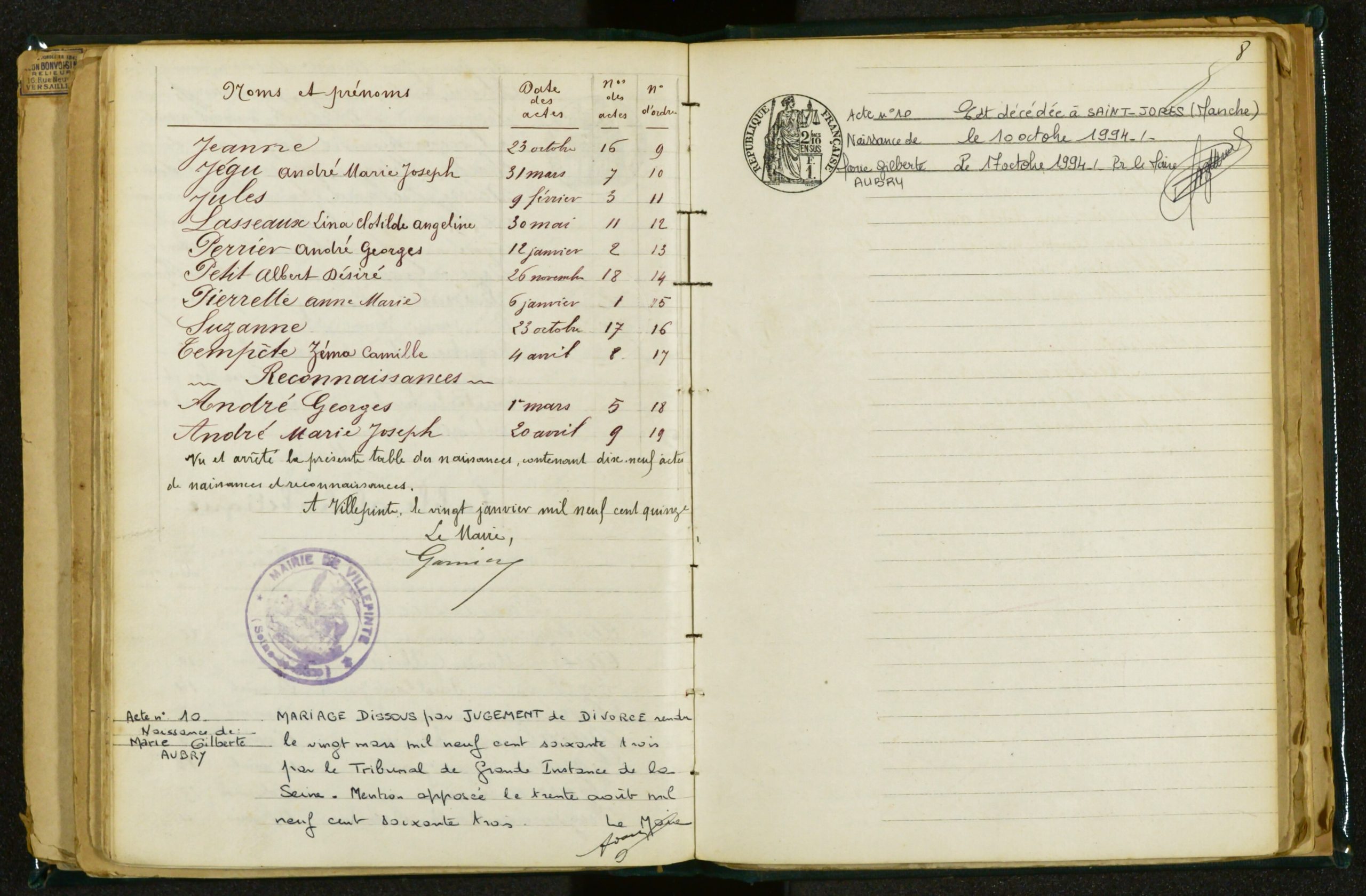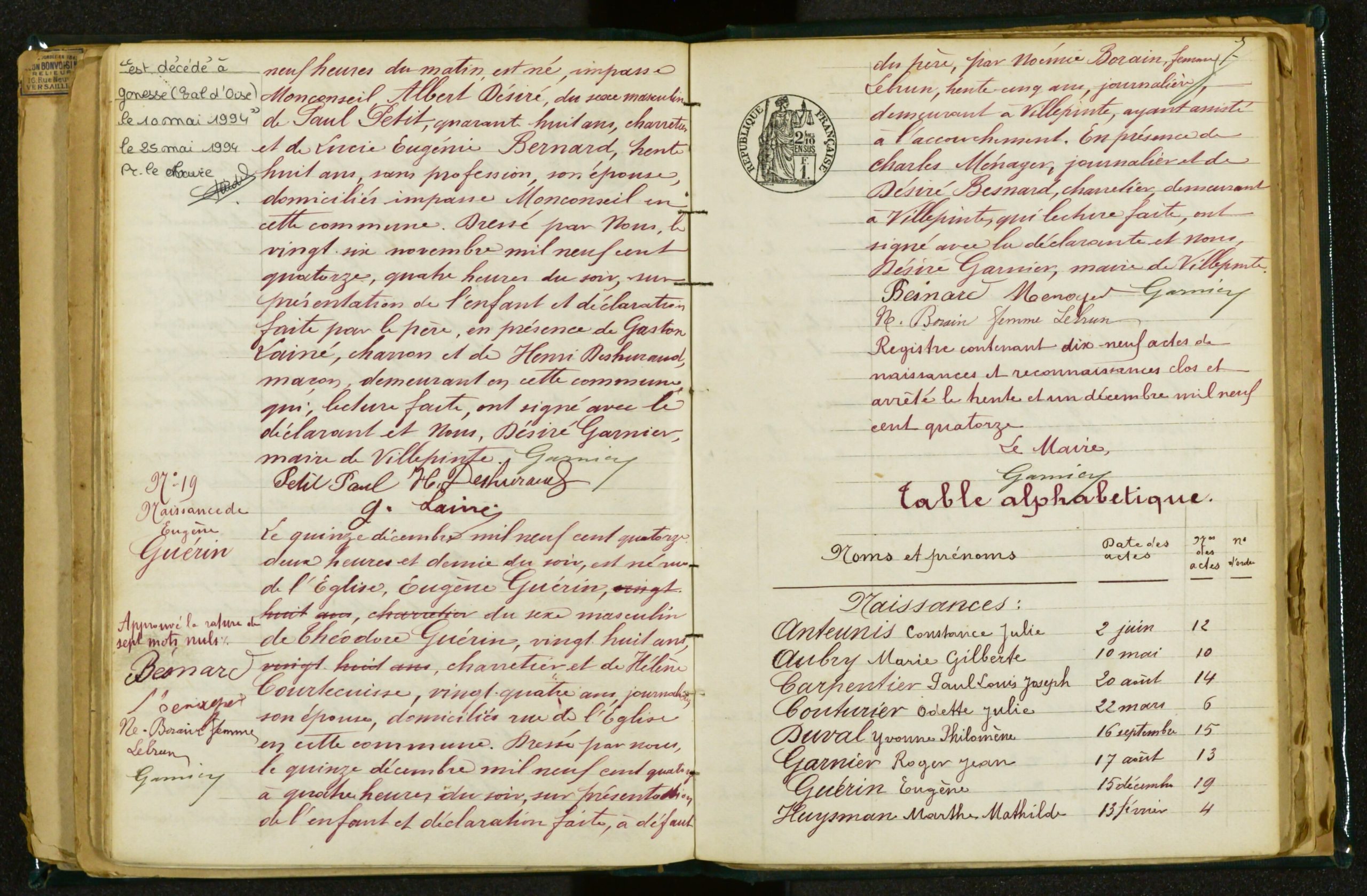 Registre des Naissances