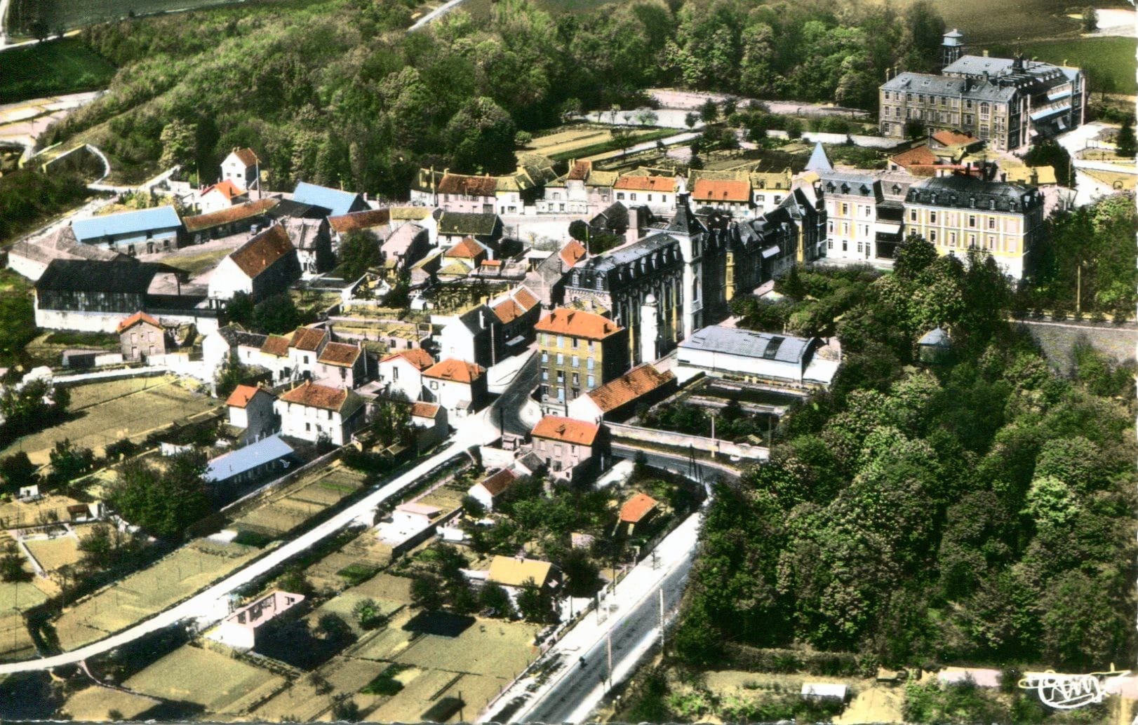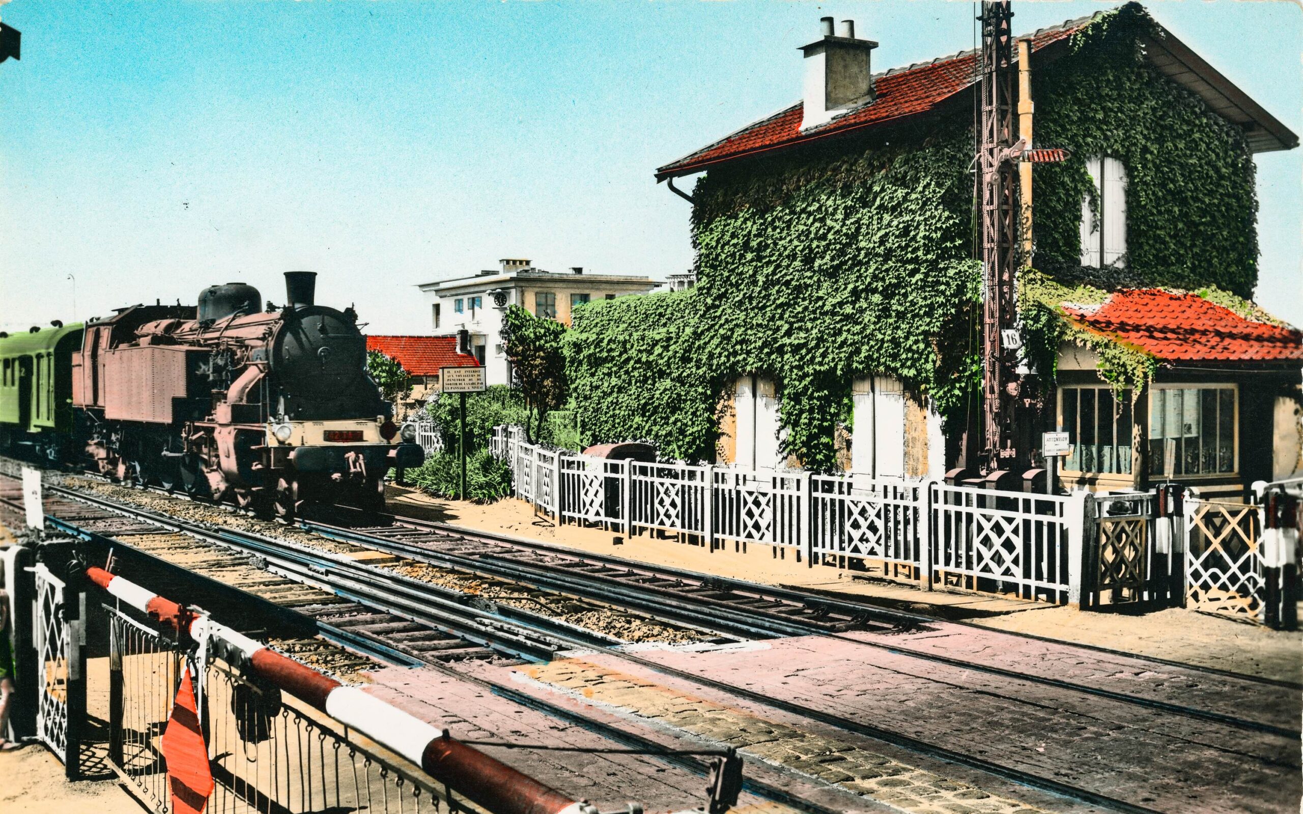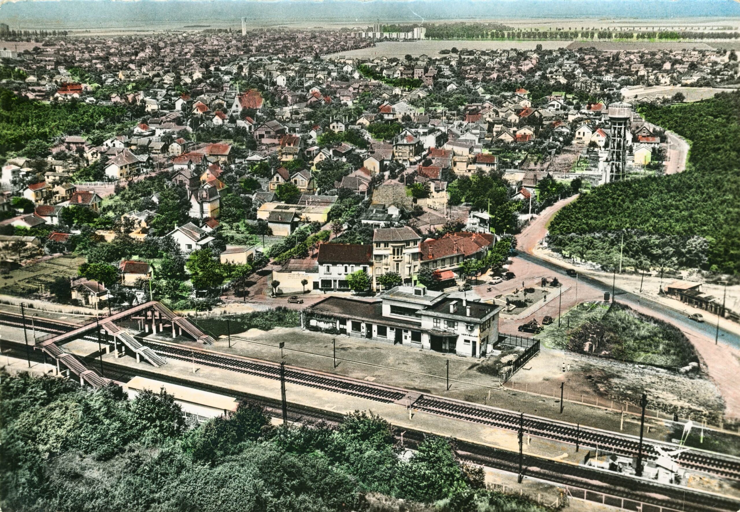 Carte Postale Vert-Galant AMV093_2Fi_0001 Vue des commerces situées autour de la gare du Vert-Galant (dont le café de la gare) dans les années 1930.