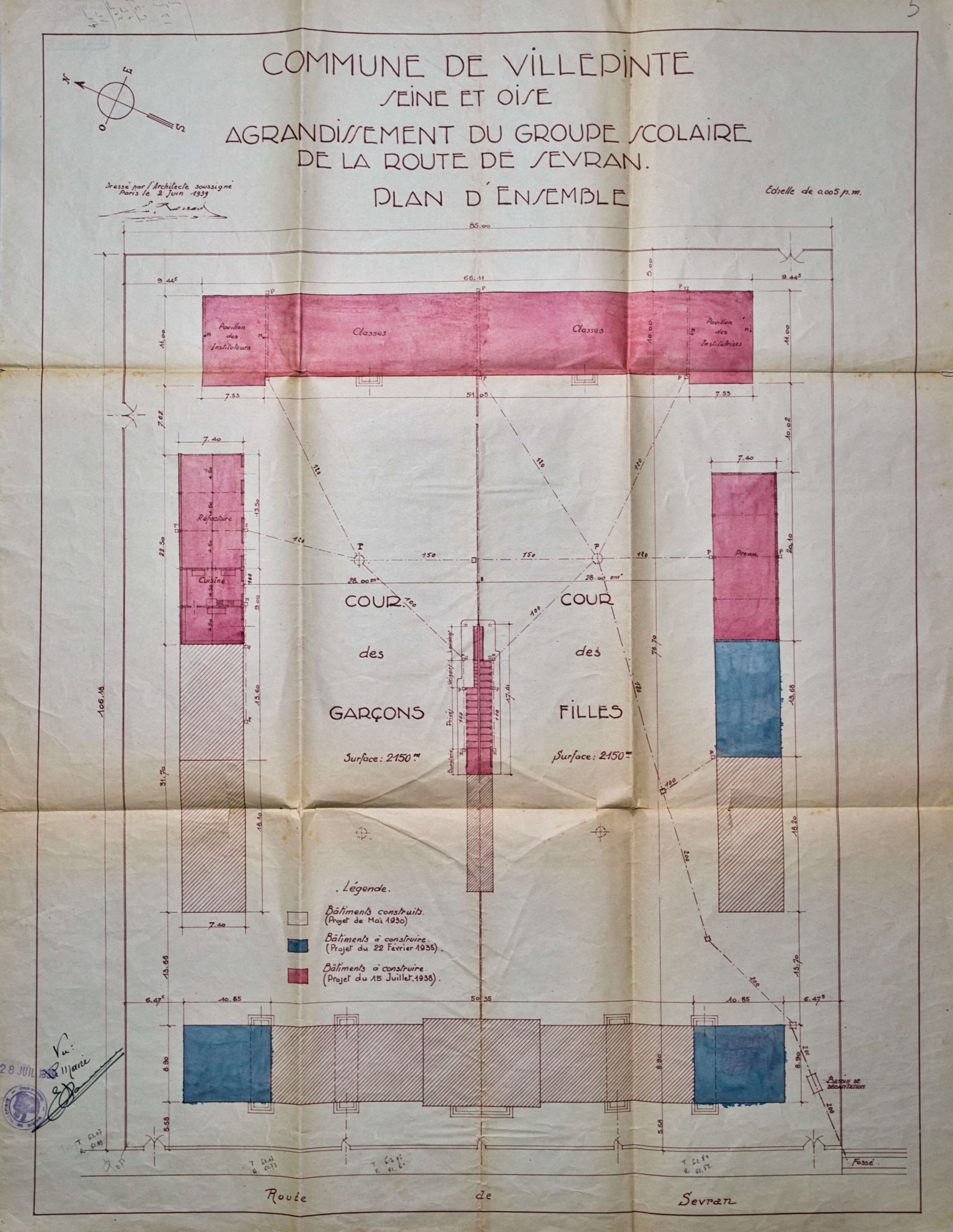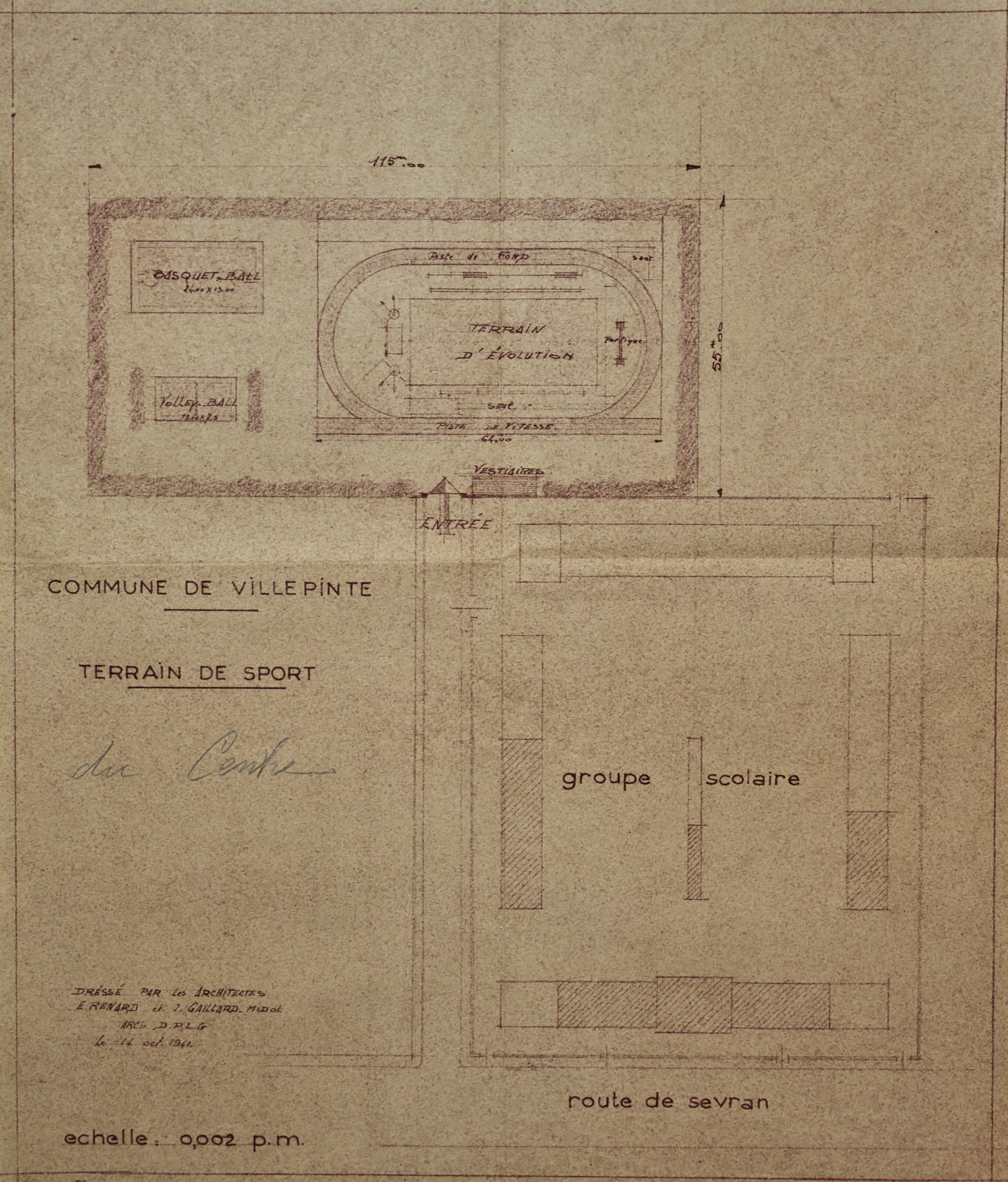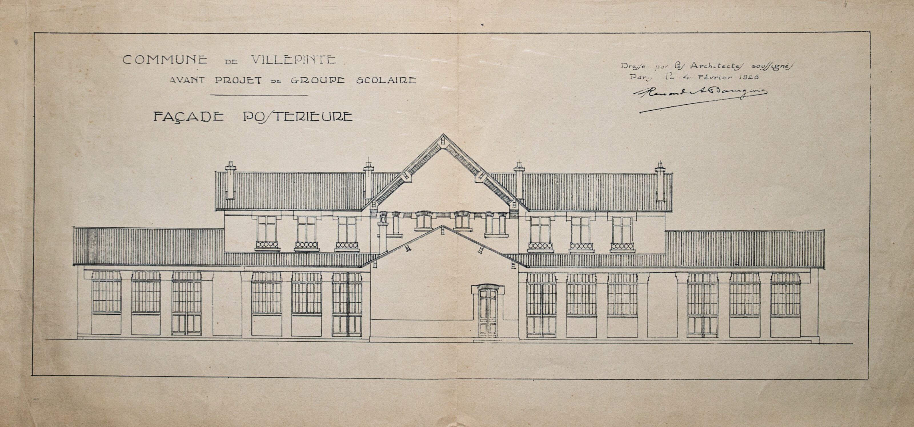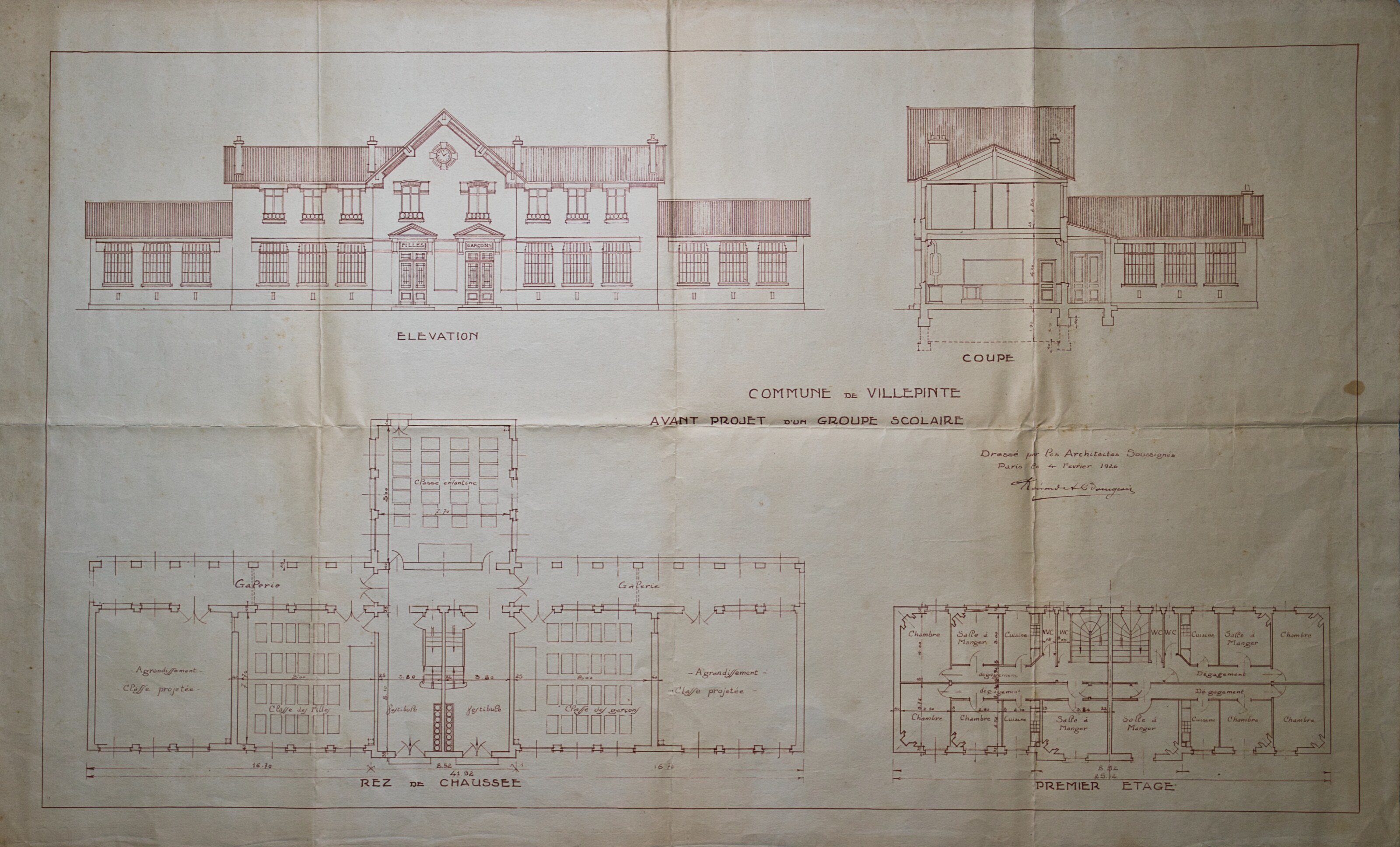 Plans de l'École du Centre Plan du projet d’un Groupe scolaire – 1925 Plan de la façade postérieure de l’avant-projet de l’École du Centre – 1926 Plan de l’élévation, de la coupe, du rez-de-chaussée et du 1er étage de l’avant-projet de l’École du Centre – 1926 Plan d’ensemble de l’École du Centre – 1930 Plan des façades de l’École du Centre – 1930 Plan de l'École du Centre - 1930 Plan d’une parcelle de terre destinée à la construction de l’École du Centre – 1930 Plan d’un terrain destiné à la construction de l’École du Centre – 1930 Plan des terrains a exproprier pour la construction de l’École du Centre – 1930 Plan d’un terrain destiné à la construction de l’École du Centre – 1930 Plan du projet d’agrandissement de l’École du Centre – Annexe au bâtiment principal – 1935 Plan du projet d’agrandissement de l’École du Centre – Préau – 1935 Plan du projet d’agrandissement de l’École du Centre – Aménagement d’un bureau dans le vestibule d’entrée – 1935 Plan de l’agrandissement de l’École du Centre – 1938 Plan de l’agrandissement de l’École du Centre – 1938 Plan de la buanderie et des privés de l’École du Centre – 1938 Plan du Préau de l’École du Centre – 1938 Plan du Réfectoire, de la Cuisine et de l’Office de l’École du Centre – 1938 Plan d’ensemble de l’agrandissement de l’École du Centre – 1939 Plan d’ensemble de l’agrandissement de l’École du Centre – 1939 Plan d’ensemble de l’agrandissement de l’École du Centre – 1939 Plan des façades latérale et postérieure côté garçon de l’agrandissement l’École du Centre – 1939 Plan des façades latérale et postérieure côté garçon de l’agrandissement l’École du Centre – 1939 Plan du rez-de-chaussée et de l’étage de l’agrandissement l’École du Centre – 1939 Plan du sous-sol et des fondations de l’agrandissement l’École du Centre – 1939 Plan de l’agrandissement de l’École du Centre – 1939 Plan du Terrain d’Entrainement et de Jeux Scolaires de l’École du Centre – 1941 Plan du Terrain de sport de l’École du Centre – 1941 Next