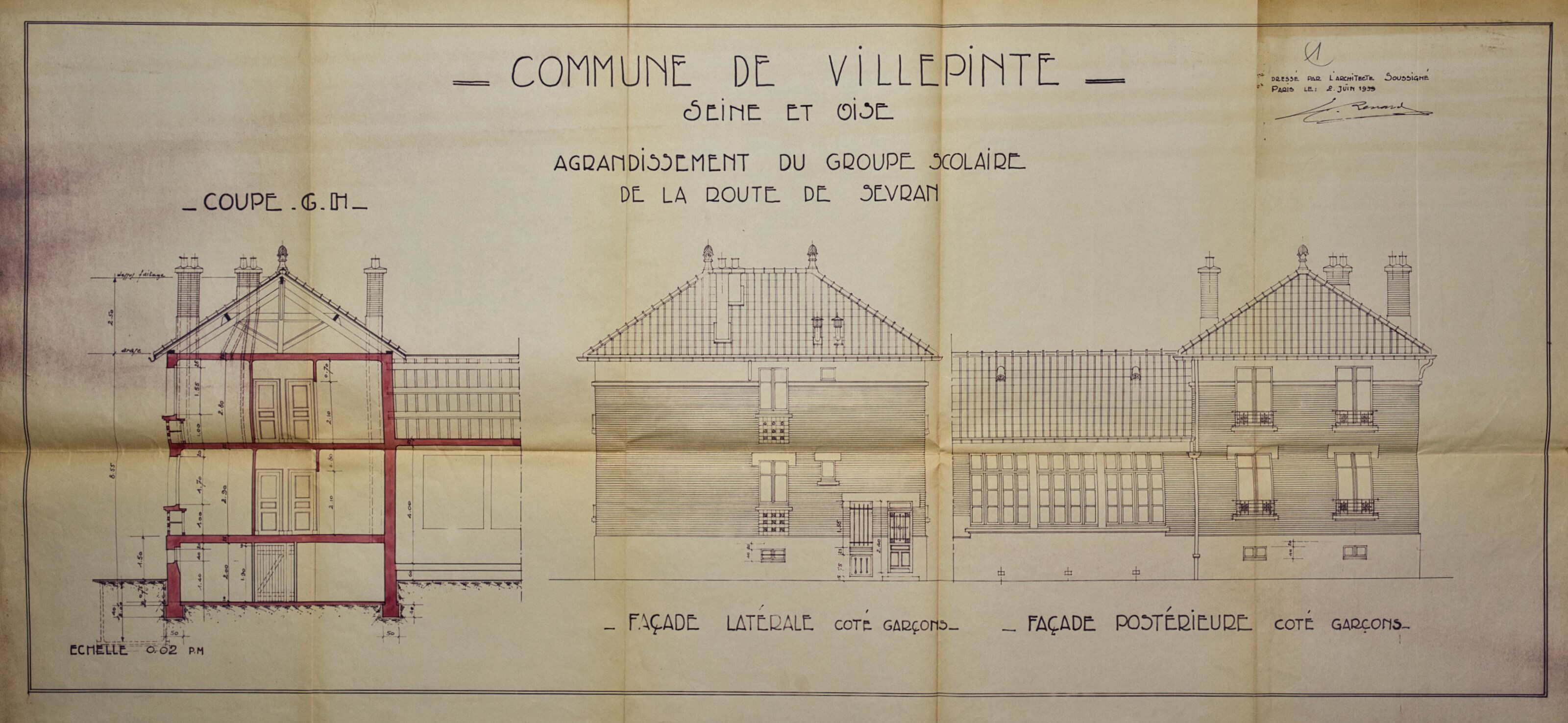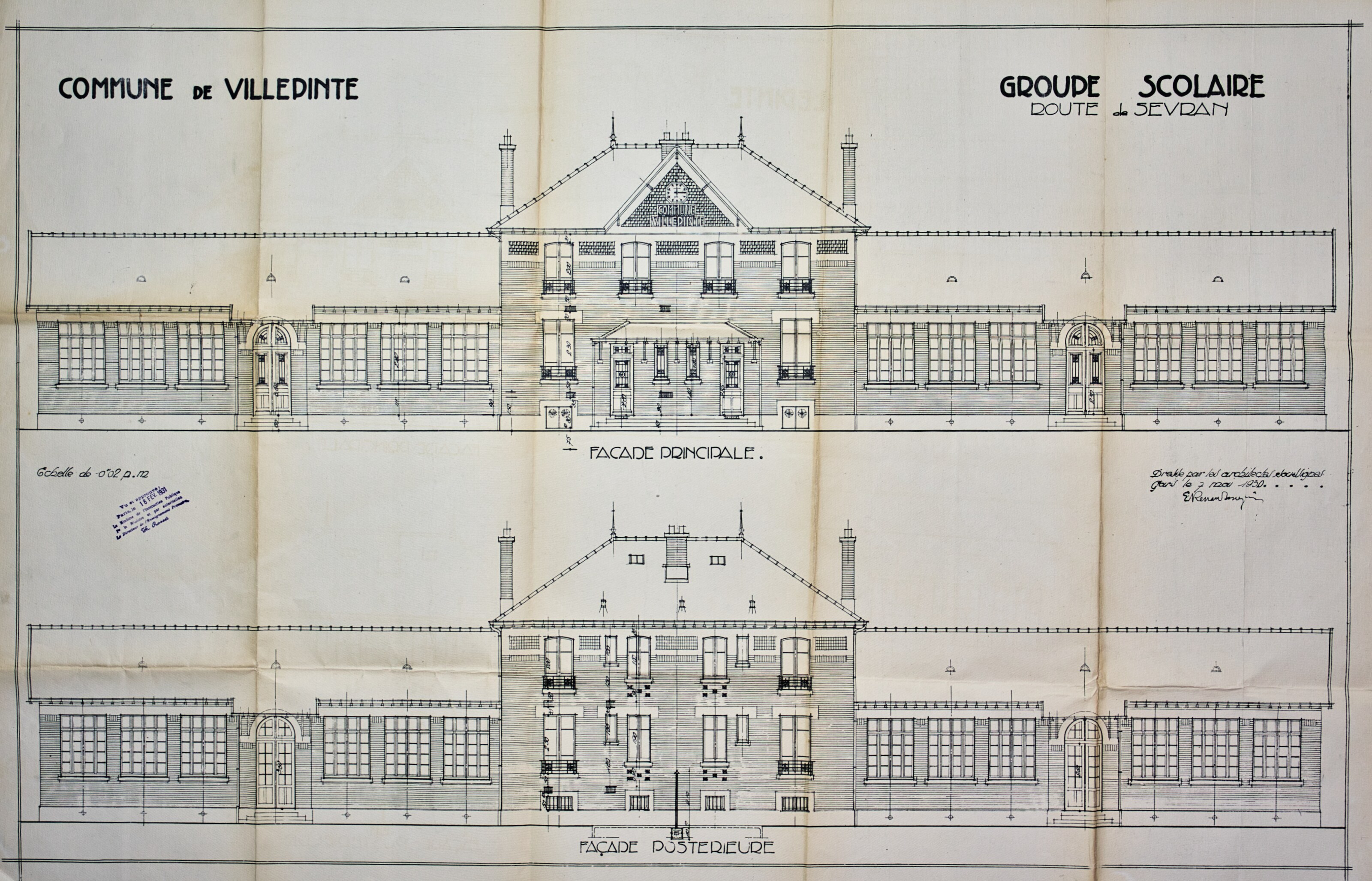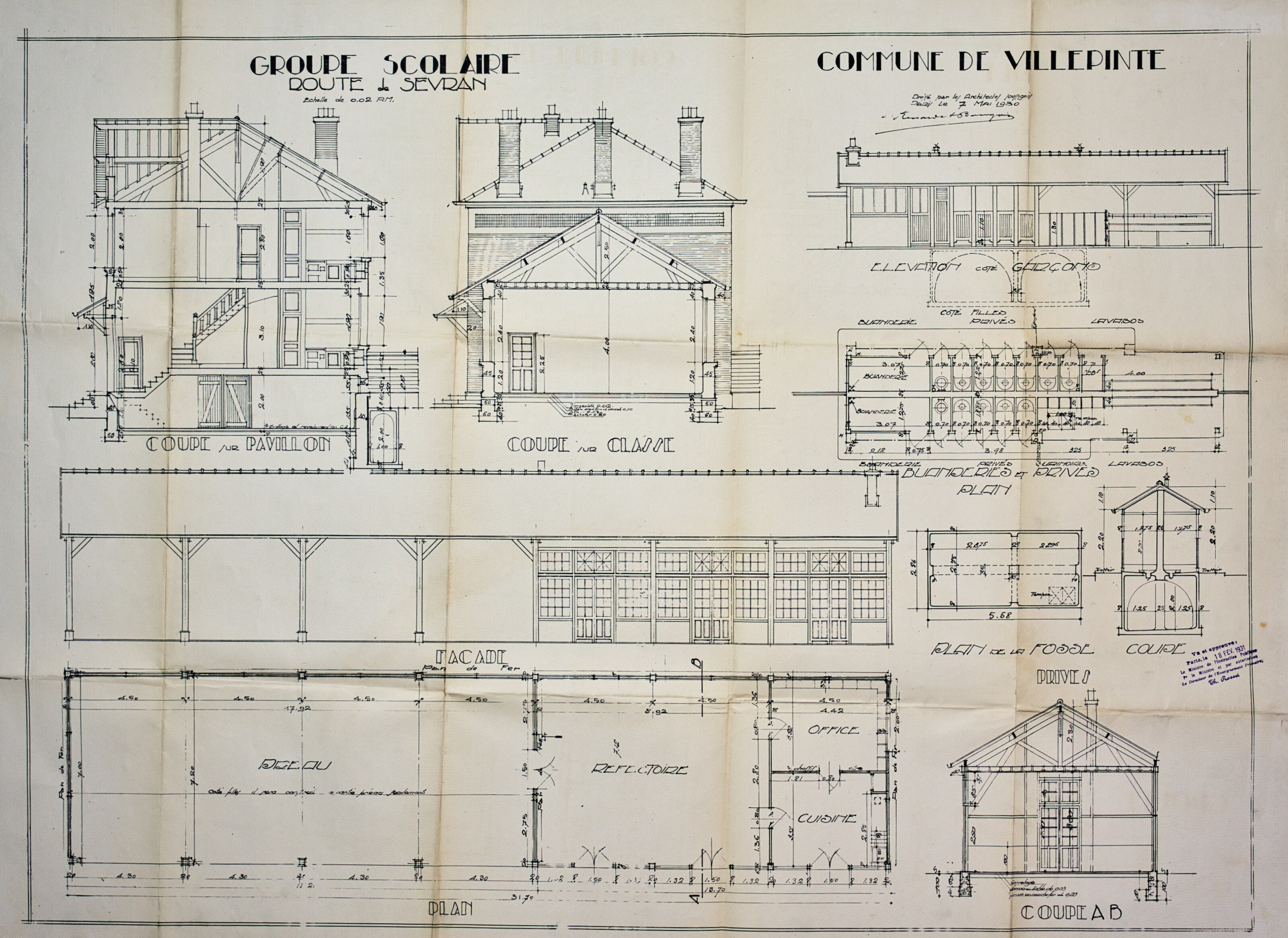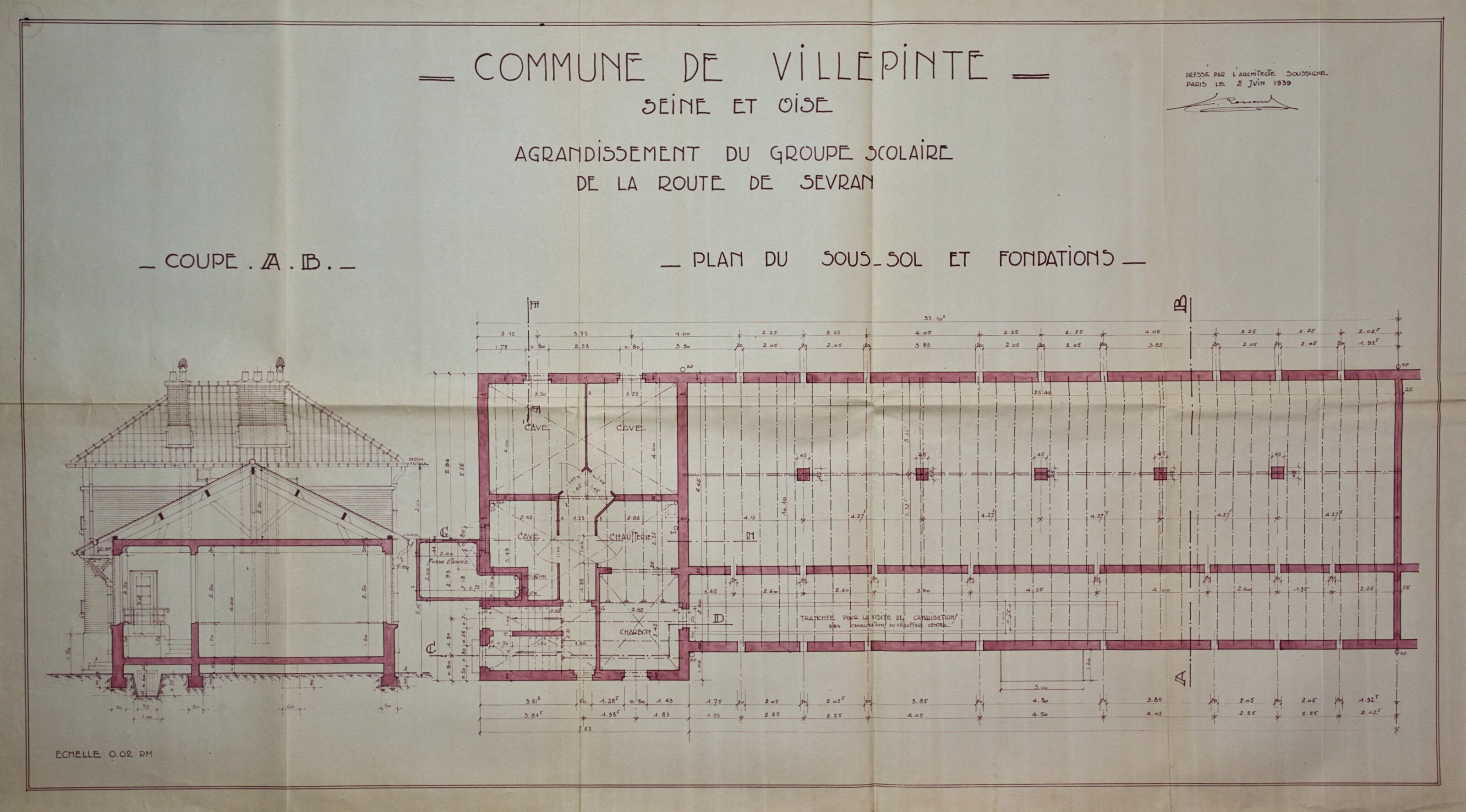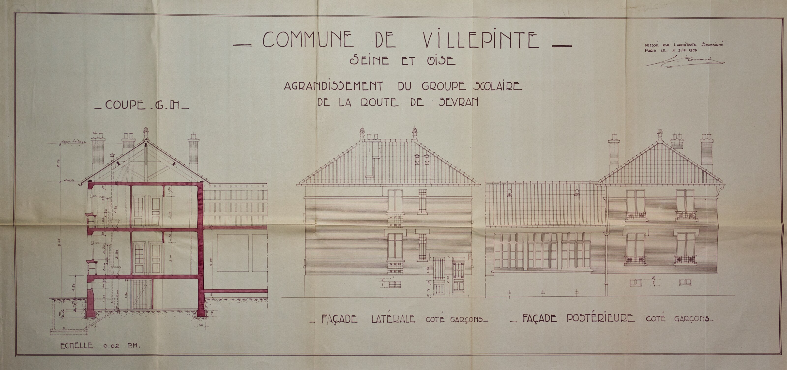 Plans de l'École du Centre Plan du projet d’un Groupe scolaire – 1925 Plan de la façade postérieure de l’avant-projet de l’École du Centre – 1926 Plan de l’élévation, de la coupe, du rez-de-chaussée et du 1er étage de l’avant-projet de l’École du Centre – 1926 Plan d’ensemble de l’École du Centre – 1930 Plan des façades de l’École du Centre – 1930 Plan de l'École du Centre - 1930 Plan d’une parcelle de terre destinée à la construction de l’École du Centre – 1930 Plan d’un terrain destiné à la construction de l’École du Centre – 1930 Plan des terrains a exproprier pour la construction de l’École du Centre – 1930 Plan d’un terrain destiné à la construction de l’École du Centre – 1930 Plan du projet d’agrandissement de l’École du Centre – Annexe au bâtiment principal – 1935 Plan du projet d’agrandissement de l’École du Centre – Préau – 1935 Plan du projet d’agrandissement de l’École du Centre – Aménagement d’un bureau dans le vestibule d’entrée – 1935 Plan de l’agrandissement de l’École du Centre – 1938 Plan de l’agrandissement de l’École du Centre – 1938 Plan de la buanderie et des privés de l’École du Centre – 1938 Plan du Préau de l’École du Centre – 1938 Plan du Réfectoire, de la Cuisine et de l’Office de l’École du Centre – 1938 Plan d’ensemble de l’agrandissement de l’École du Centre – 1939 Plan d’ensemble de l’agrandissement de l’École du Centre – 1939 Plan d’ensemble de l’agrandissement de l’École du Centre – 1939 Plan des façades latérale et postérieure côté garçon de l’agrandissement l’École du Centre – 1939 Plan des façades latérale et postérieure côté garçon de l’agrandissement l’École du Centre – 1939 Plan du rez-de-chaussée et de l’étage de l’agrandissement l’École du Centre – 1939 Plan du sous-sol et des fondations de l’agrandissement l’École du Centre – 1939 Plan de l’agrandissement de l’École du Centre – 1939 Plan du Terrain d’Entrainement et de Jeux Scolaires de l’École du Centre – 1941 Plan du Terrain de sport de l’École du Centre – 1941 Next