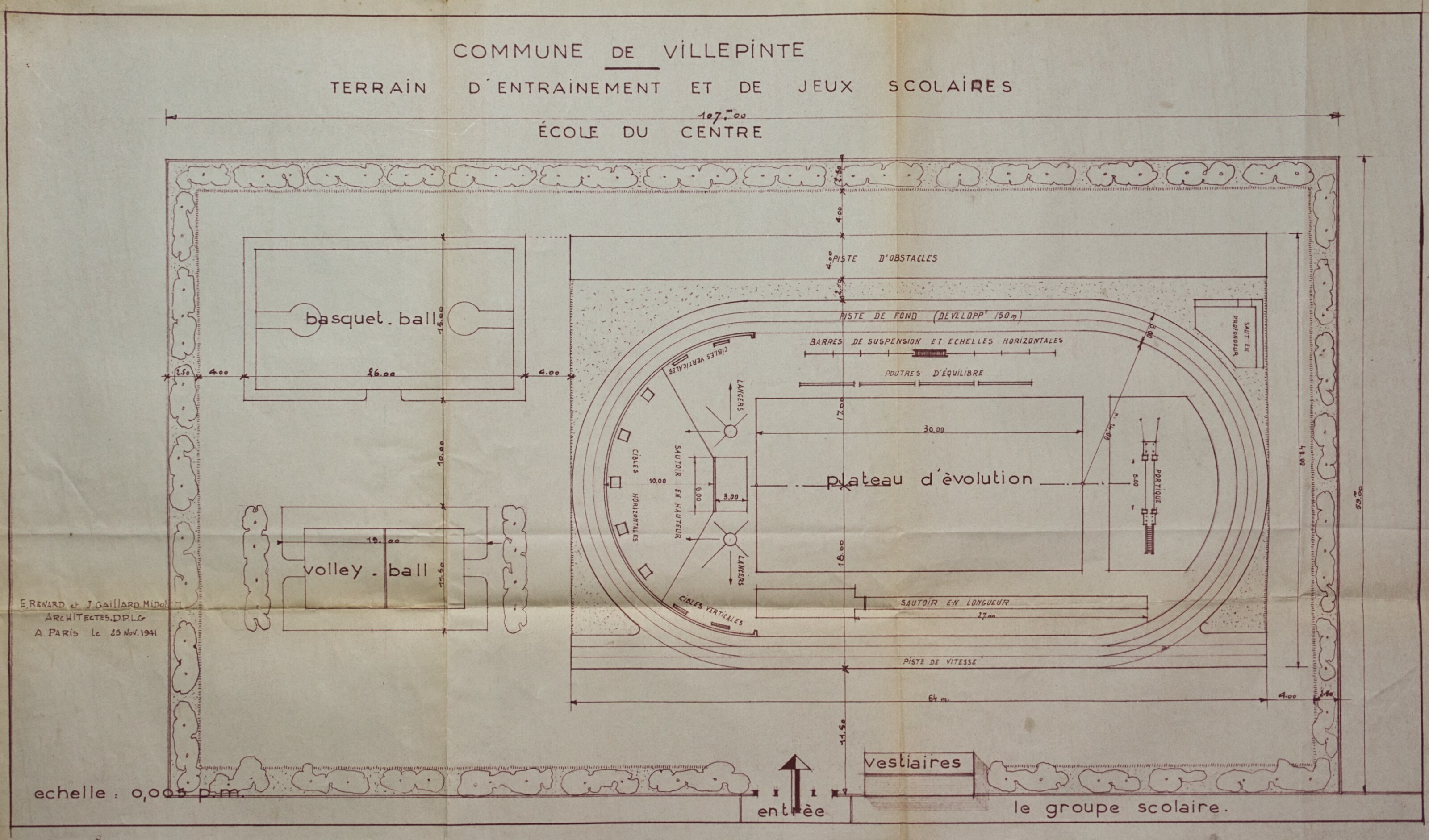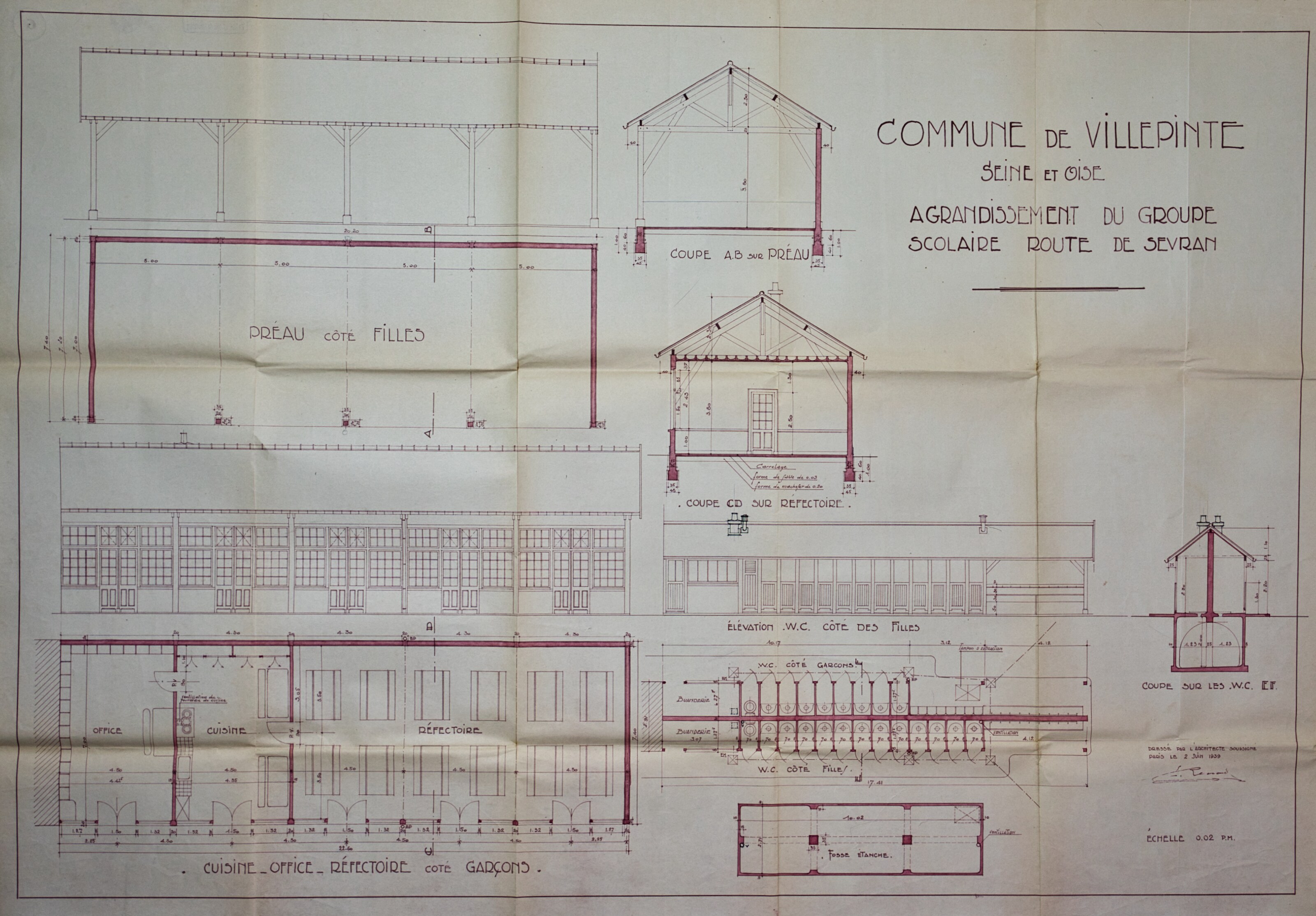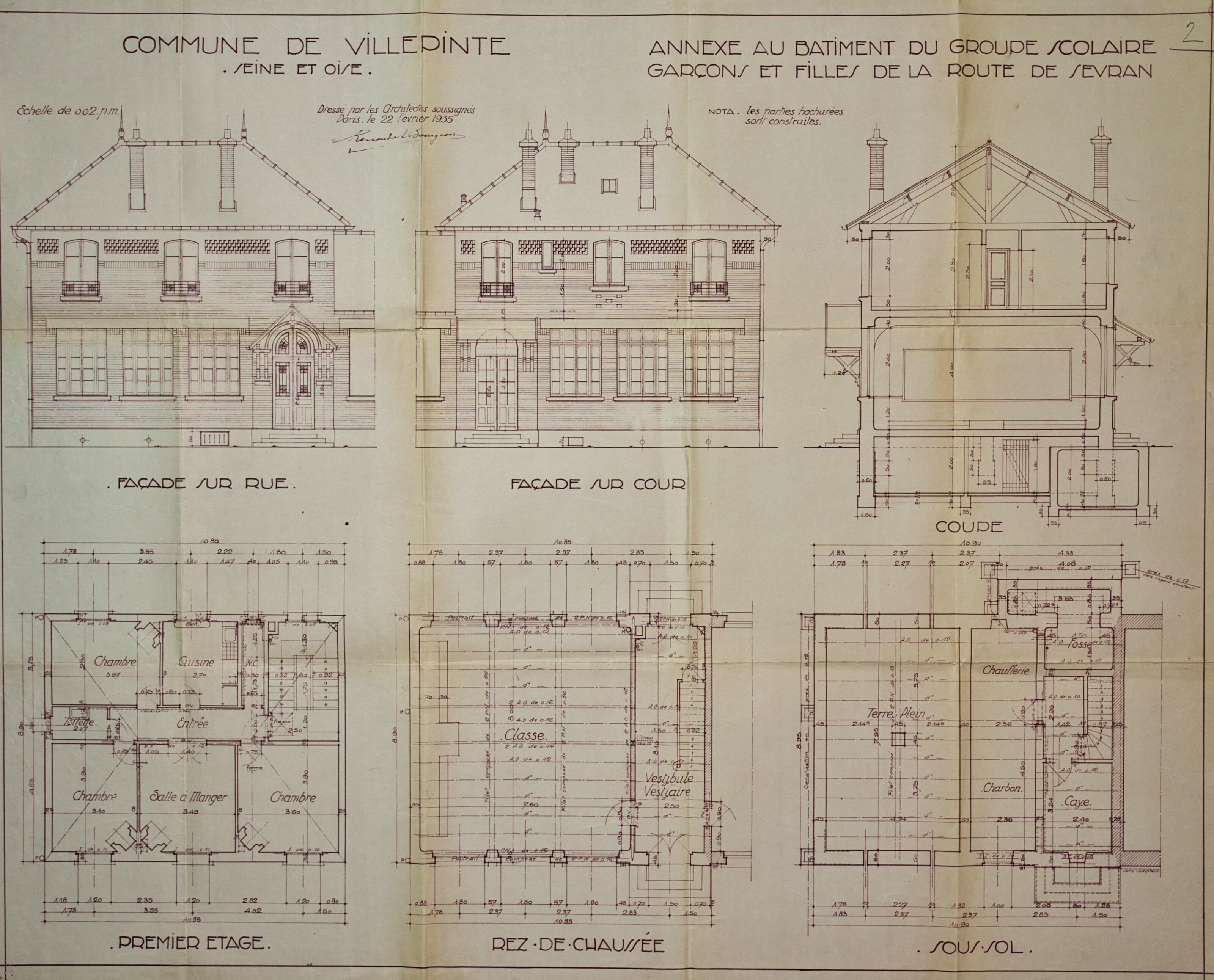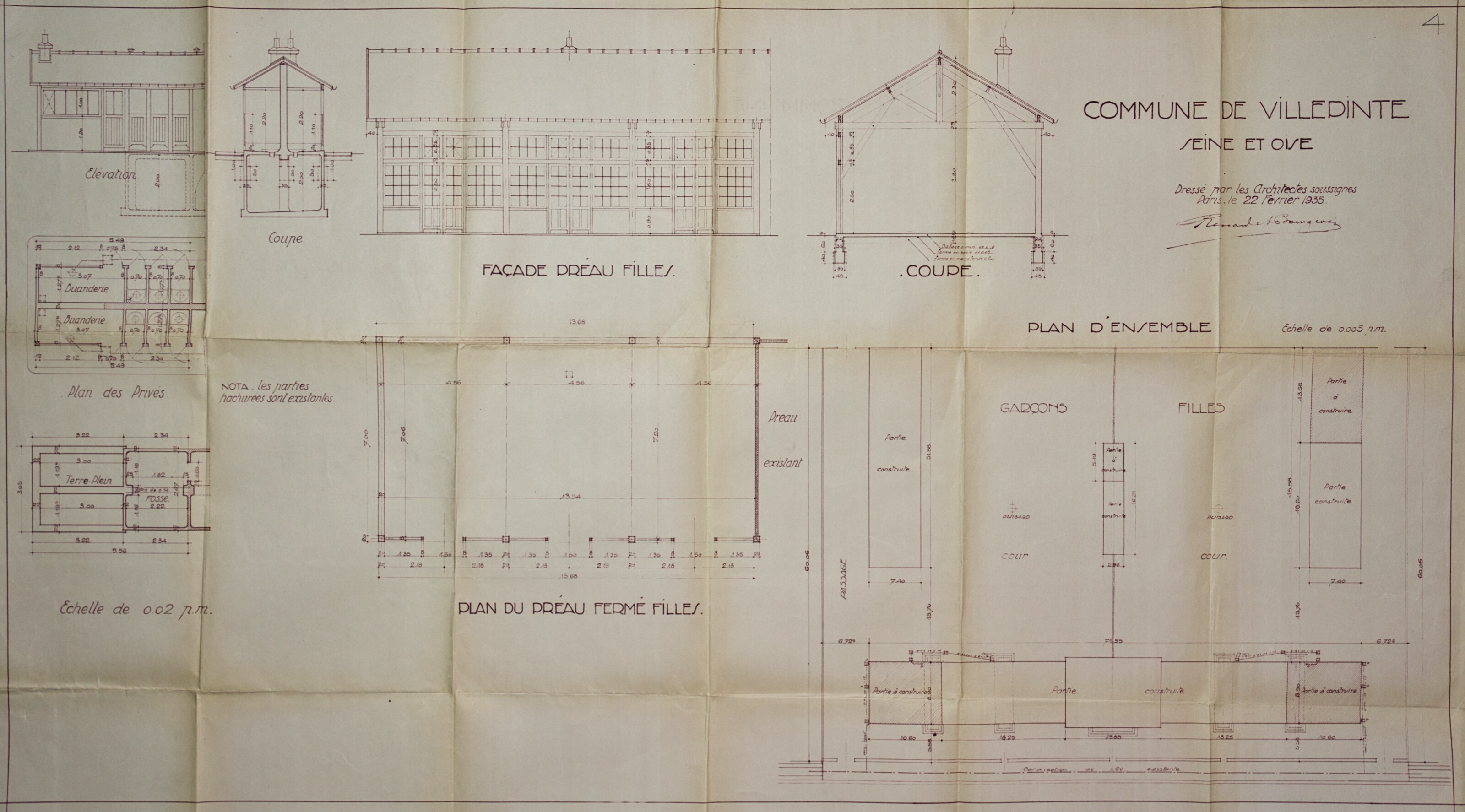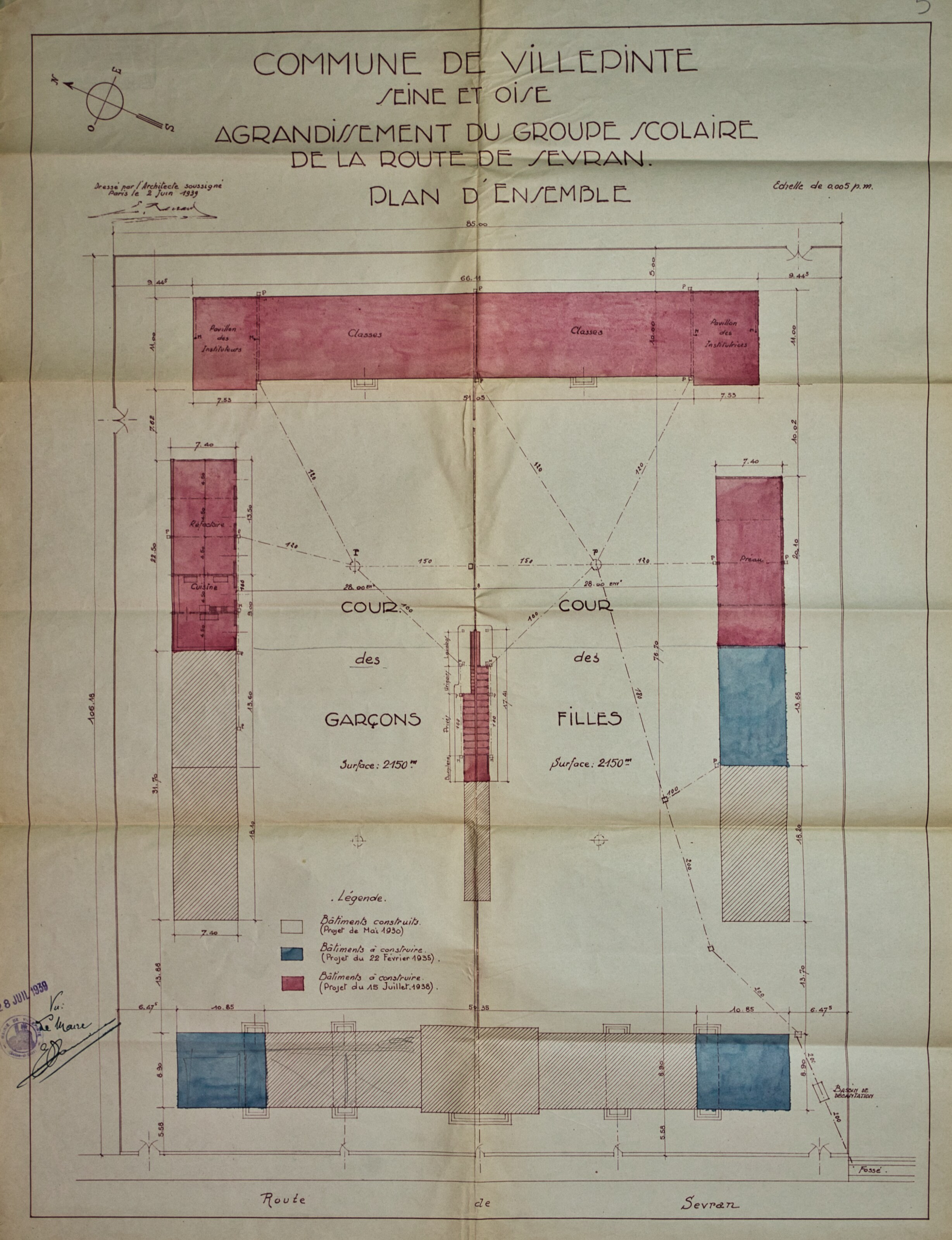 Plans de l'École du Centre Plan du projet d’un Groupe scolaire – 1925 Plan de la façade postérieure de l’avant-projet de l’École du Centre – 1926 Plan de l’élévation, de la coupe, du rez-de-chaussée et du 1er étage de l’avant-projet de l’École du Centre – 1926 Plan d’ensemble de l’École du Centre – 1930 Plan des façades de l’École du Centre – 1930 Plan de l'École du Centre - 1930 Plan d’une parcelle de terre destinée à la construction de l’École du Centre – 1930 Plan d’un terrain destiné à la construction de l’École du Centre – 1930 Plan des terrains a exproprier pour la construction de l’École du Centre – 1930 Plan d’un terrain destiné à la construction de l’École du Centre – 1930 Plan du projet d’agrandissement de l’École du Centre – Annexe au bâtiment principal – 1935 Plan du projet d’agrandissement de l’École du Centre – Préau – 1935 Plan du projet d’agrandissement de l’École du Centre – Aménagement d’un bureau dans le vestibule d’entrée – 1935 Plan de l’agrandissement de l’École du Centre – 1938 Plan de l’agrandissement de l’École du Centre – 1938 Plan de la buanderie et des privés de l’École du Centre – 1938 Plan du Préau de l’École du Centre – 1938 Plan du Réfectoire, de la Cuisine et de l’Office de l’École du Centre – 1938 Plan d’ensemble de l’agrandissement de l’École du Centre – 1939 Plan d’ensemble de l’agrandissement de l’École du Centre – 1939 Plan d’ensemble de l’agrandissement de l’École du Centre – 1939 Plan des façades latérale et postérieure côté garçon de l’agrandissement l’École du Centre – 1939 Plan des façades latérale et postérieure côté garçon de l’agrandissement l’École du Centre – 1939 Plan du rez-de-chaussée et de l’étage de l’agrandissement l’École du Centre – 1939 Plan du sous-sol et des fondations de l’agrandissement l’École du Centre – 1939 Plan de l’agrandissement de l’École du Centre – 1939 Plan du Terrain d’Entrainement et de Jeux Scolaires de l’École du Centre – 1941 Plan du Terrain de sport de l’École du Centre – 1941 Next
