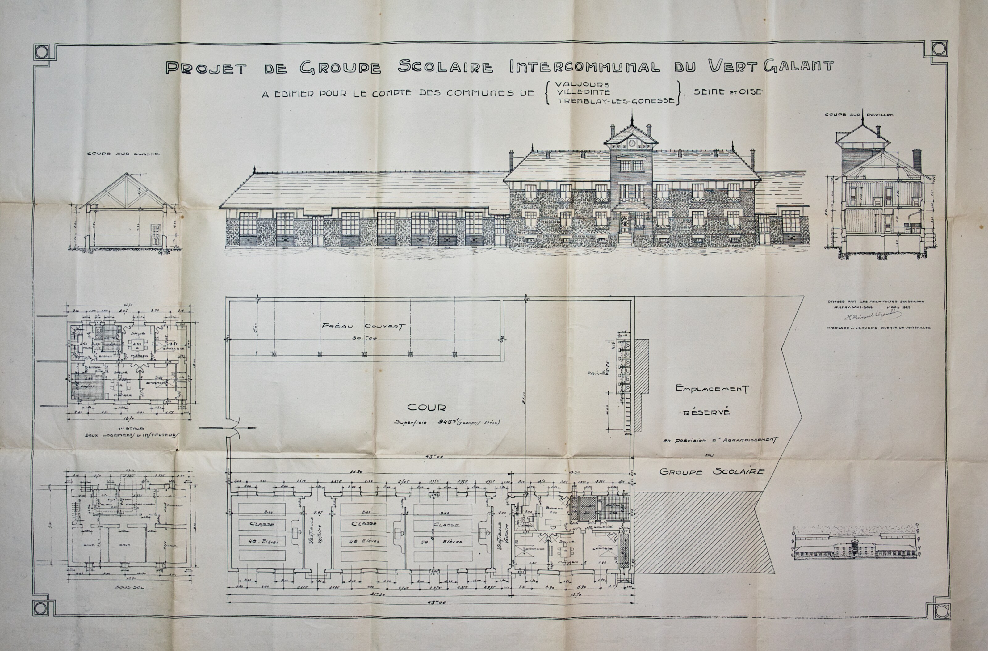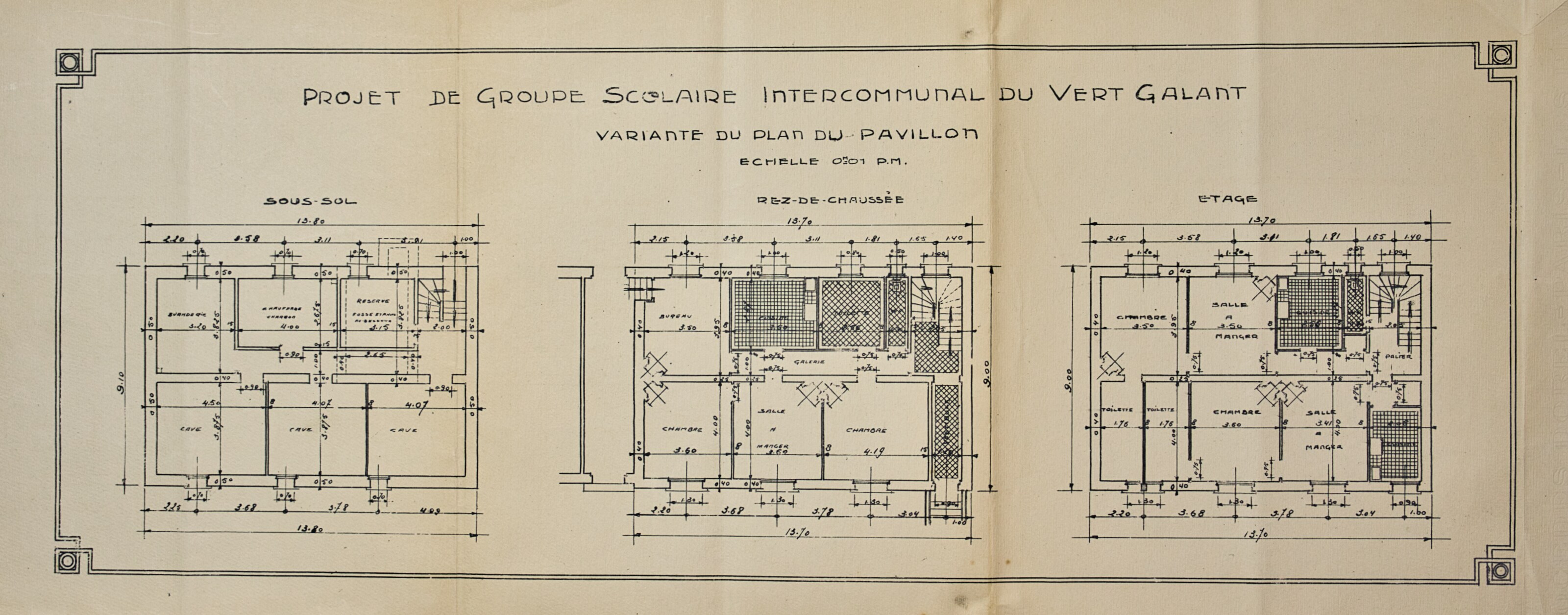 Plans du projet de Groupe Scolaire Intercommunal du Vert-Galant 1925 Plan du projet de Groupe Scolaire Intercommunal du Vert-Galant - Vaujours, Villepinte, Tremblay - 1925 Variante du plan du Pavillon du projet de Groupe Scolaire Intercommunal du Vert-Galant - Vaujours, Villepinte, Tremblay - 1925 Next