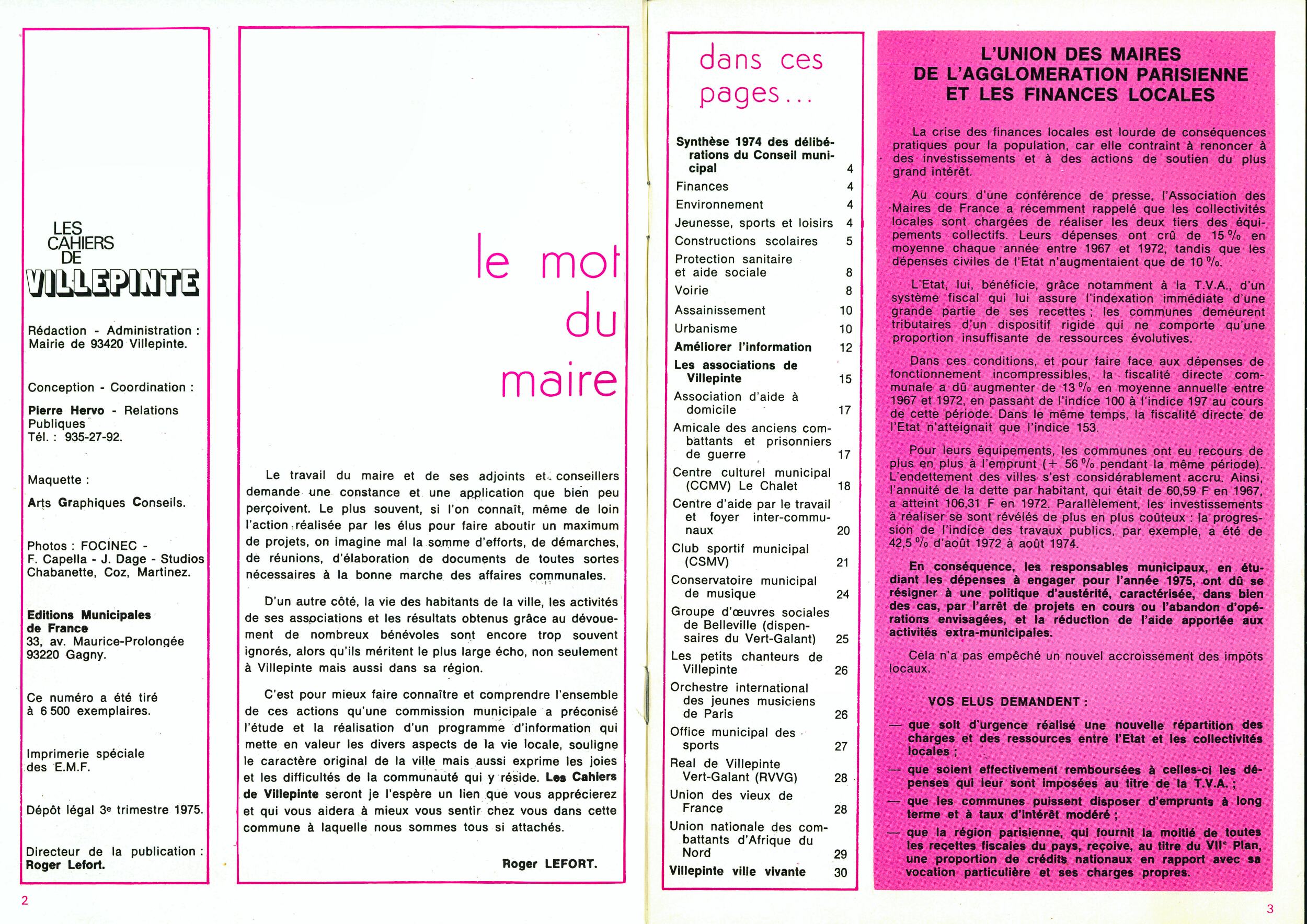 LES CHAHIERS DE VILLEPINTE N°1 - 3e trimestre 1975 LES CHAHIERS DE VILLEPINTE N°1 - 3e trimestre 1975