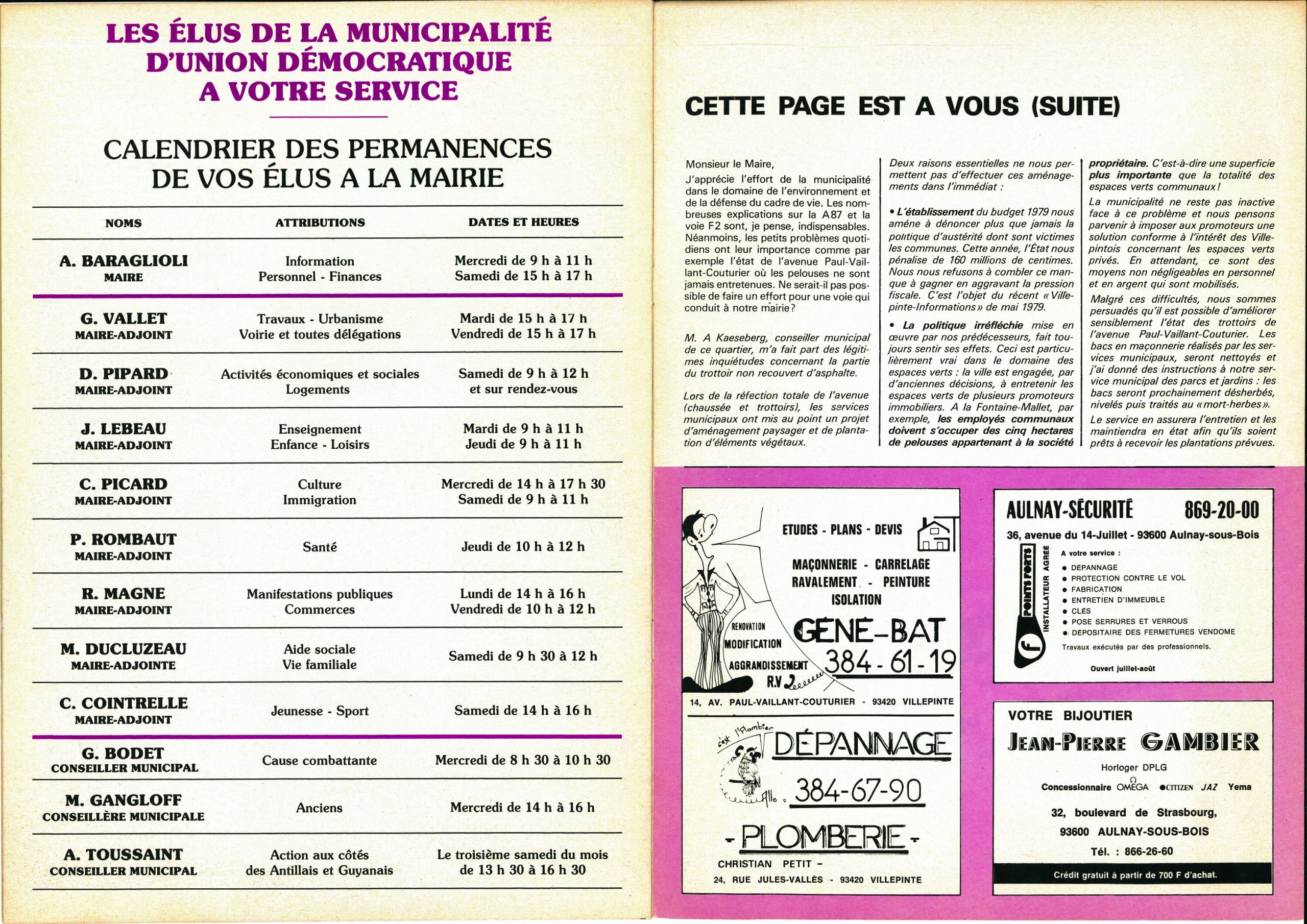BULLETIN OFFICIEL D'INFORMATION MUNICIPALE Villepinte Informations N°10 - Juin 1979 BULLETIN OFFICIEL D'INFORMATION MUNICIPALE Villepinte Informations N°10 - Juin 1979