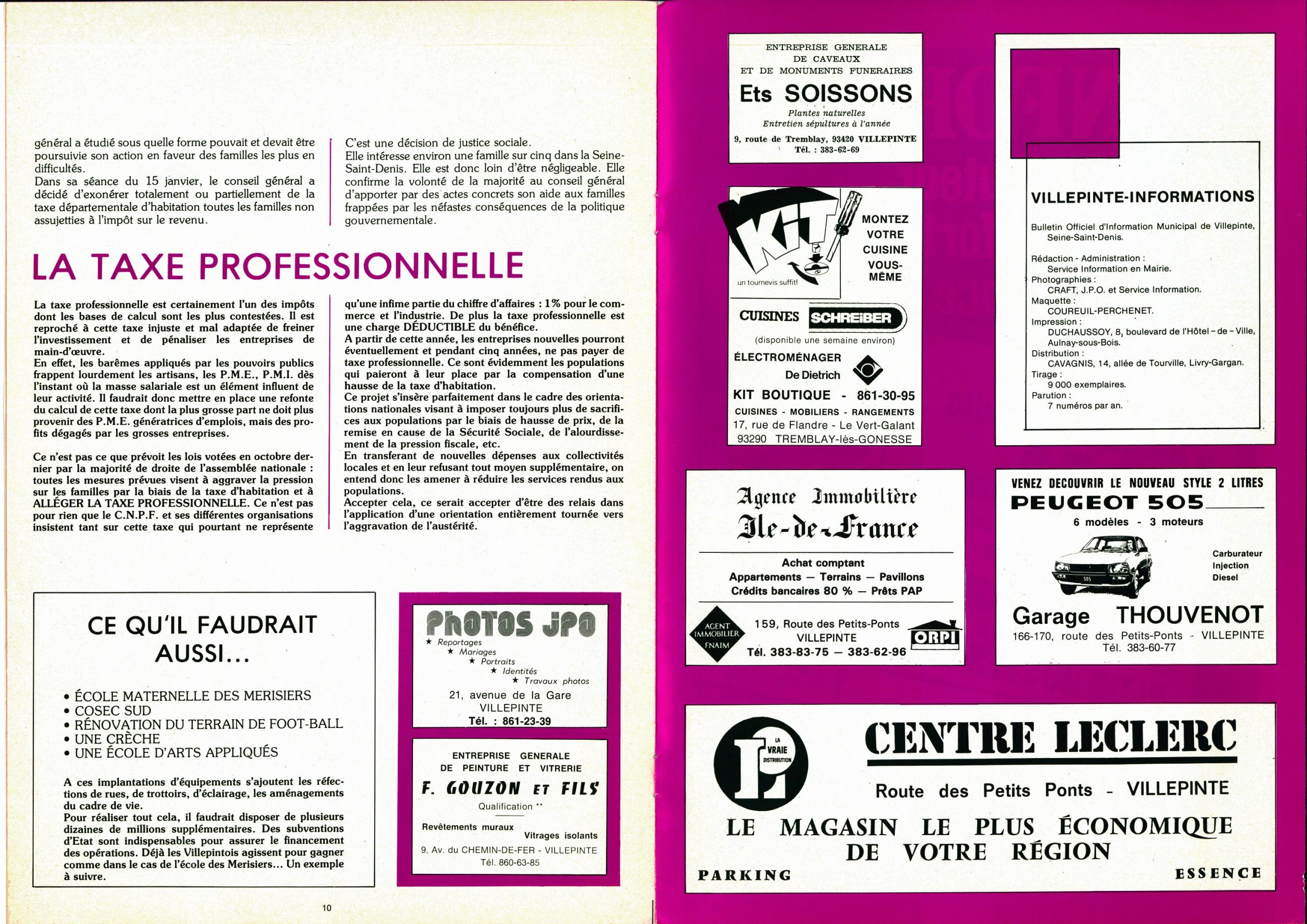BULLETIN OFFICIEL D'INFORMATION MUNICIPALE Villepinte Informations N°15 - Budget - Avril 1980 BULLETIN OFFICIEL D'INFORMATION MUNICIPALE Villepinte Informations N°15 - Budget - Avril 1980