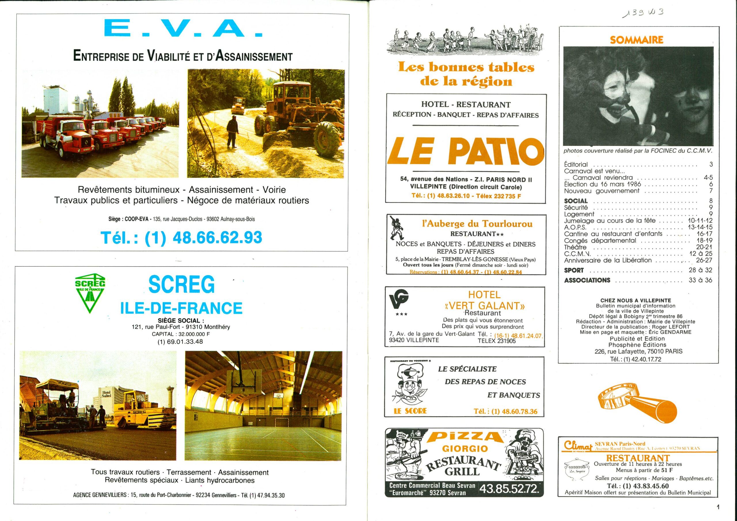 BULLETIN MUNICIPAL OFFICIEL Chez Nous à Villepinte N°9 - Juin 1986 BULLETIN MUNICIPAL OFFICIEL Chez Nous à Villepinte N°9 - Juin 1986