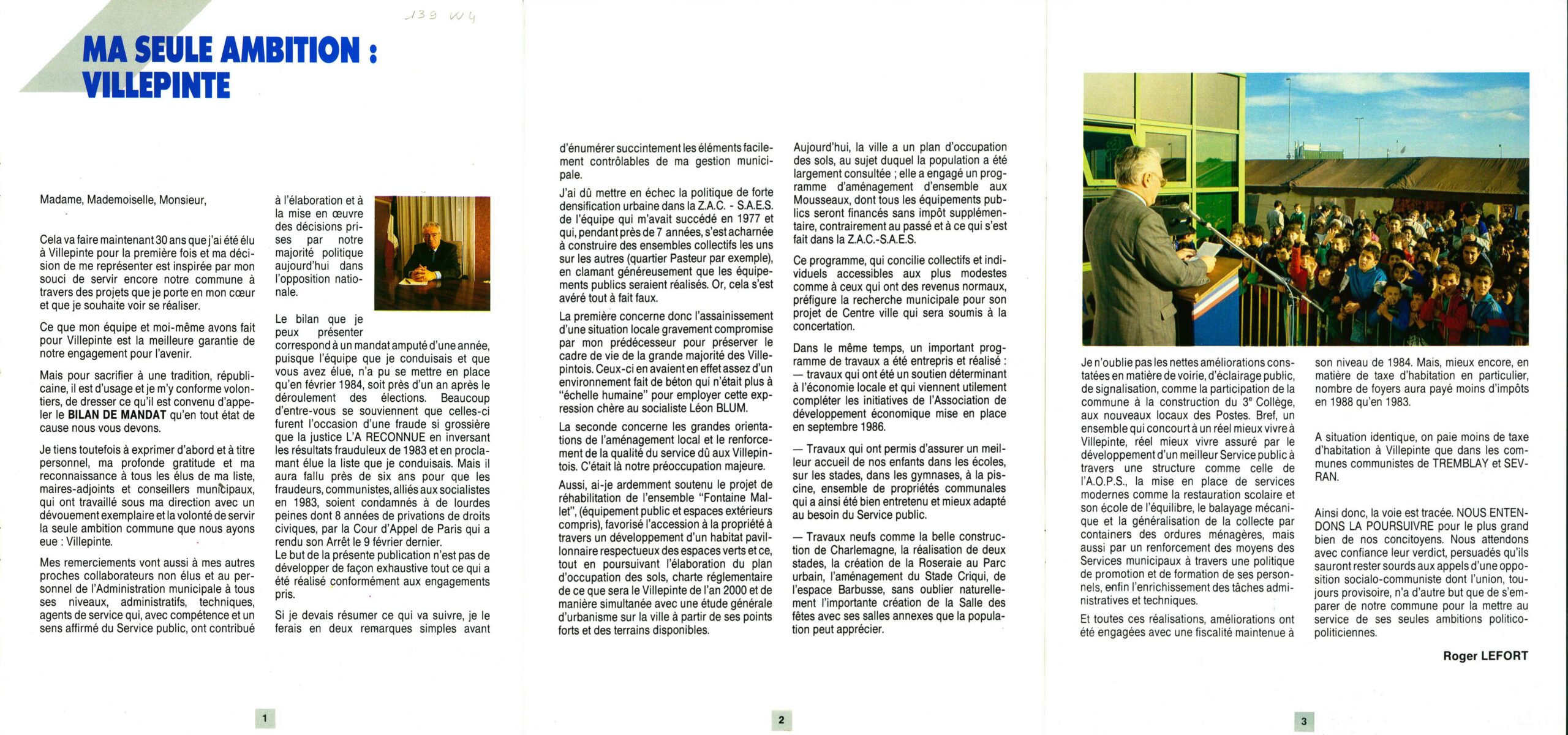 BULLETIN MUNICIPAL OFFICIEL Bilan de Mandature 1894 - 1989 BULLETIN MUNICIPAL OFFICIEL Bilan de Mandature 1984 - 1989