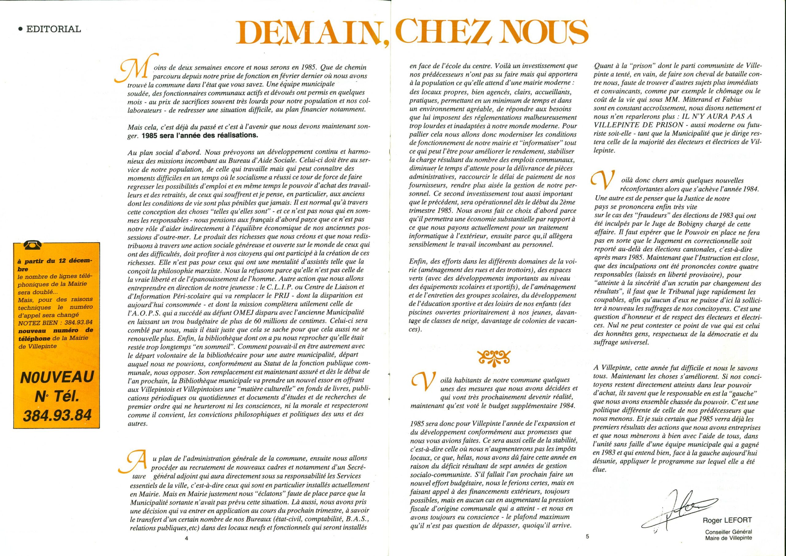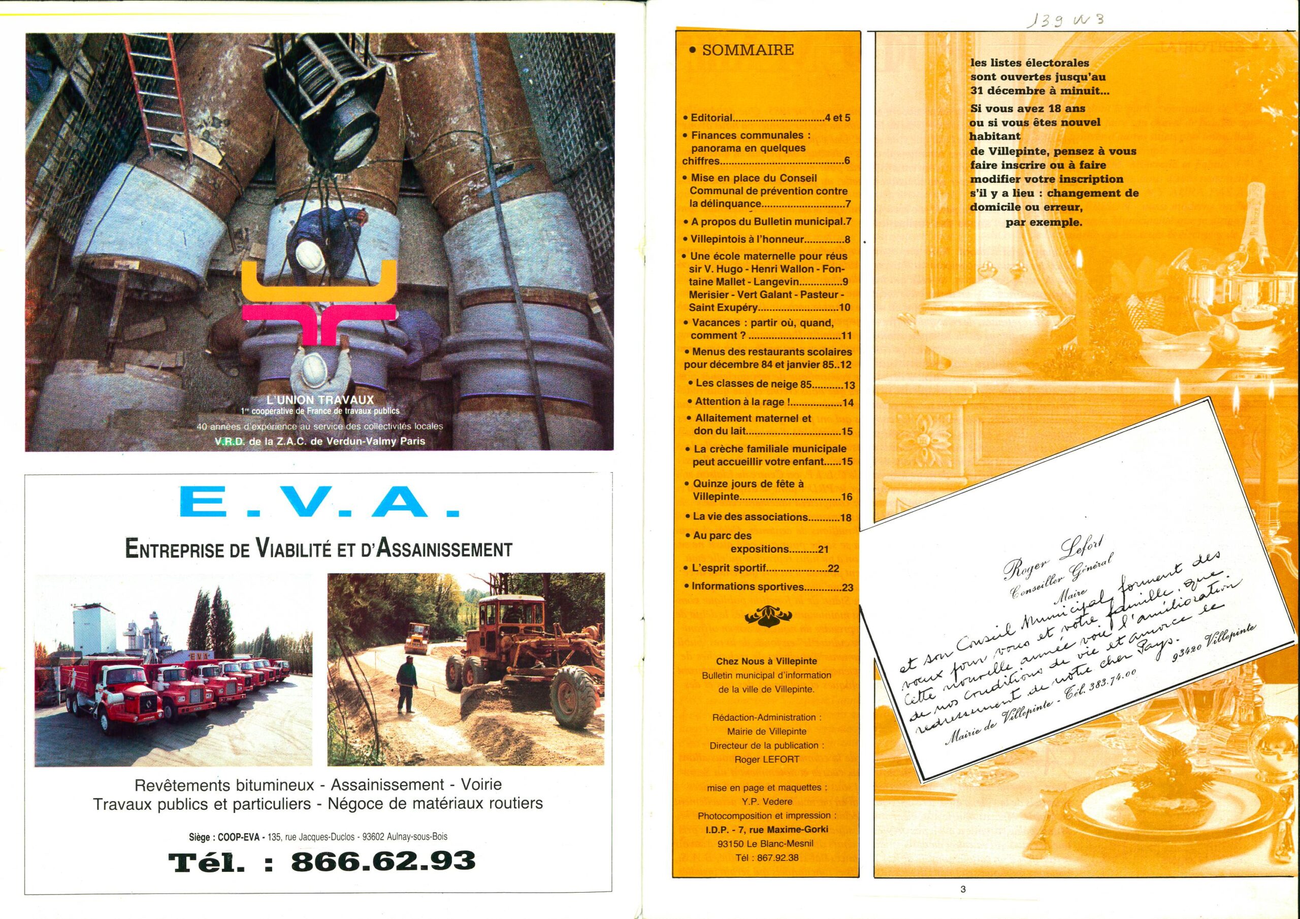 BULLETIN MUNICIPAL OFFICIEL Chez Nous à Villepinte N°3 - Septembre 1984 BULLETIN MUNICIPAL OFFICIEL Chez Nous à Villepinte N°3 - Décembre 1984