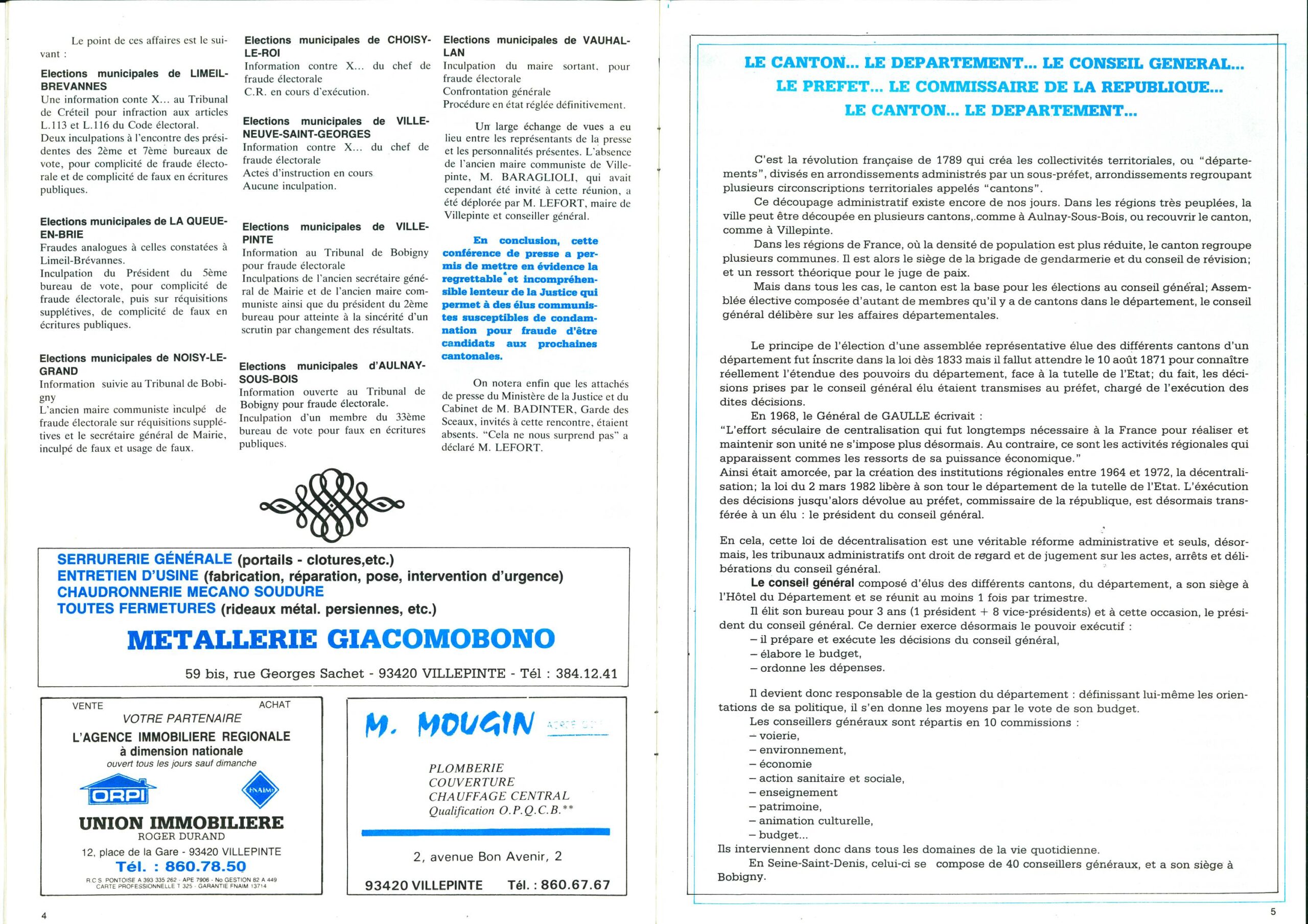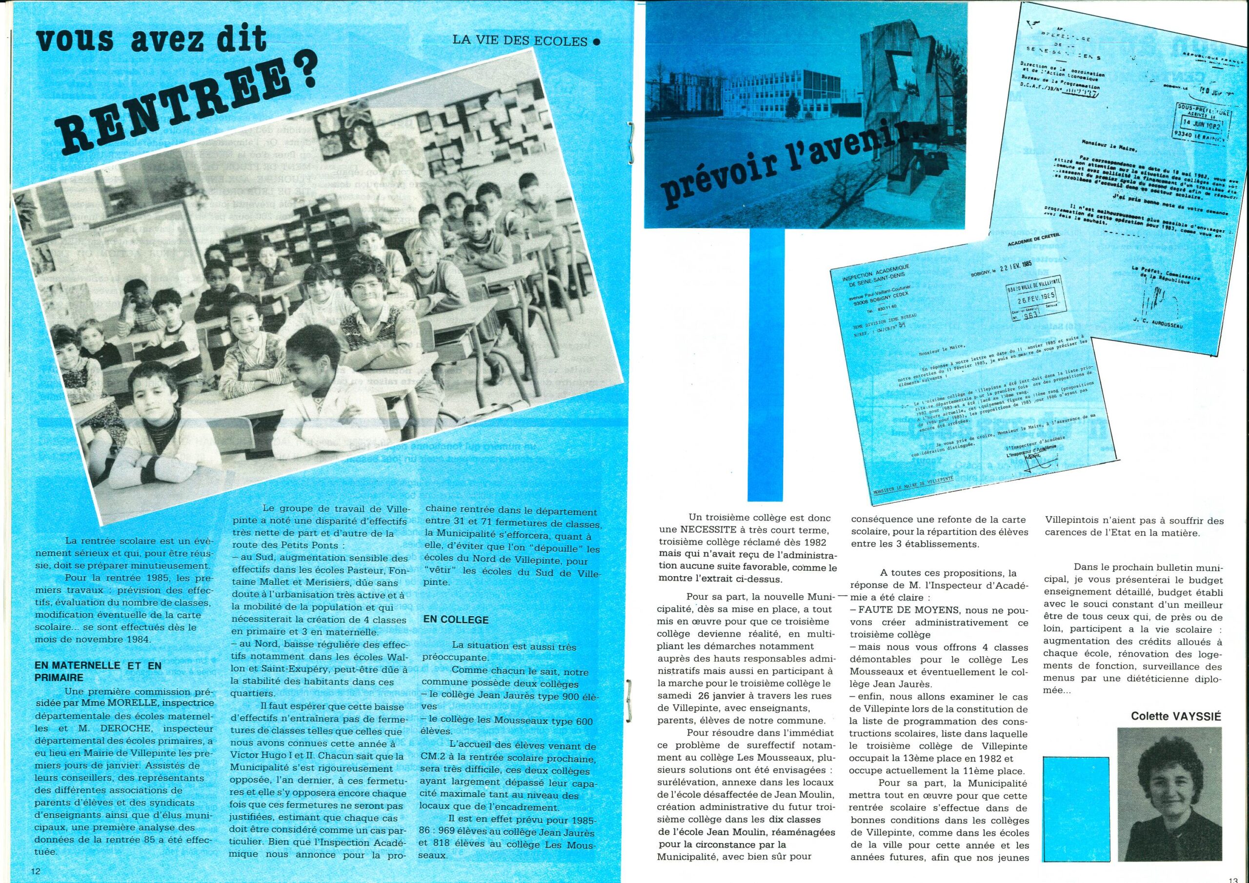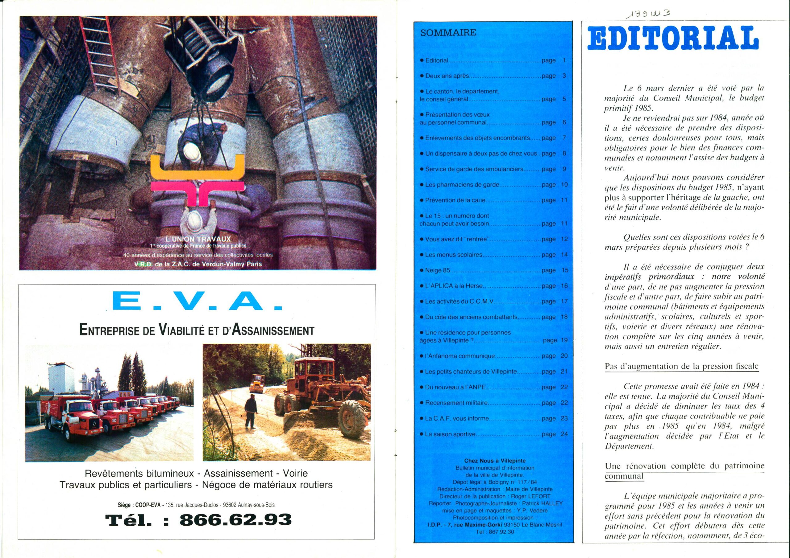 BULLETIN MUNICIPAL OFFICIEL Chez Nous à Villepinte N°4 - Mars 1985 BULLETIN MUNICIPAL OFFICIEL Chez Nous à Villepinte N°4 - Mars 1985
