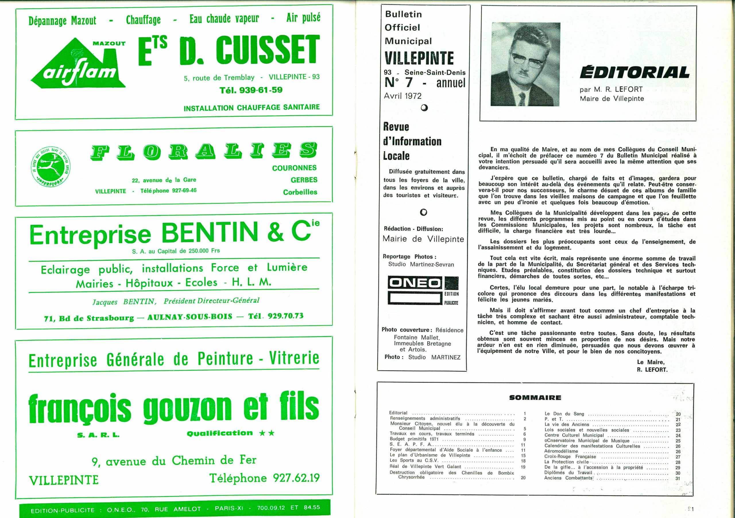 BULLETIN OFFICIEL MUNICIPAL Villepinte N°7 - Avril 1972 BULLETIN OFFICIEL MUNICIPAL Villepinte N°7 - Avril 1972