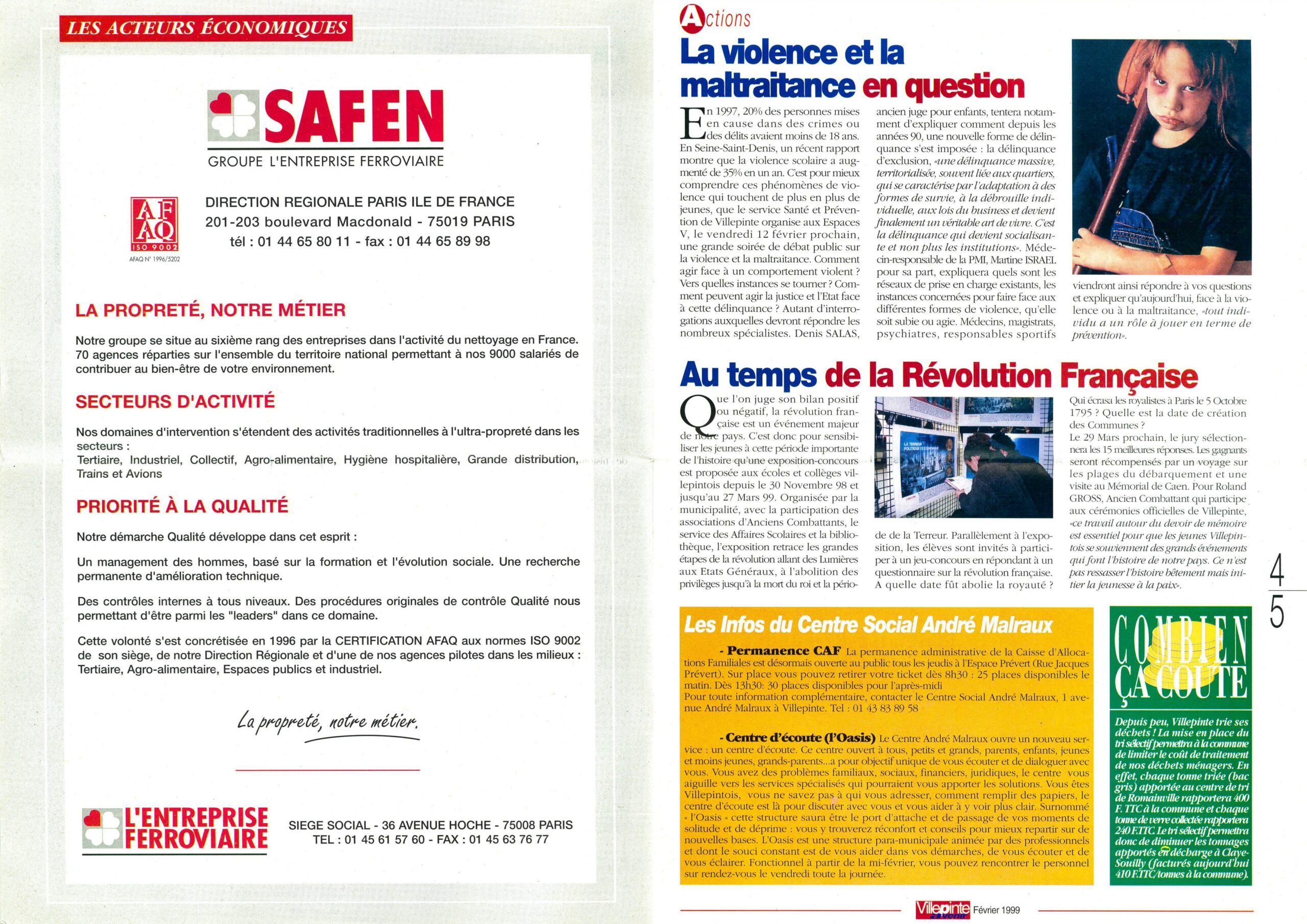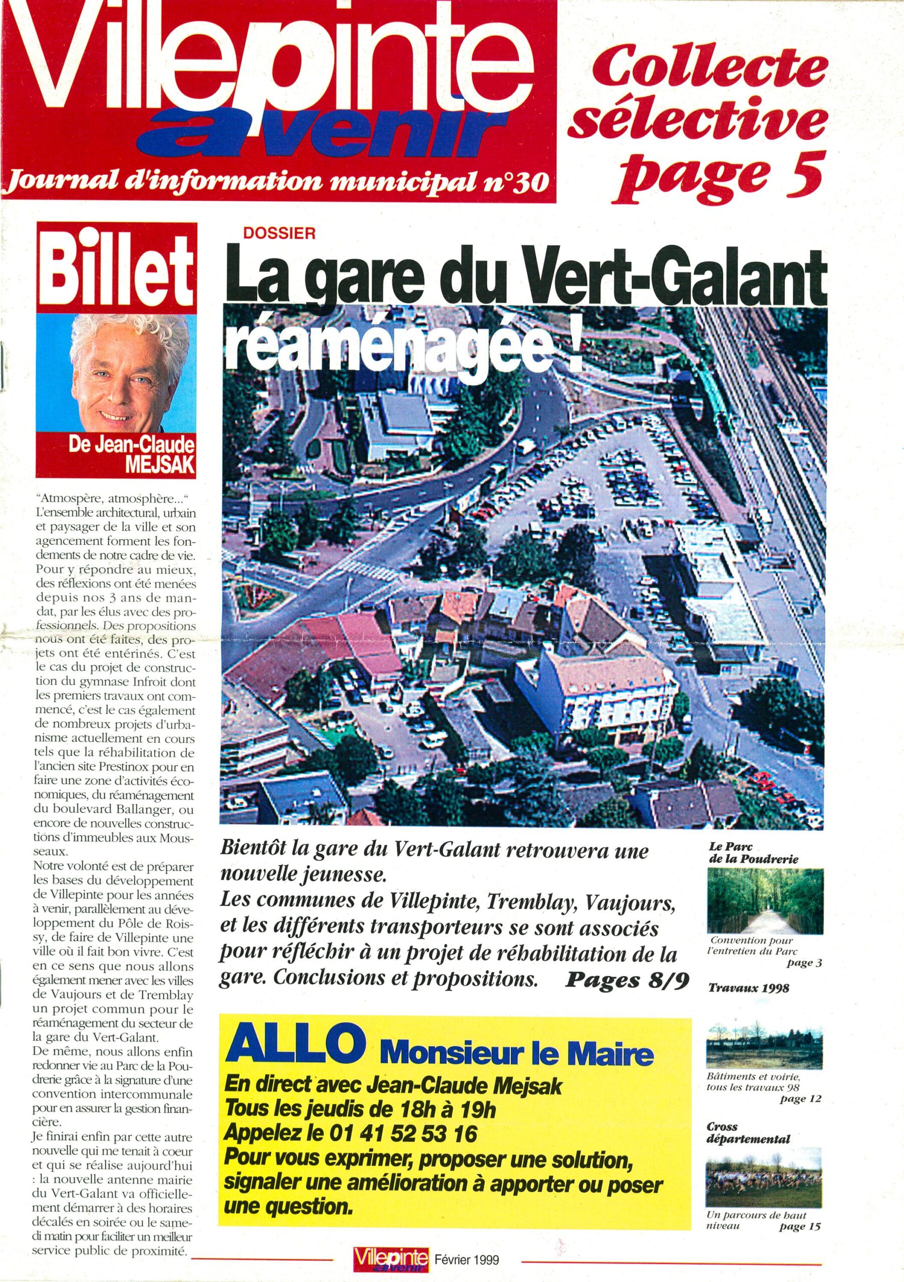 Journal d'Information Municipal Villepinte Avenir N°30 - Février 1999 Journal d'Information Municipal Villepinte Avenir N°30 - Février 1999