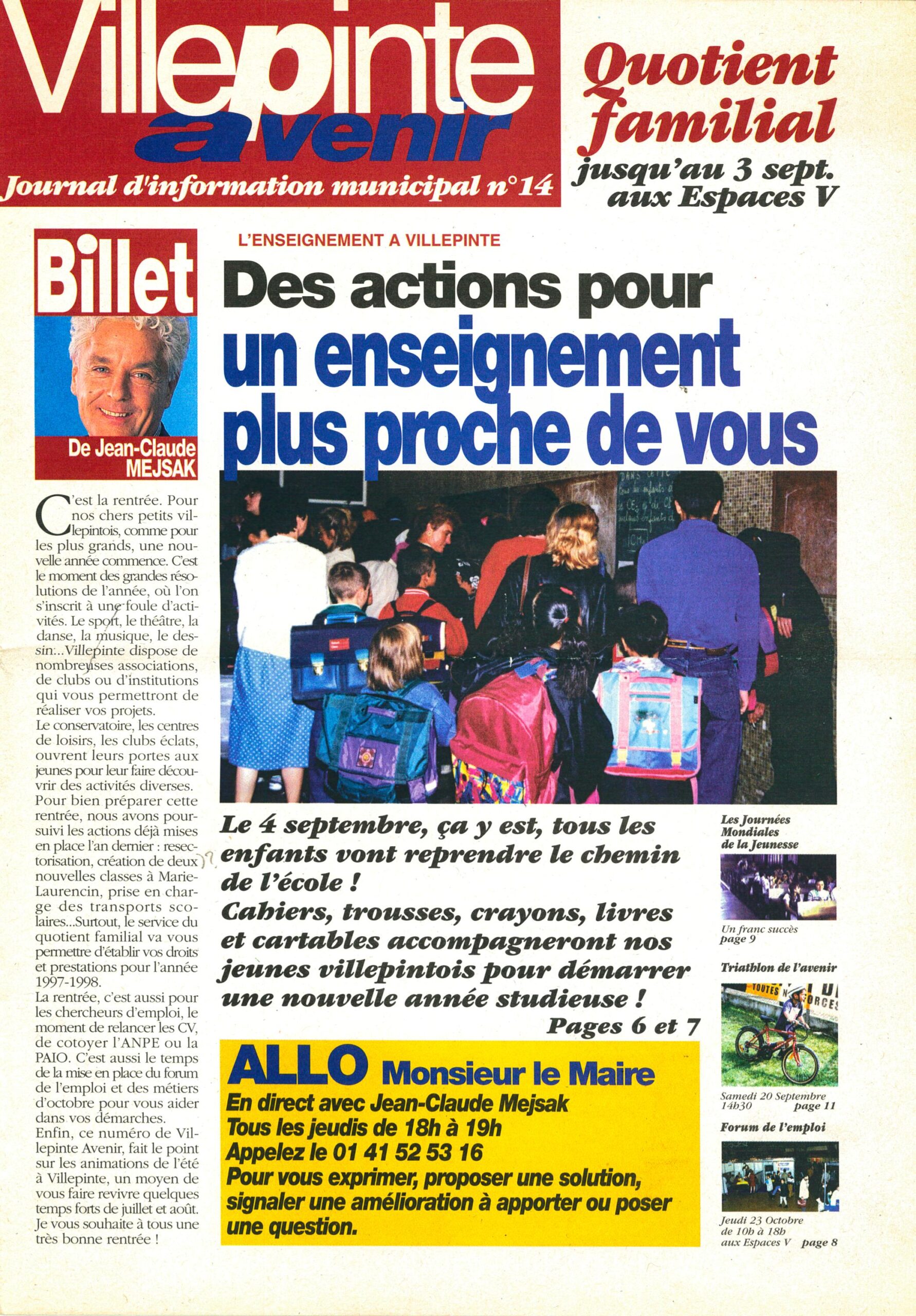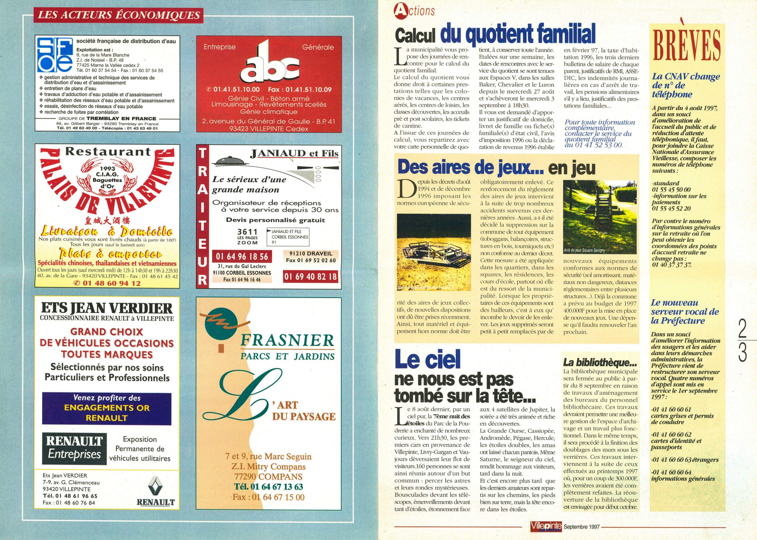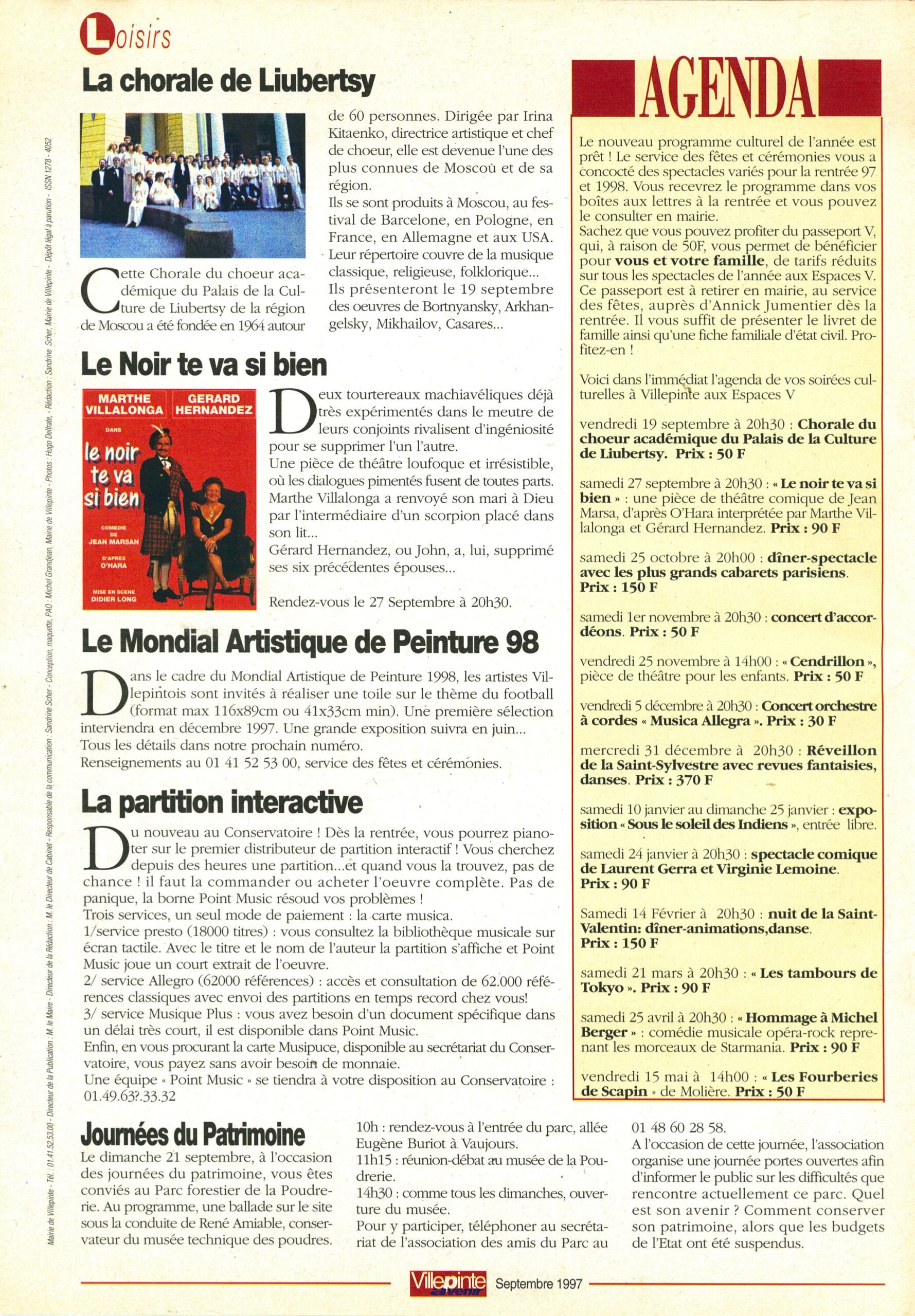 Journal d'Information Municipal Villepinte Avenir N°14 - Septembre 1997 Journal d'Information Municipal Villepinte Avenir N°14 - Septembre 1997
