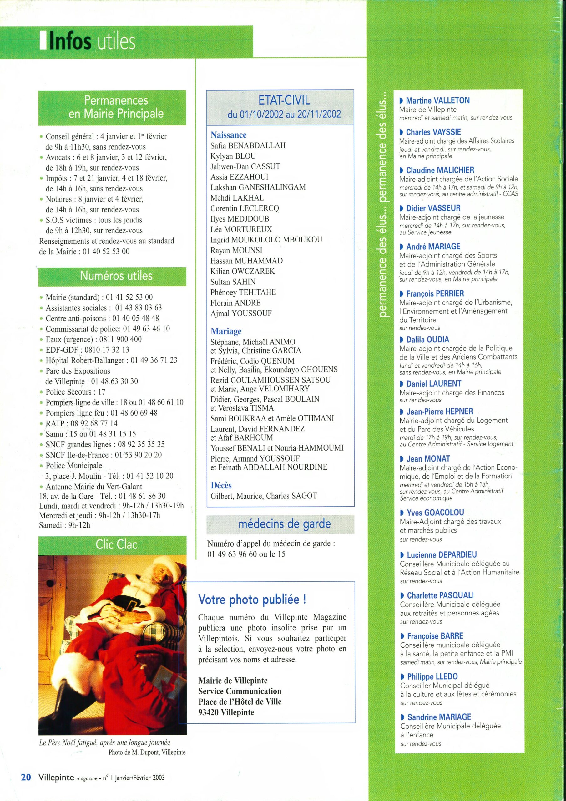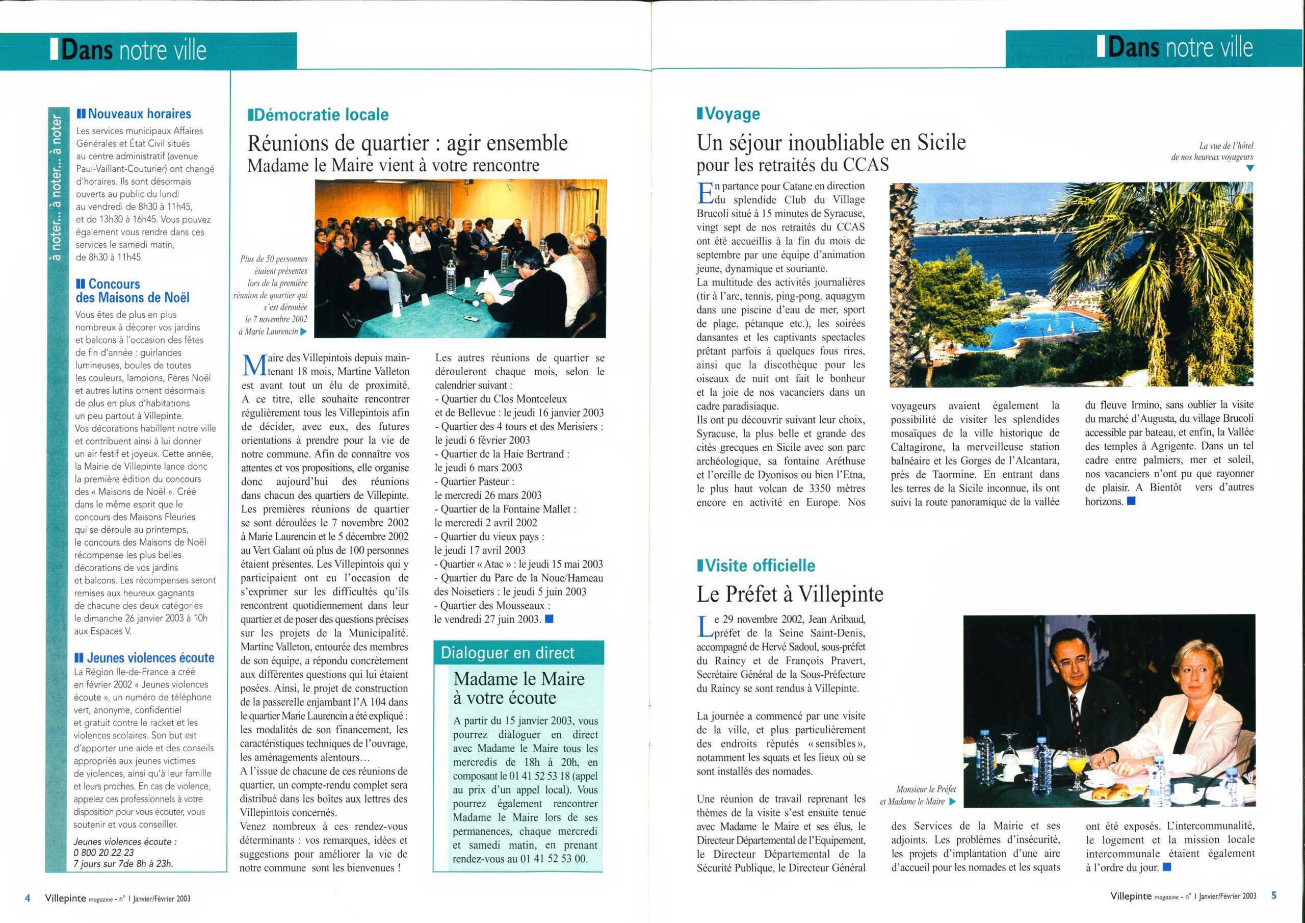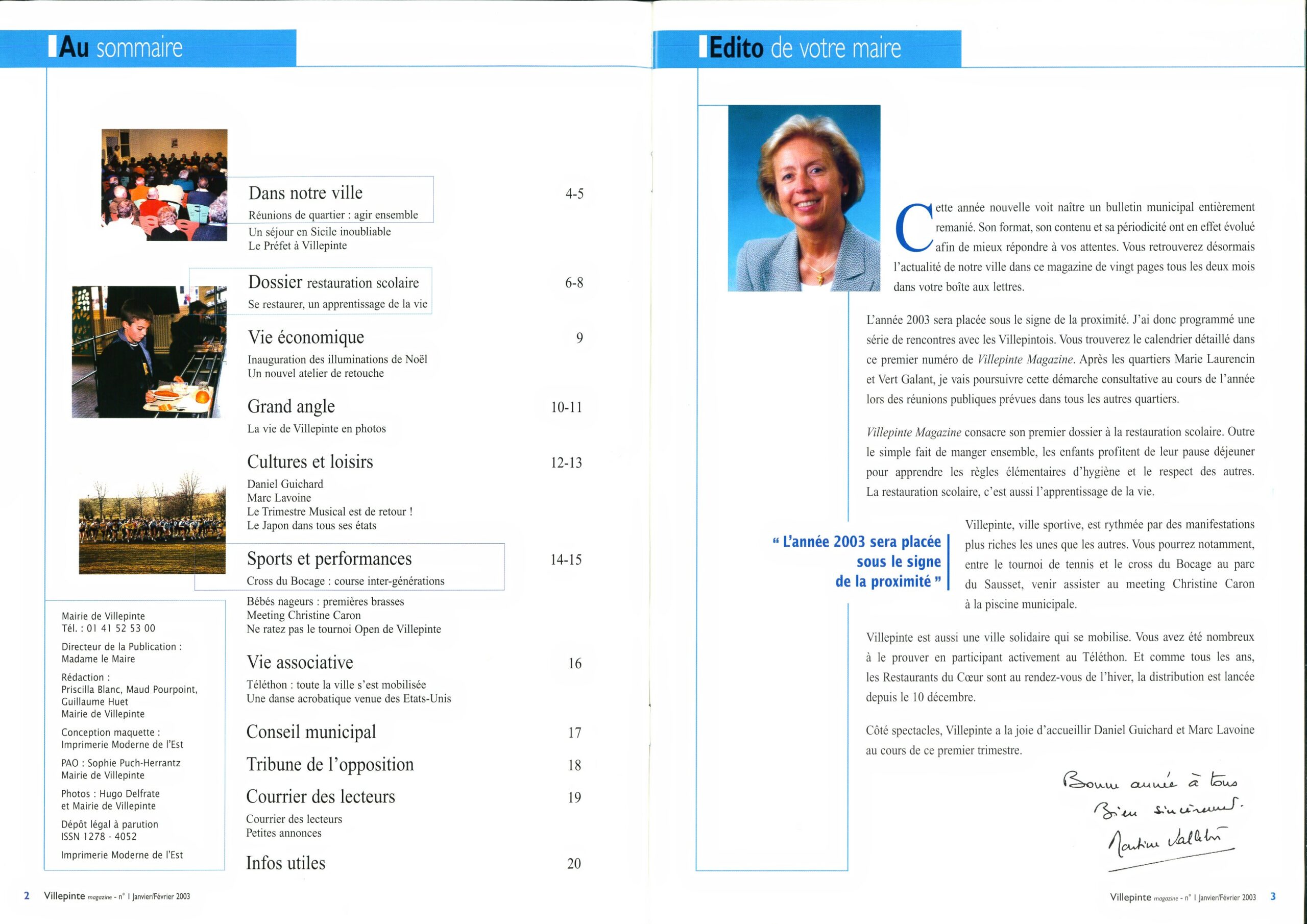 Journal d'Information Municipal Villepinte Magazine N°1 - Janvier 2003 Journal d'Information Municipal Villepinte Magazine N°1 - Janvier 2003
