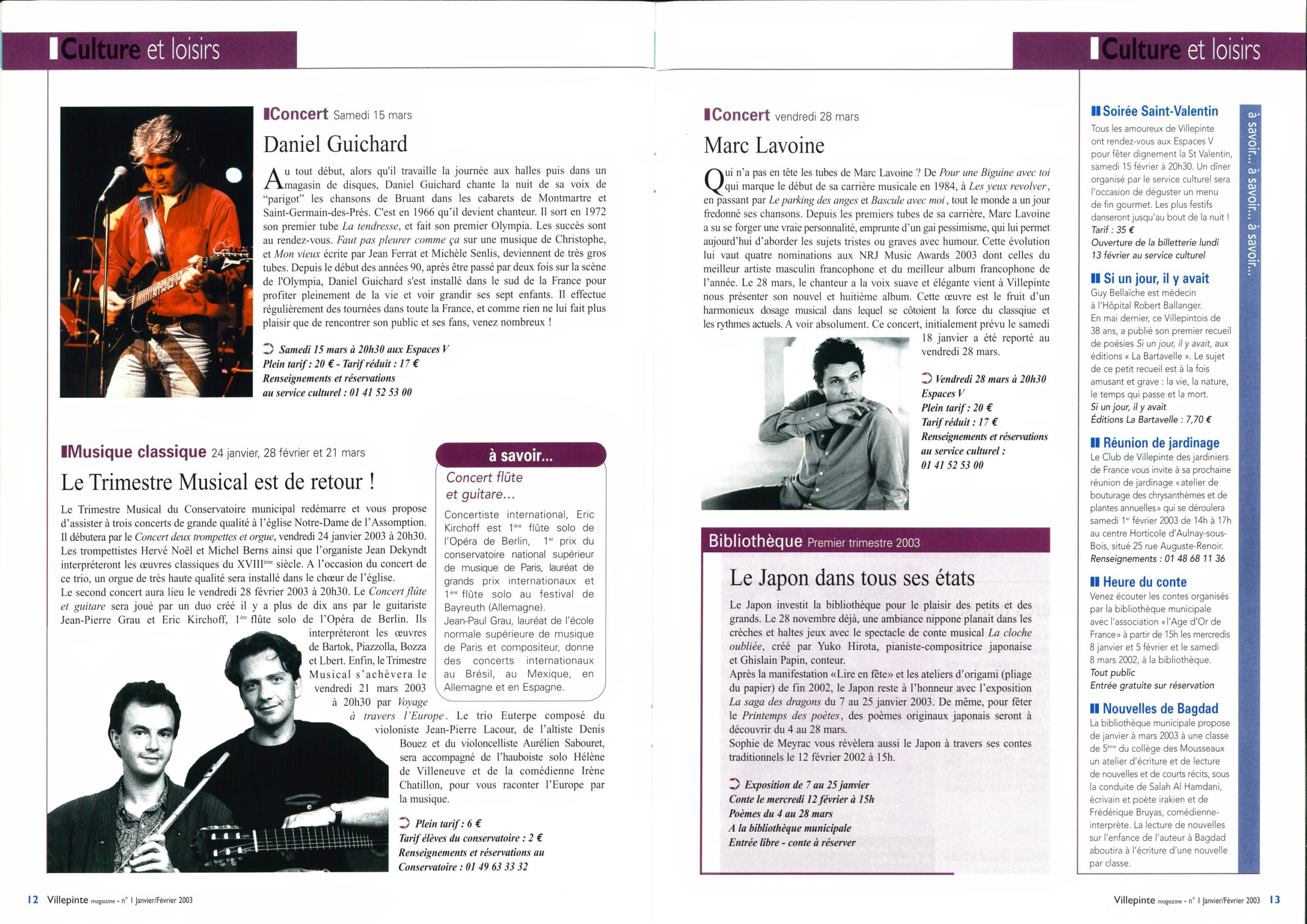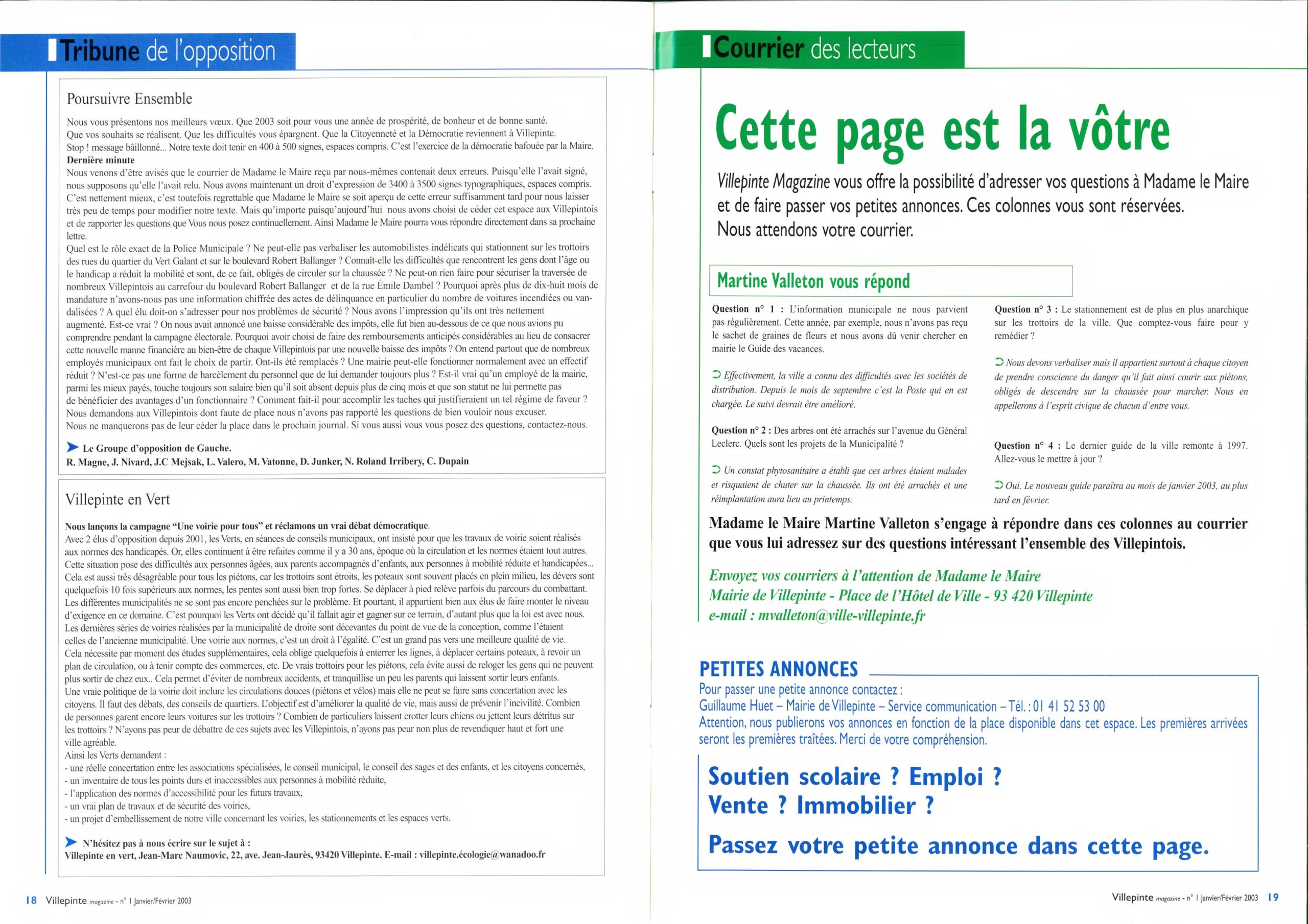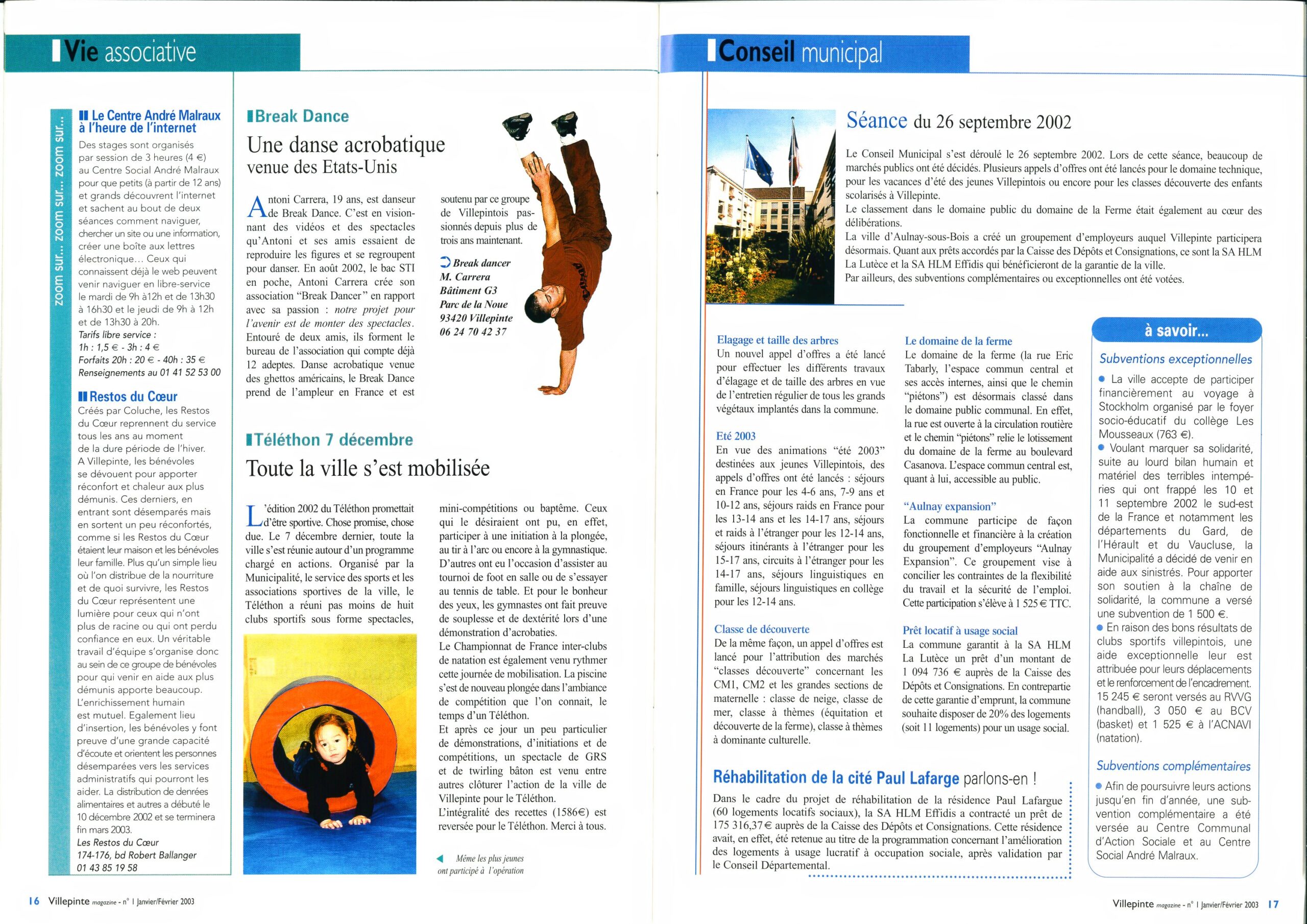 Journal d'Information Municipal Villepinte Magazine N°1 - Janvier 2003 Journal d'Information Municipal Villepinte Magazine N°1 - Janvier 2003