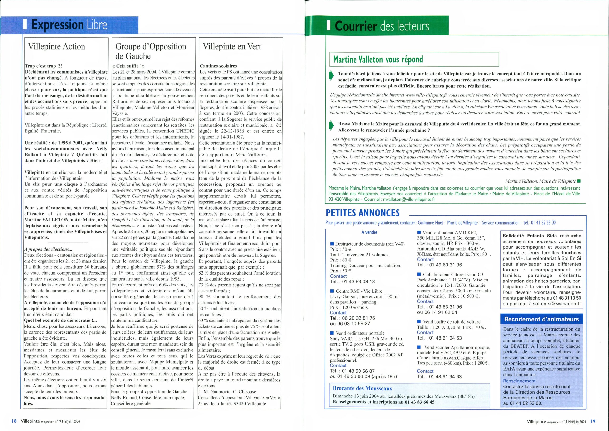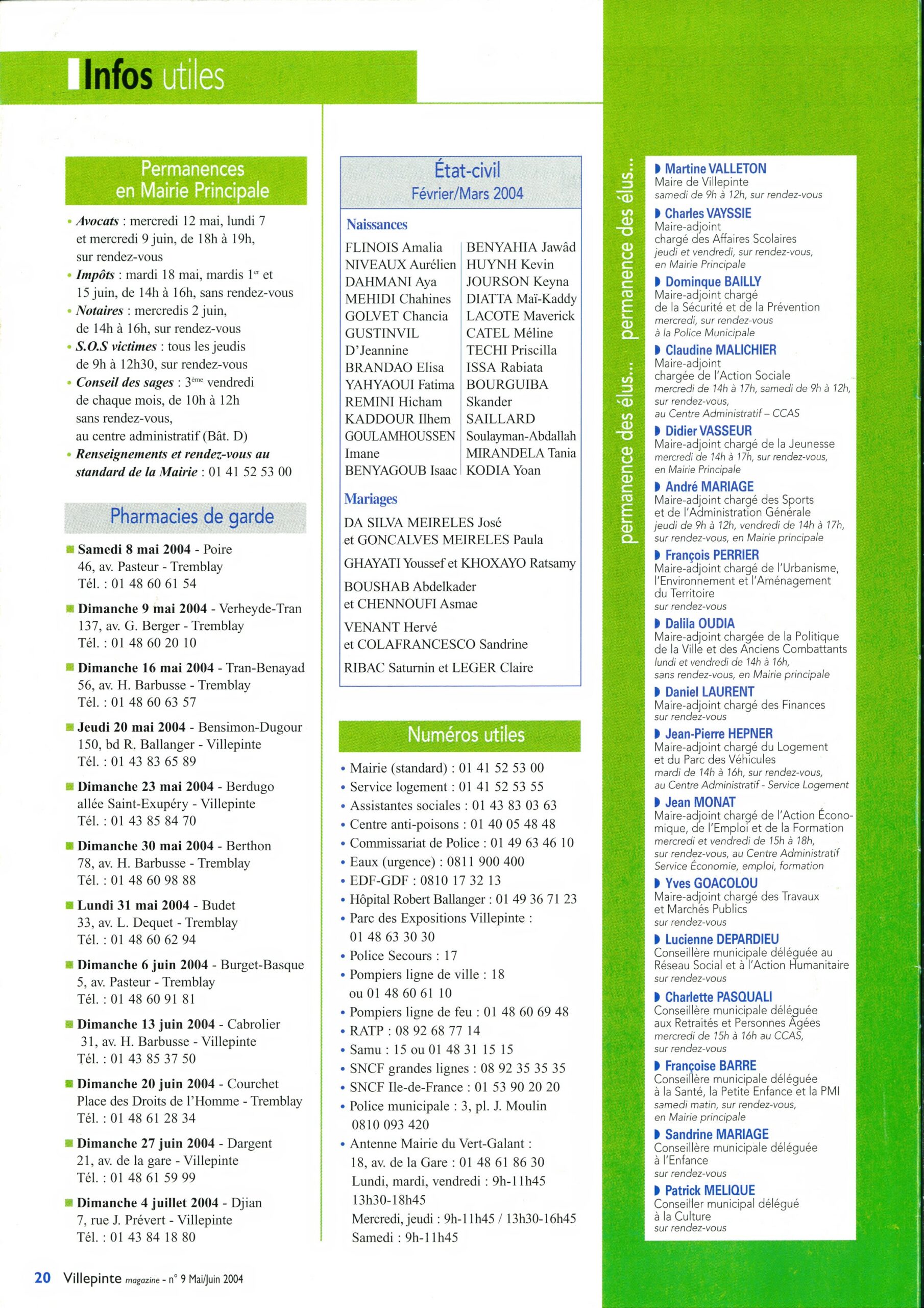 Journal d'Information Municipal Villepinte Magazine N°9 - Mai 2004 Journal d'Information Municipal Villepinte Magazine N°9 - Mai 2004