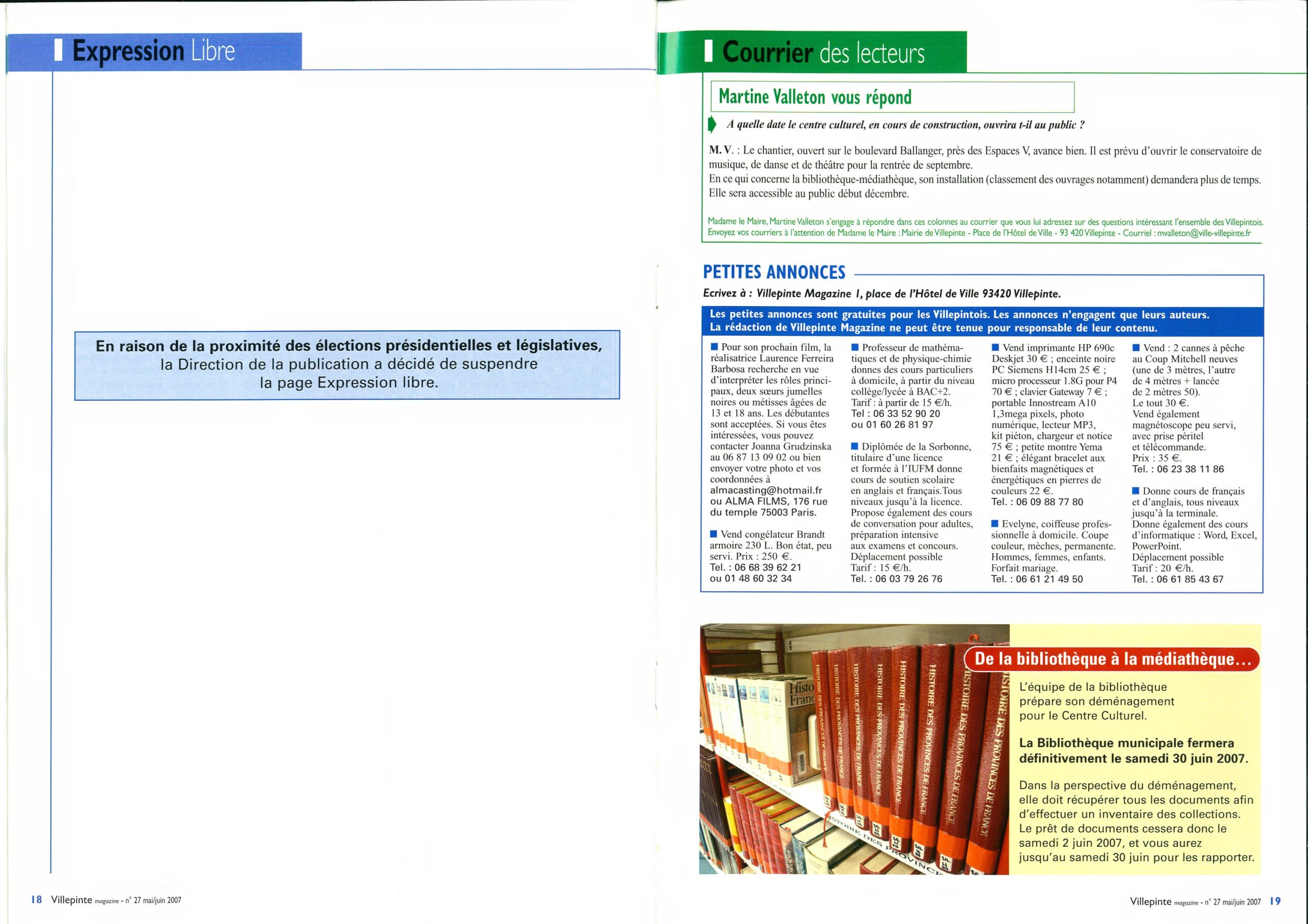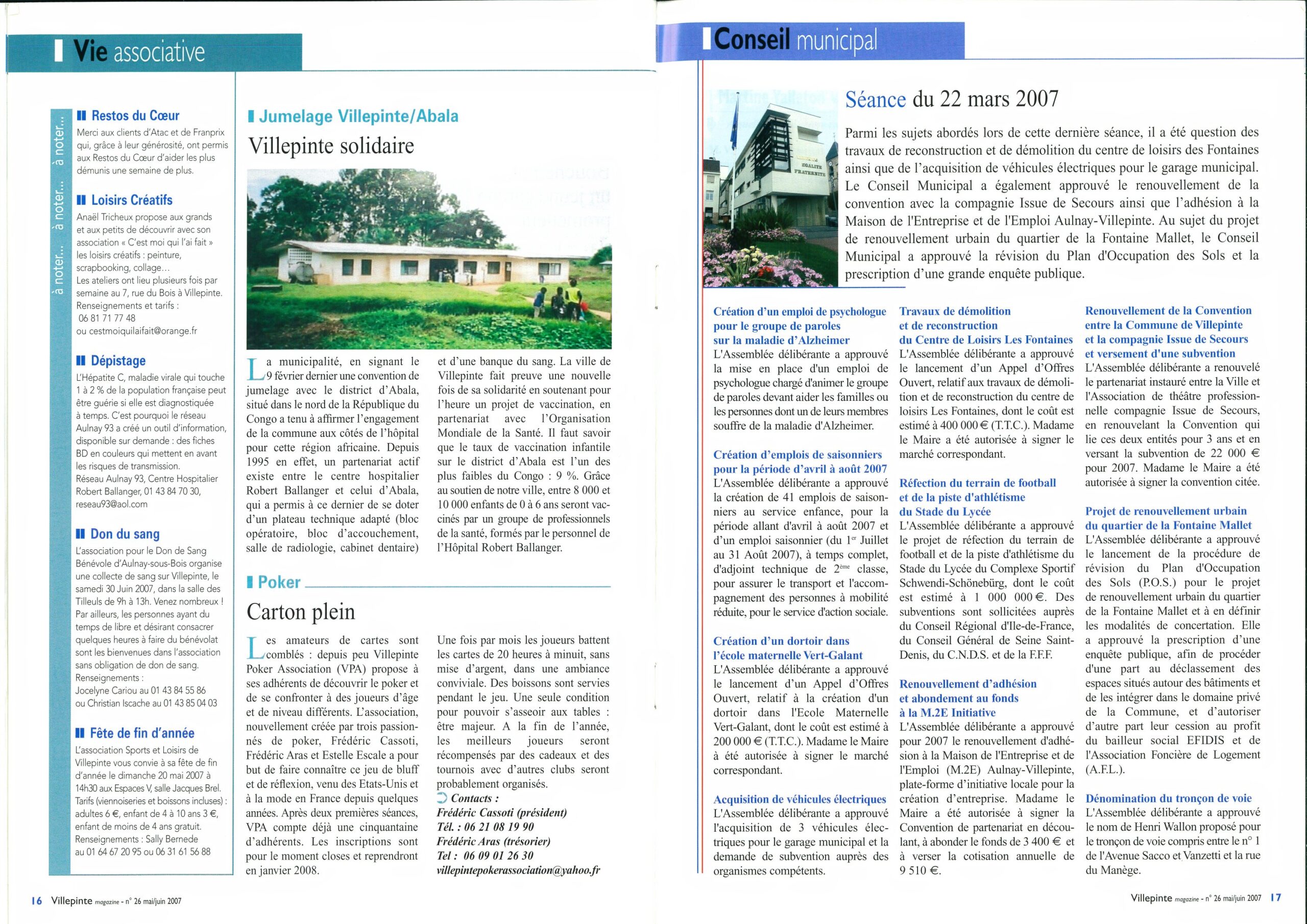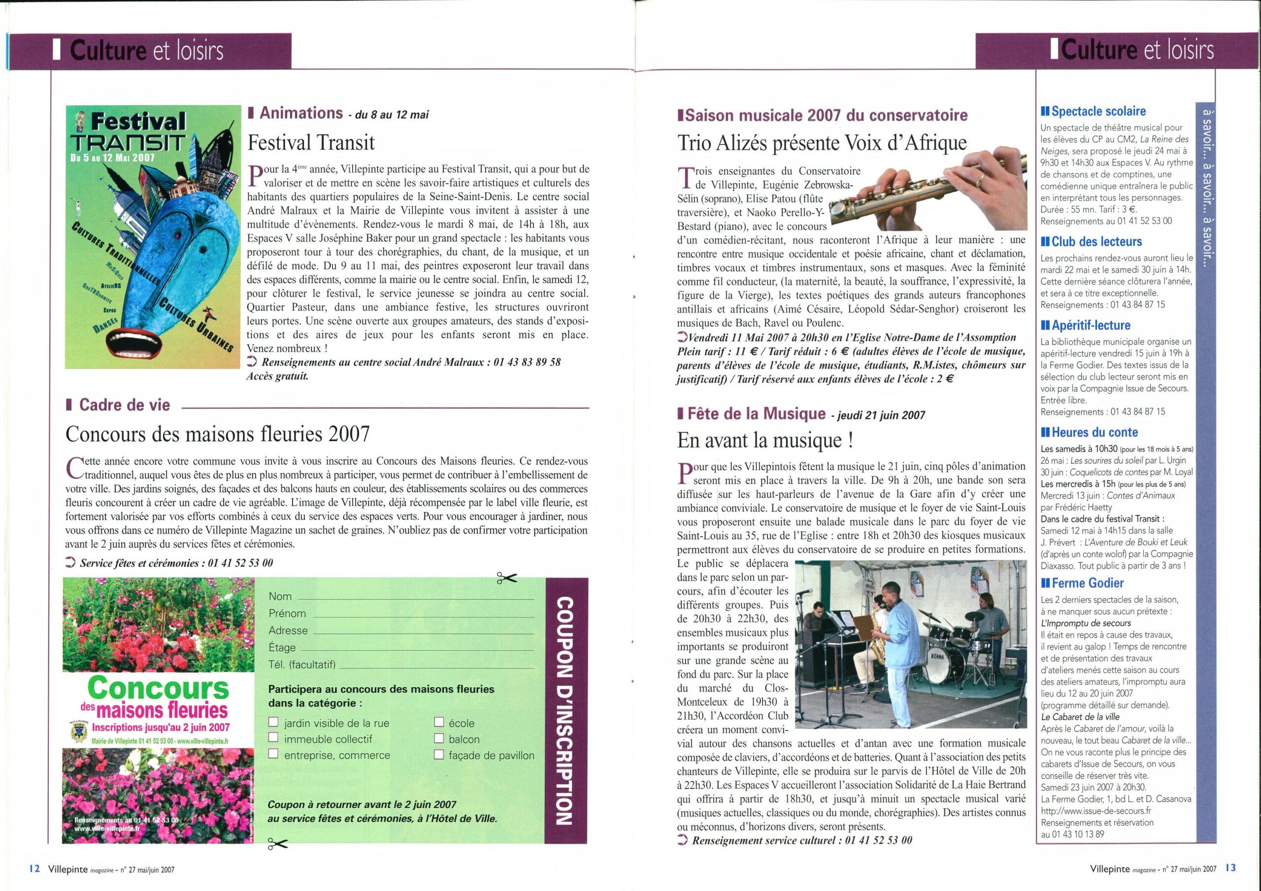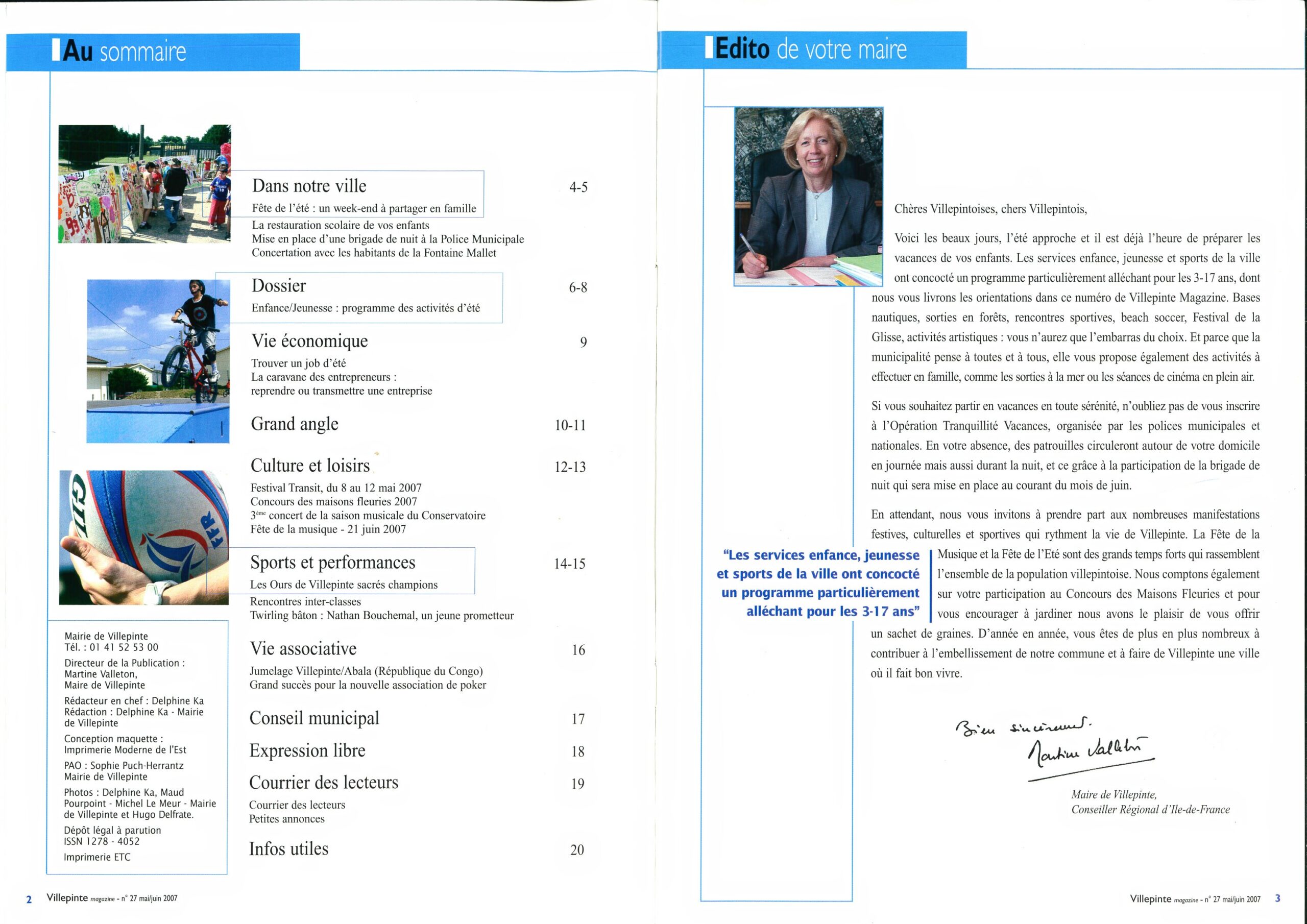 Journal d'Information Municipal Villepinte Magazine N°27 - Mai 2007 Journal d'Information Municipal Villepinte Magazine N°27 - Mai 2007