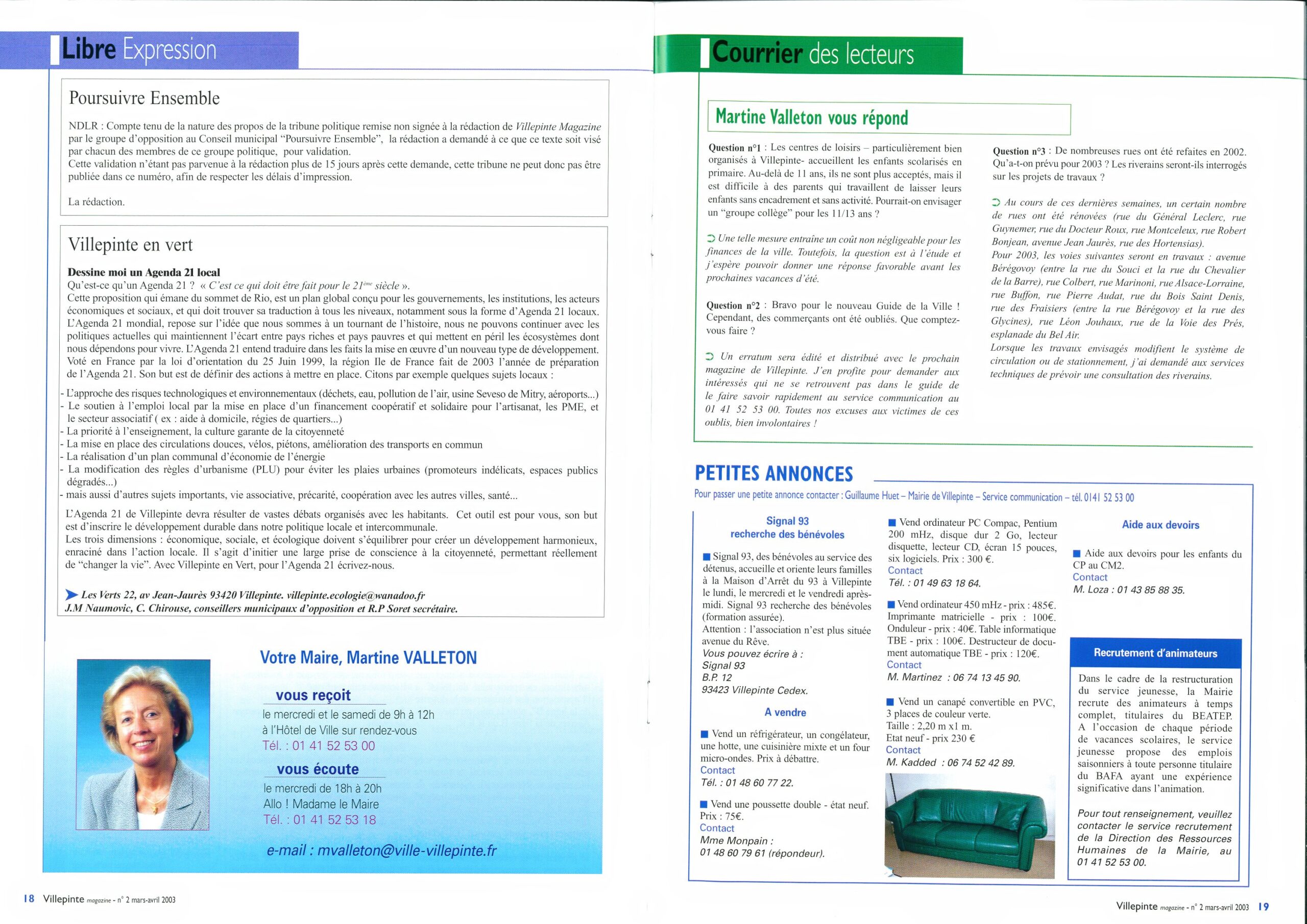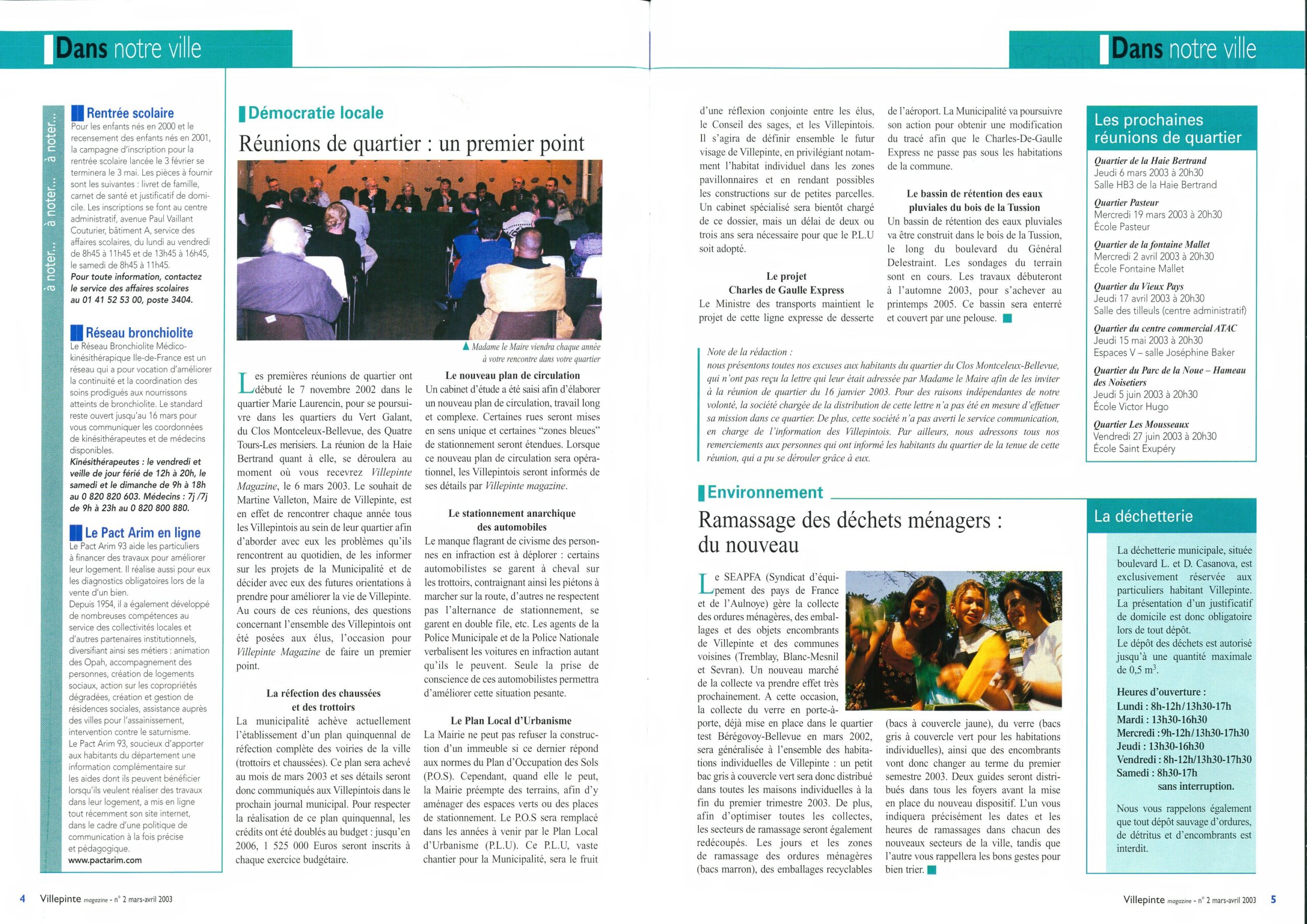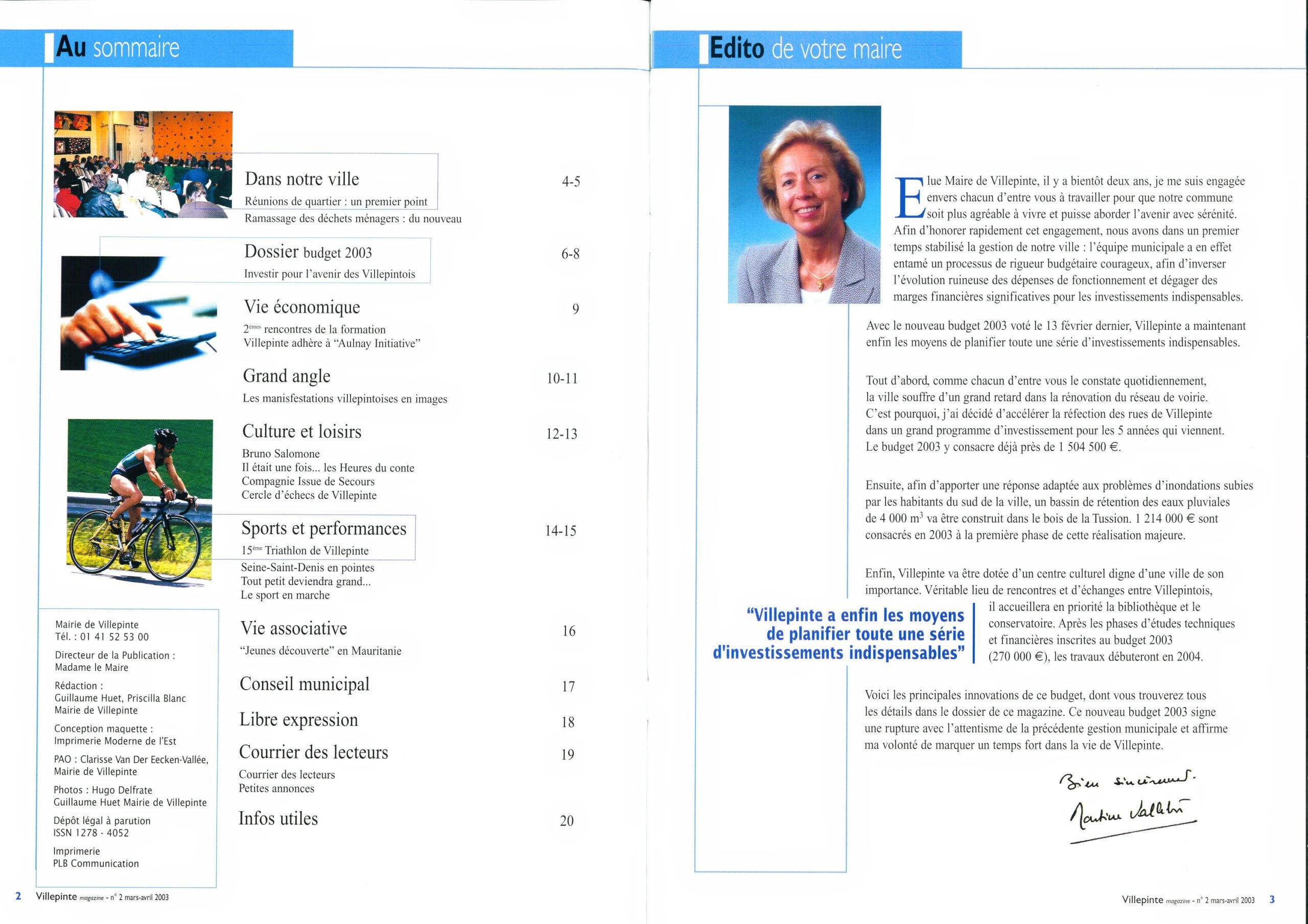 Journal d'Information Municipal Villepinte Magazine N°2 - Mars 2003 Journal d'Information Municipal Villepinte Magazine N°2 - Mars 2003