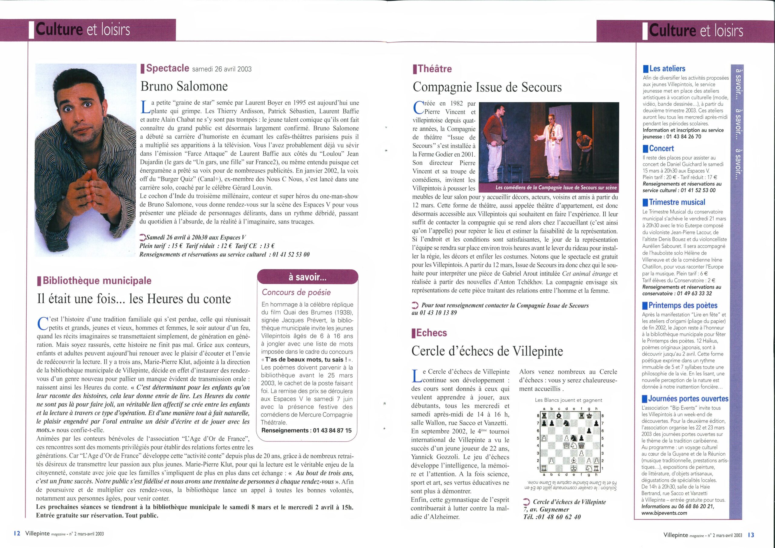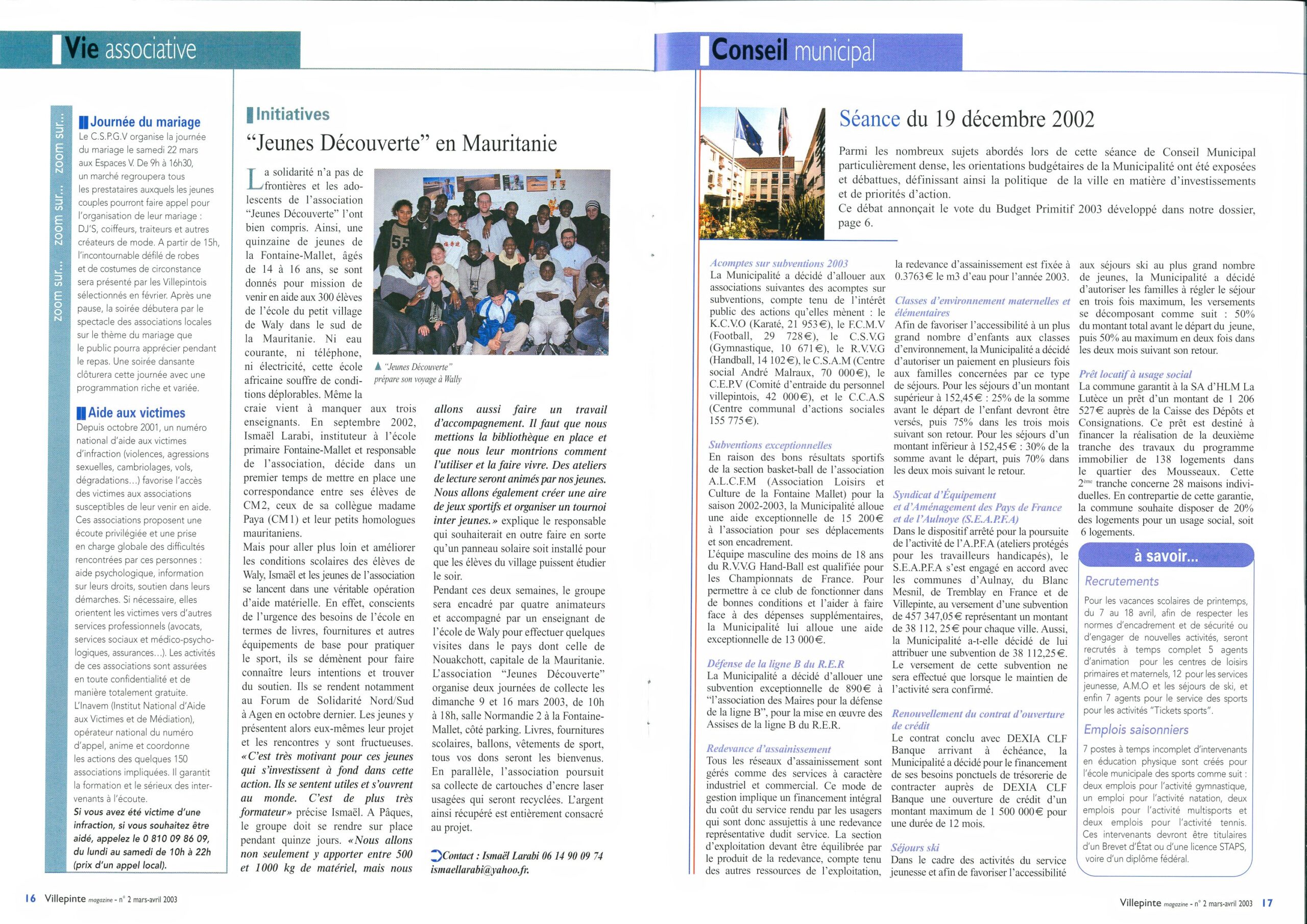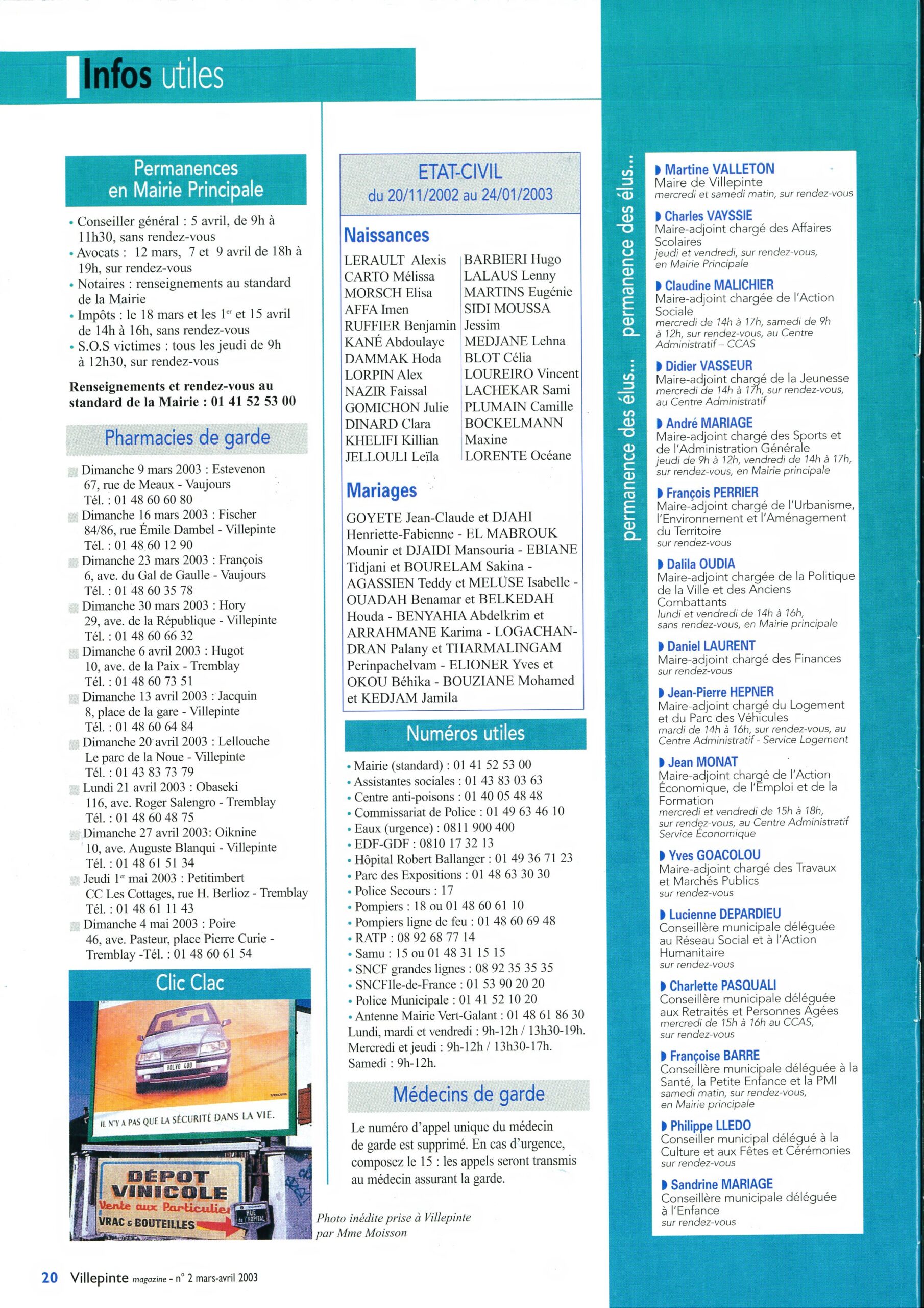 Journal d'Information Municipal Villepinte Magazine N°2 - Mars 2003 Journal d'Information Municipal Villepinte Magazine N°2 - Mars 2003