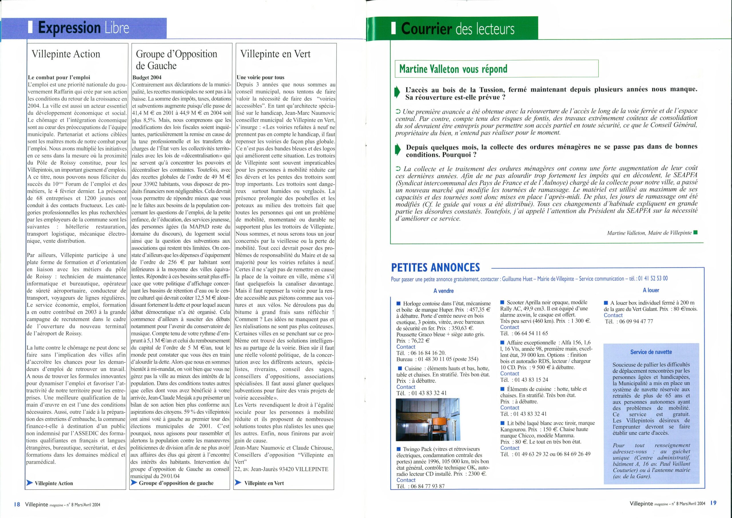 Journal d'Information Municipal Villepinte Magazine N°8 - Mars 2004 Journal d'Information Municipal Villepinte Magazine N°8 - Mars 2004