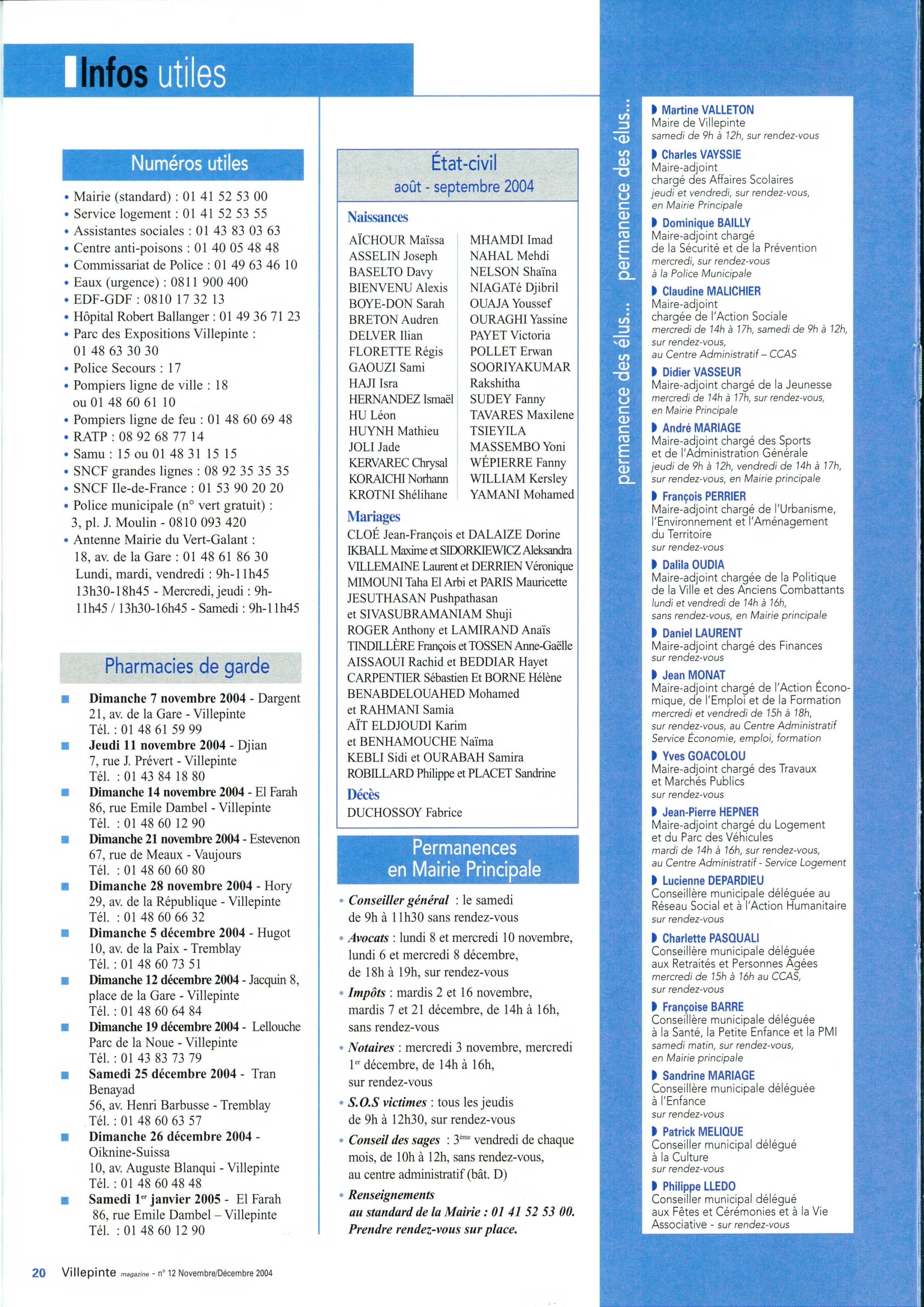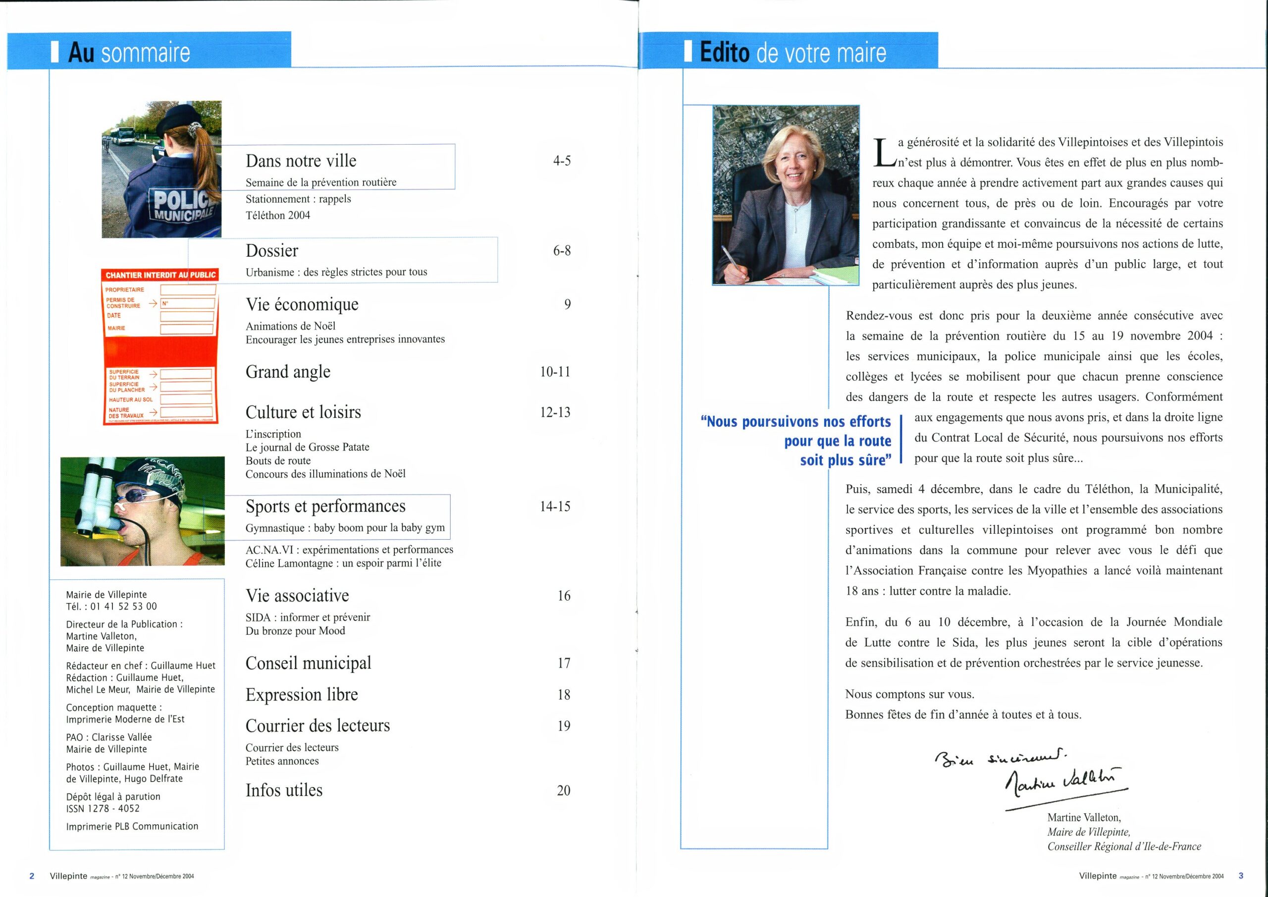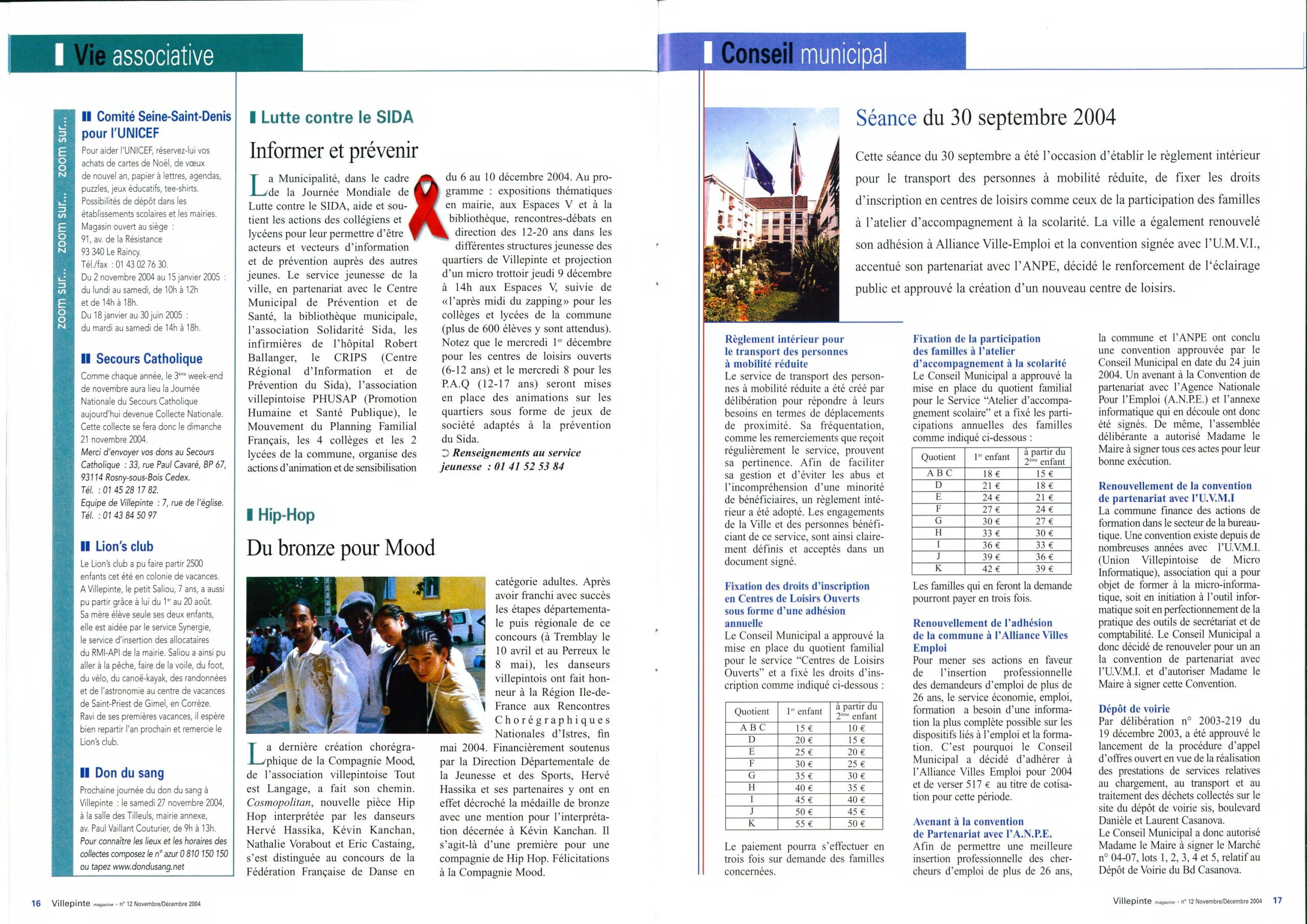 Journal d'Information Municipal Villepinte Magazine N°12 - Novembre 2004 Journal d'Information Municipal Villepinte Magazine N°12 - Novembre 2004
