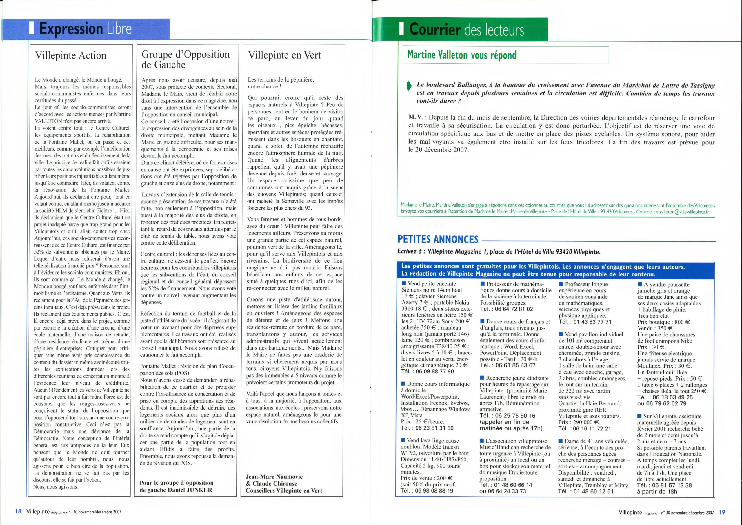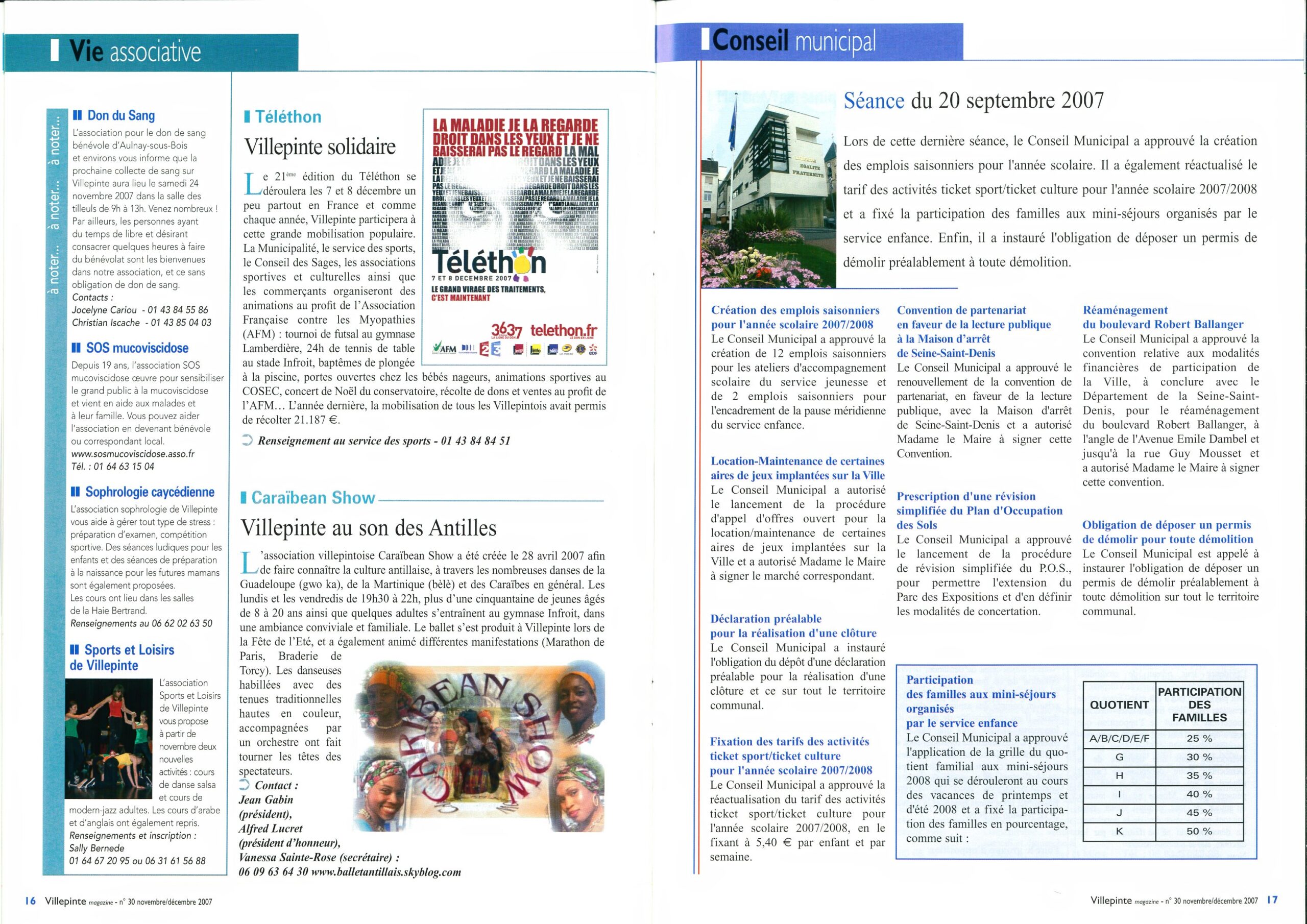 Journal d'Information Municipal Villepinte Magazine N°30 - Novembre 2007 Journal d'Information Municipal Villepinte Magazine N°30 - Novembre 2007