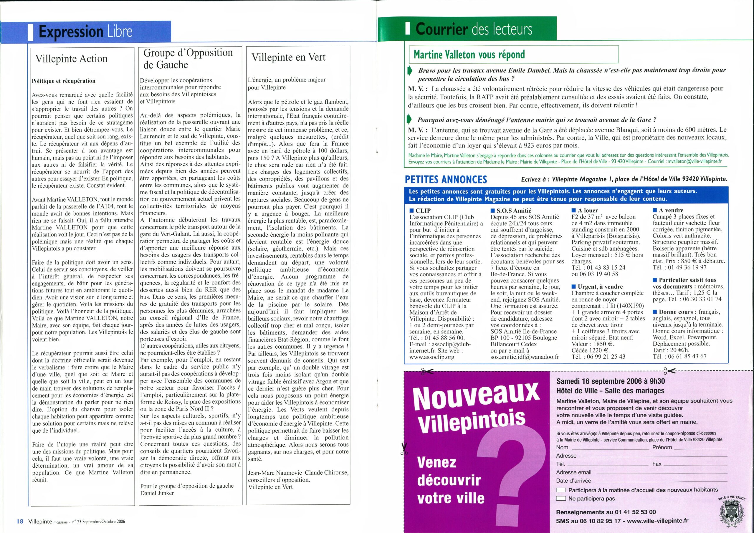 Journal d'Information Municipal Villepinte Magazine N°23 - Septembre 2006 Journal d'Information Municipal Villepinte Magazine N°23 - Septembre 2006