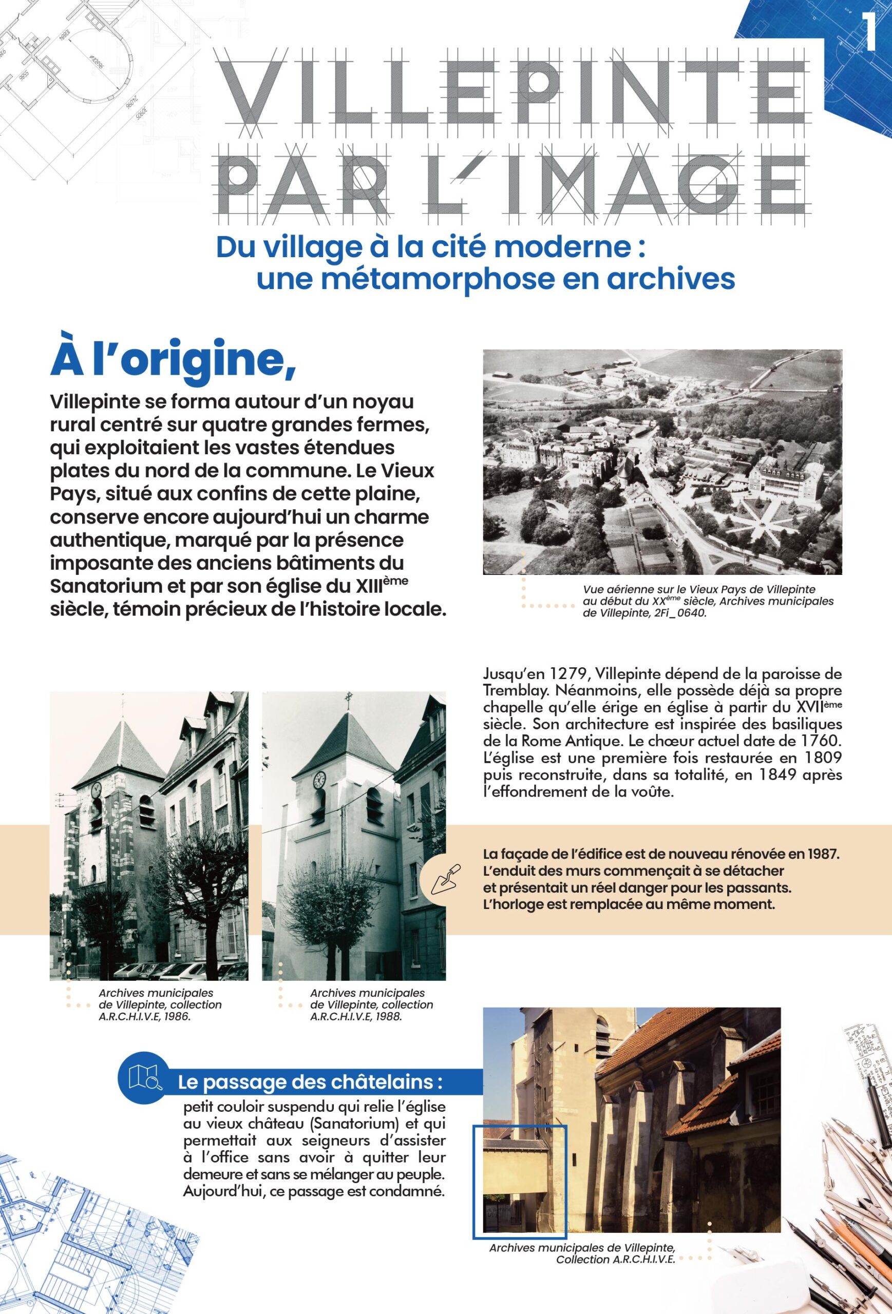 Du Vieux Pays au Vert-Galant, le patrimoine architectural de Villepinte témoigne de ses origines rurales et de son évolution. l'église Notre-Dame, le Sanatorium ou encore la gare du Vert-Galant illustrent la diversité des formes, des styles et des fonctions qui ont marqués l'histoire bâtie de Villepinte.