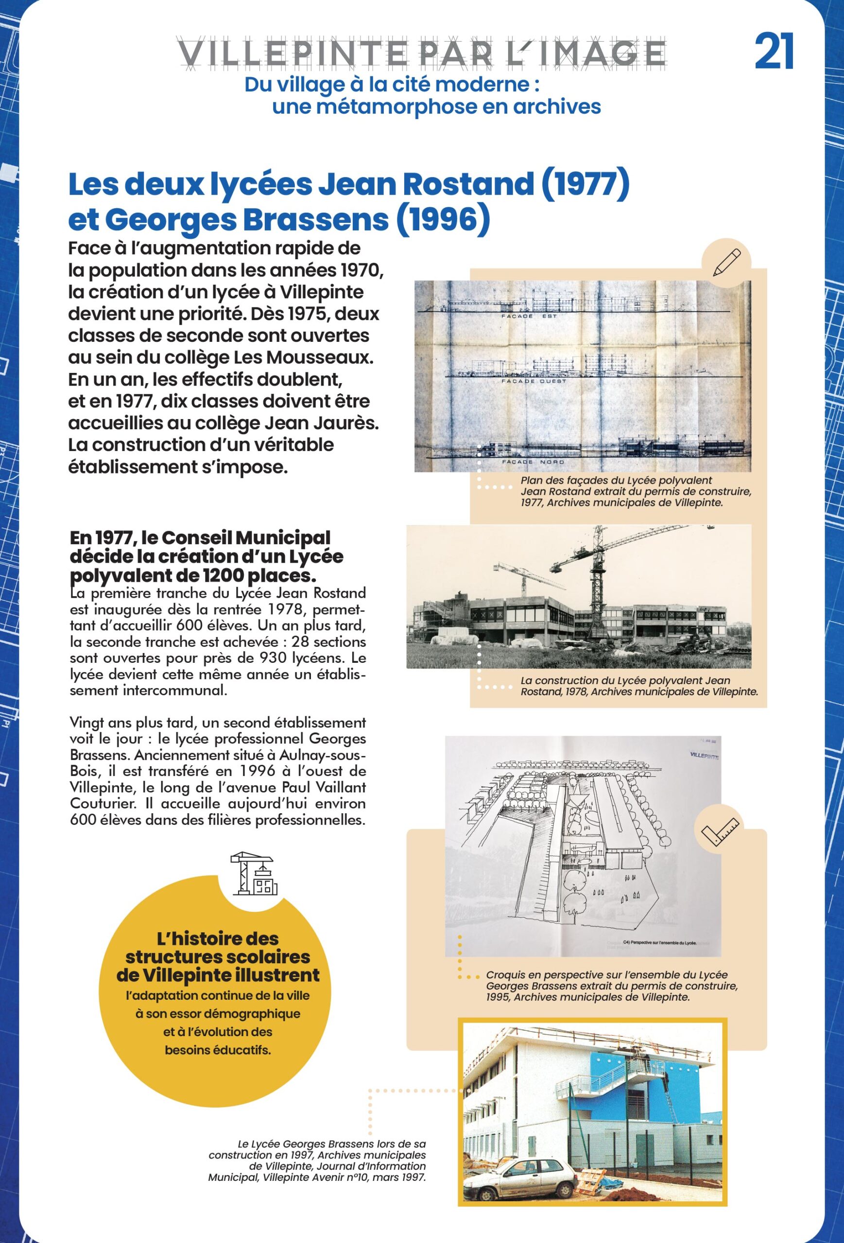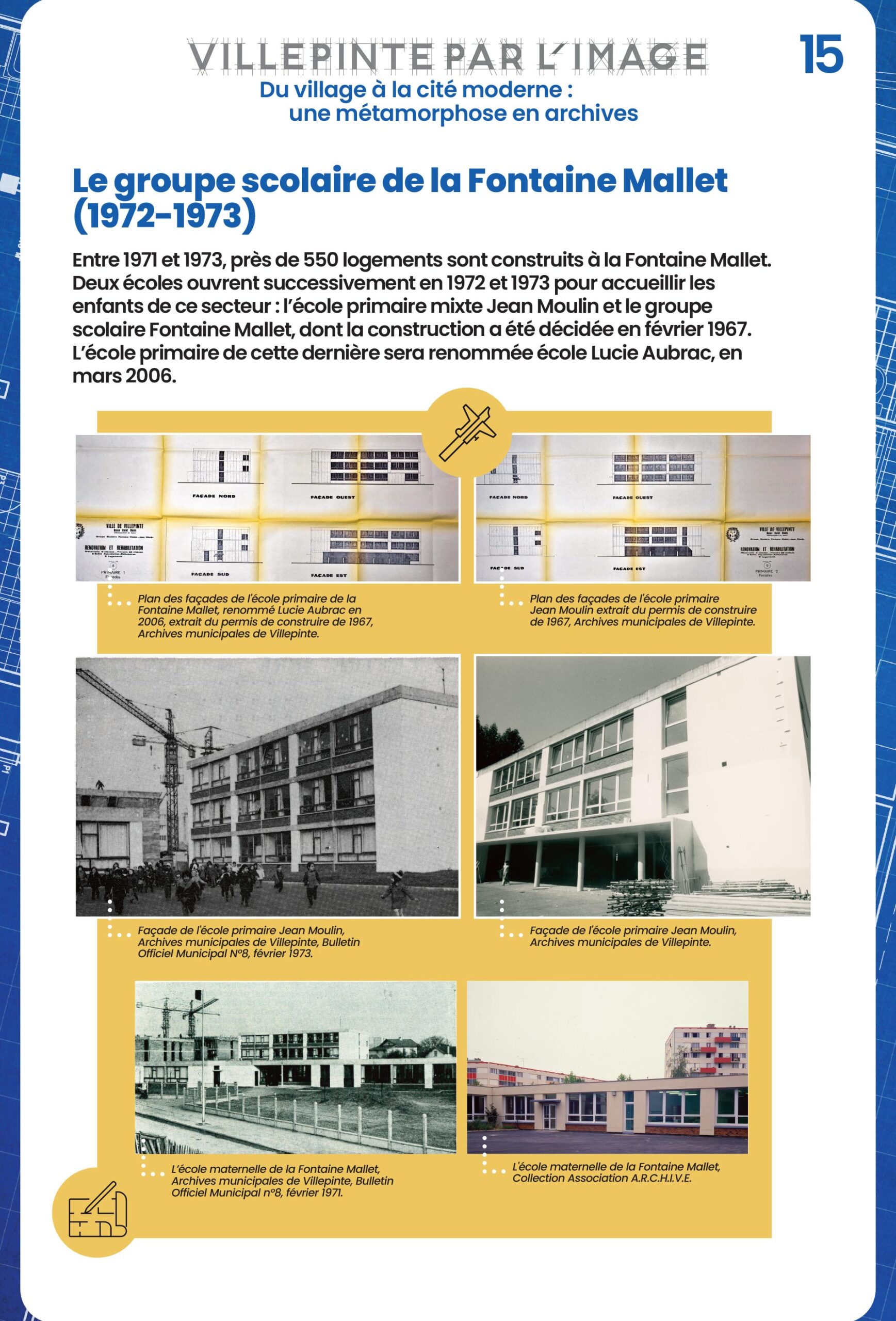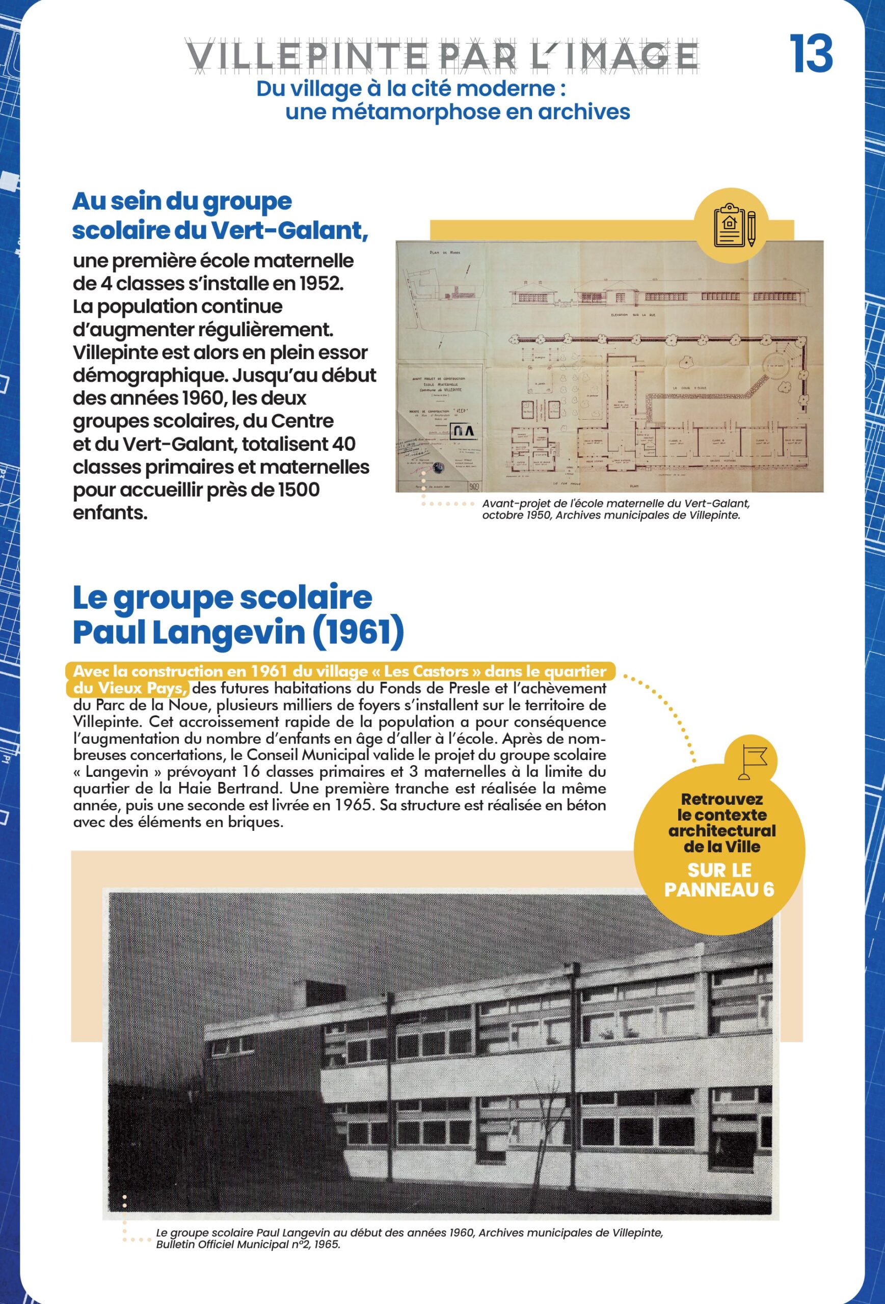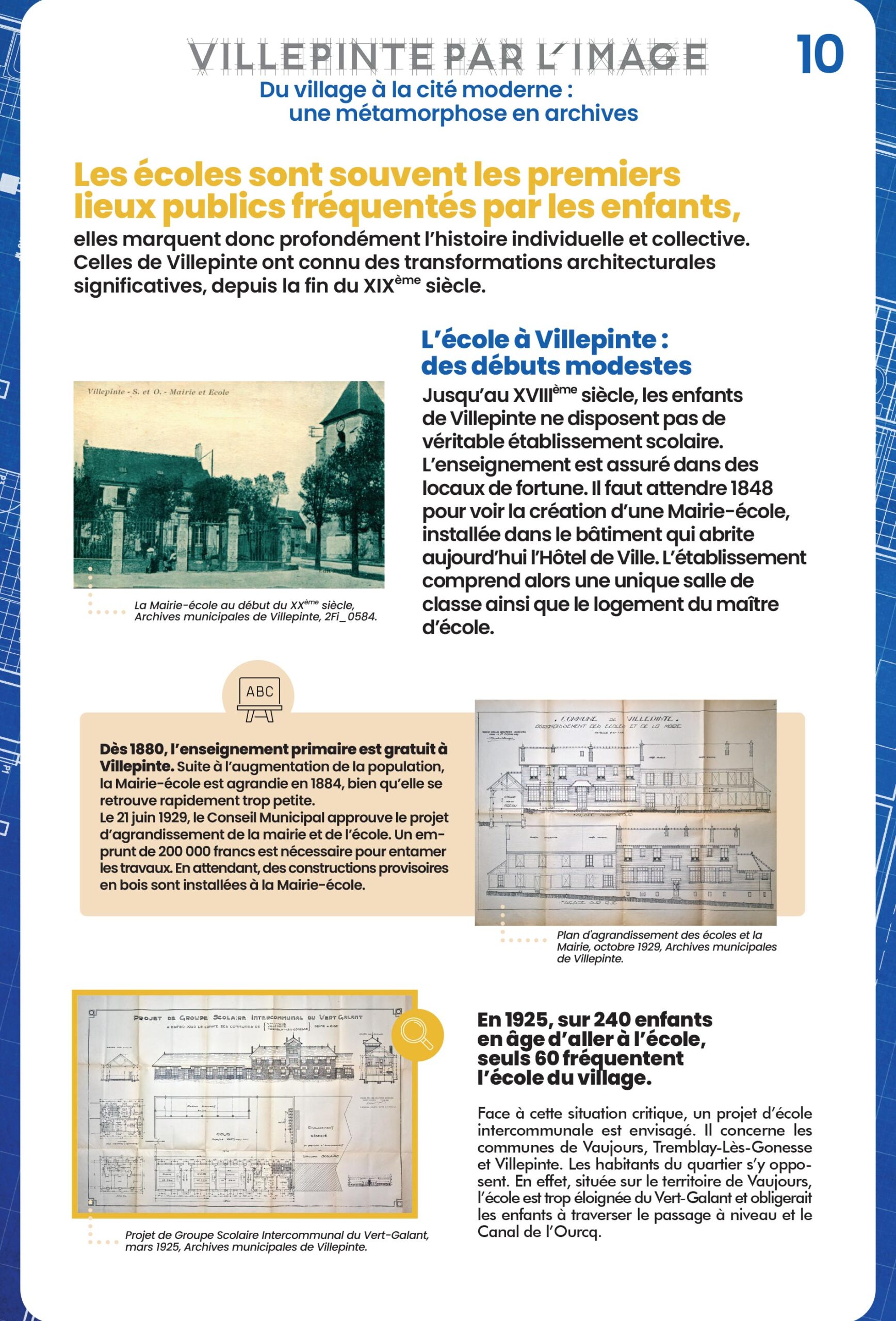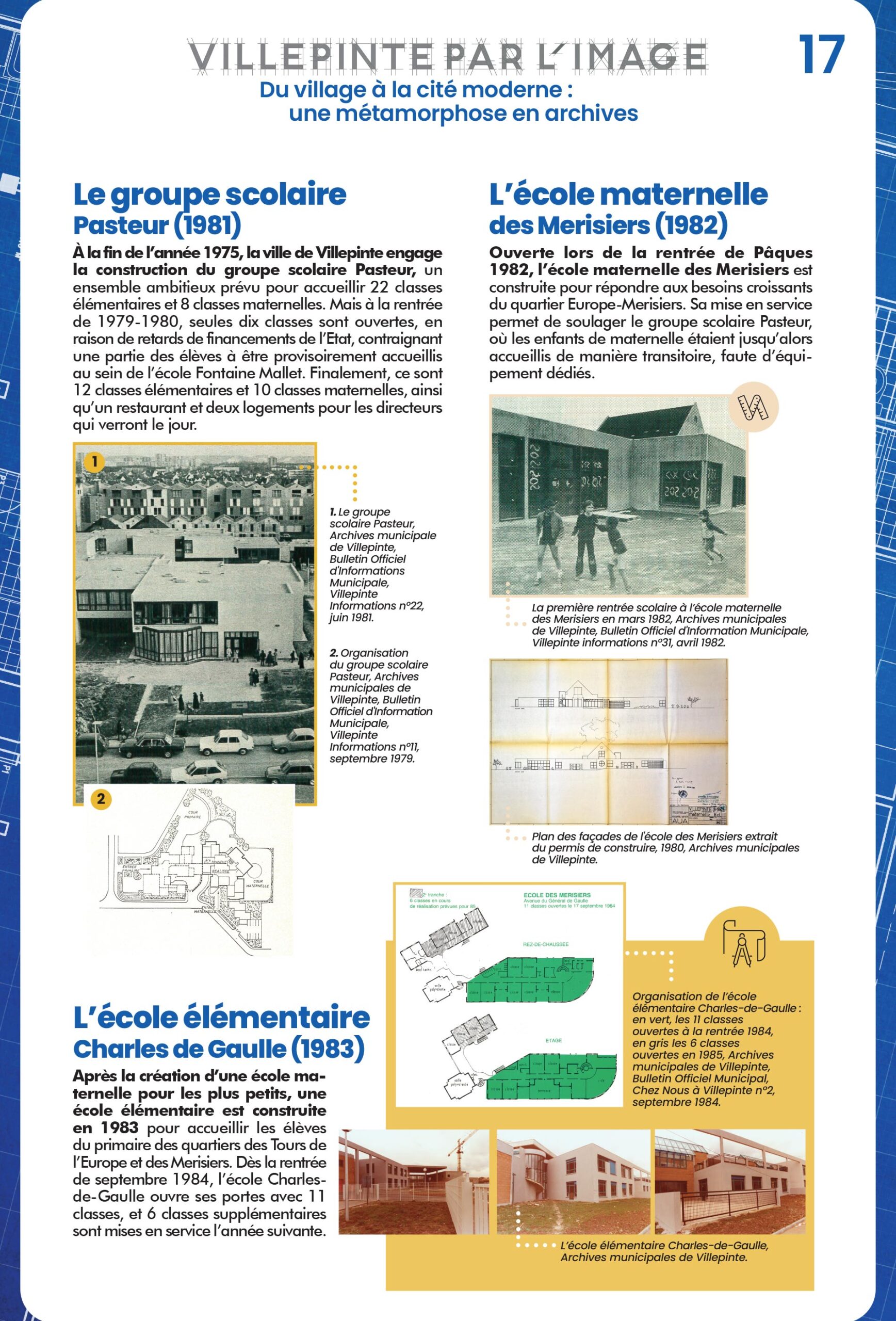 À Villepinte, l'école accompagne chaque étape de la transformation urbaine. De la Mairie-école du Vieux Pays aux groupes scolaires modernes comme Simone-Veil, chaque établissement scolaire marque une étape dans le développement urbain, démographique et éducatif de la Ville.