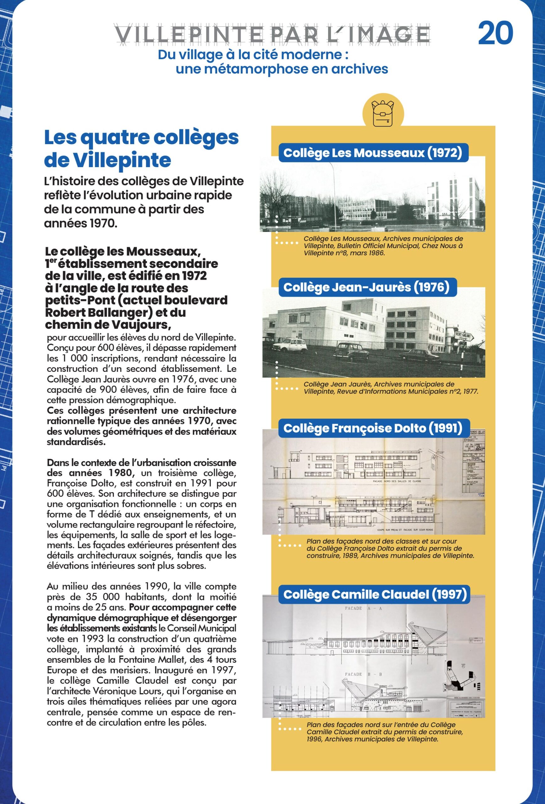 Les grands ensembles des années 1960-1980 incarnent une période clé de l'histoire urbaine villepintoise, et plus largement Française, marquée par une volonté de répondre à la crise du logement d'après-guerre par un urbanisme fonctionnel. Parc de la Noue, Fontaine-Mallet, Tours de l'Europe, Merisiers, Trilogies, Pasteur... Chacun incarne un style architectural et une manière d'habiter collectivement. Cette thématique vous invite à redécouvrir leur histoire.